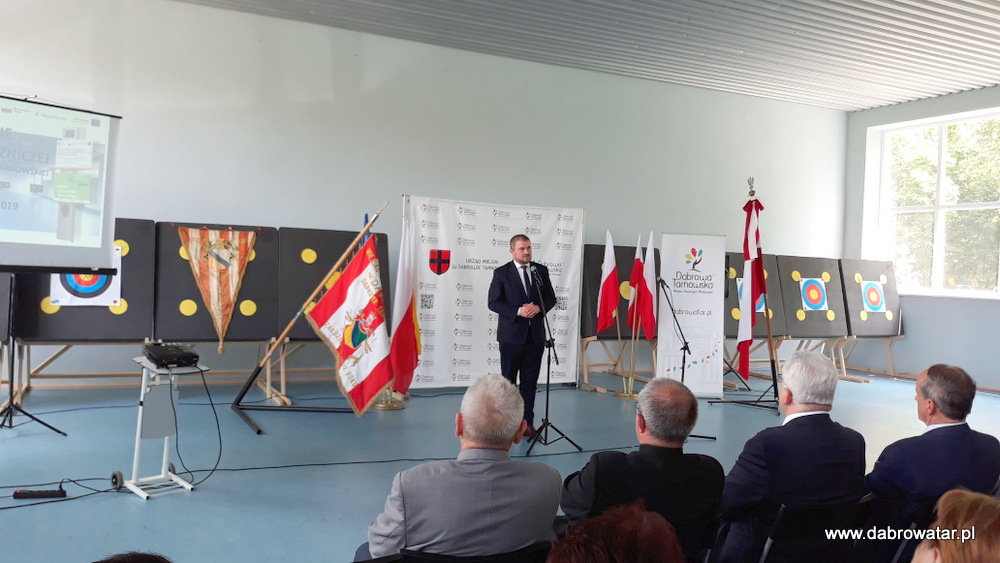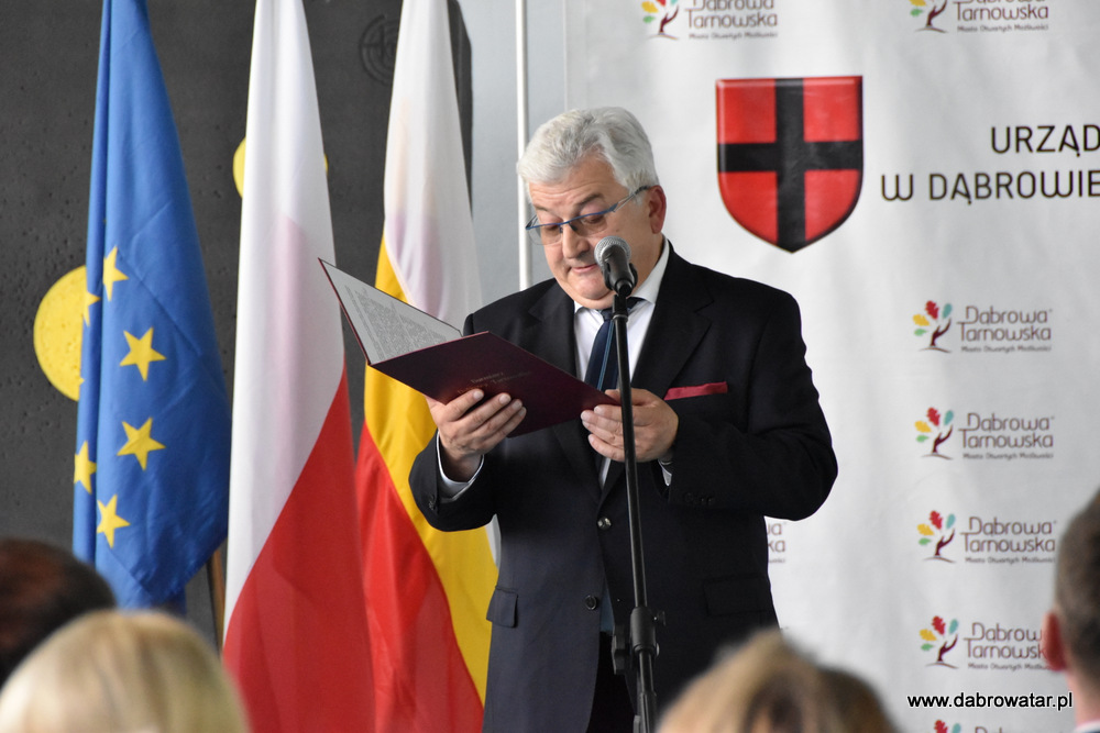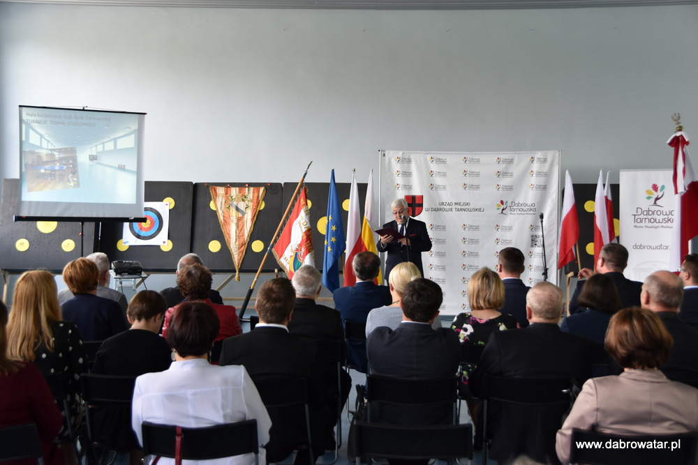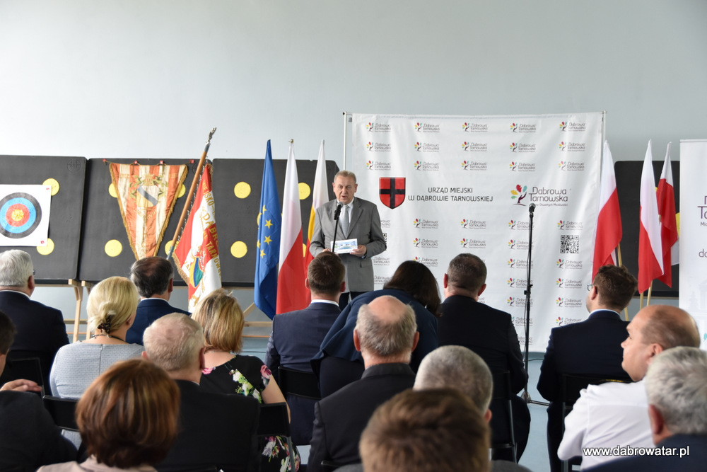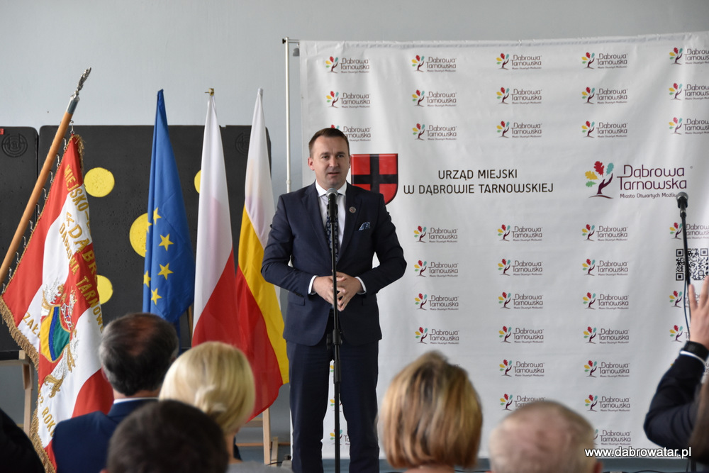 W swoim przemówieniu Burmistrz Dąbrowy Tarnowskiej Krzysztof Kaczmarski przedstawił zebranym zakres inwestycji i omówił charakter przebudowy obiektu oraz korzyści ekologiczne wynikające z jego termomodernizacji. Podziękował wszystkim zaangażowanym w tą realizację: