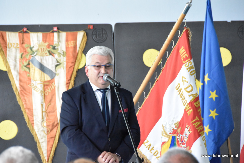 Burmistrz podziękował również Radnemu Rady Powiatu Dąbrowskiego Stanisławowi Początkowi, wieloletniemu burmistrzowi Dąbrowy Tarnowskiej, za rozbudowę infrastruktury sportowej w mieście i gminie. Poinformował, że gmina usiłuje uzyskać dofinansowanie do rozbudowy basenu odkrytego, zwiększenia jego atrakcyjności dla różnych grup wiekowych szukających relaksu. Wspomniał także o konieczności modernizacji płyty boiska i bieżni, jako inwestycji koniecznych do bezpiecznego uprawiania sportu.