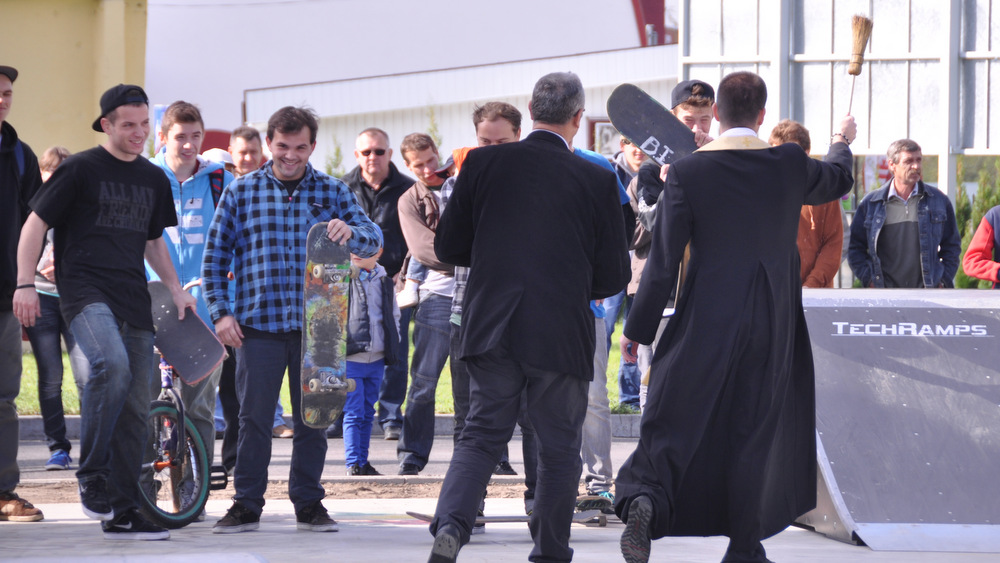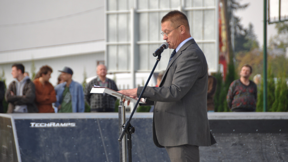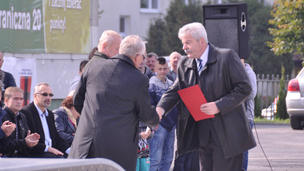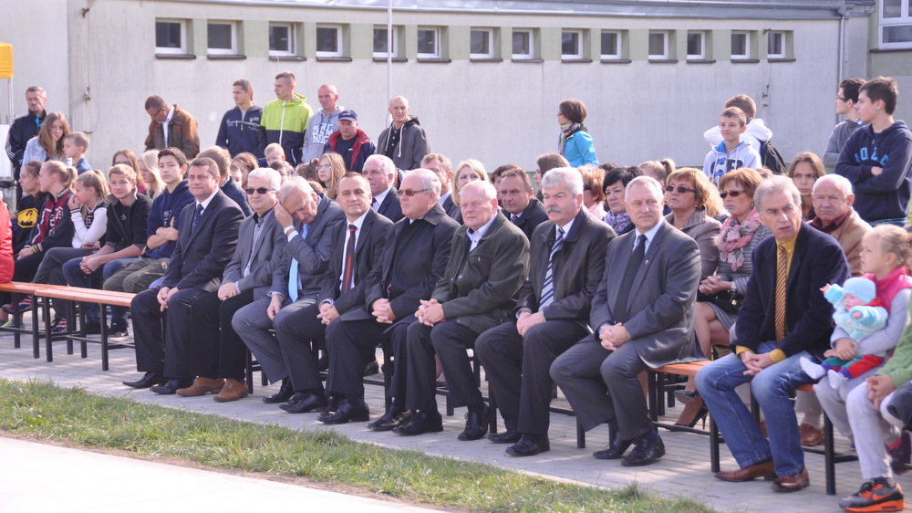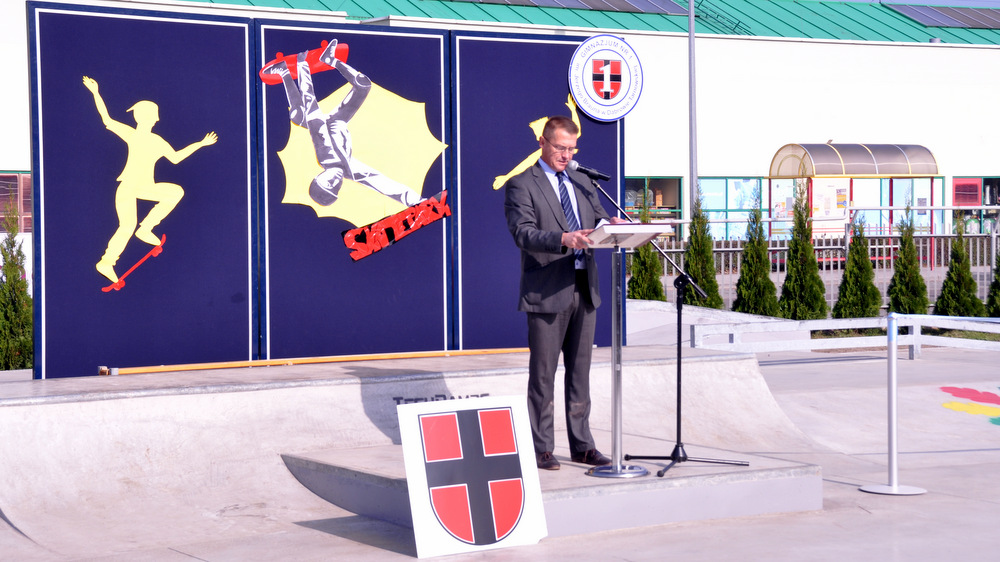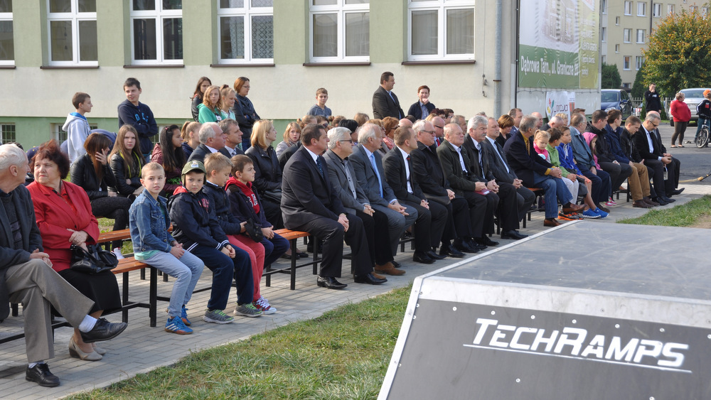 Zabierając głos Burmistrz Dąbrowy Tarnowskiej Stanisław Początek powiedział m.in.: Chciałbym tutaj wspomnieć o spotkaniu z młodzieżą w jakim uczestniczyłem w Zespole Szkół Ponadgimnazjalnych Nr 2 w Dąbrowie Tarnowskiej w pierwszych dniach kwietnia bieżącego roku. Była to debata uczniów i pracowników samorządowych, podczas której padły pytania o atrakcyjność Dąbrowy Tarnowskiej i gminy dla młodzieży. Wtedy to zapewniłem młodzież, że jeszcze przed końcem bieżącego roku będzie mogła korzystać z nowoczesnego, spełniającego najwyższe standardy jakościowe skateparku. Jest mi ogromnie miło, że zobowiązanie jakie podjąłem wobec młodzieży zostało wypełnione w założonym czasie. Mam nadzieję, że niedawno rozpoczęta jesień dostarczy nam wielu pogodnych dni, tak aby możliwe było korzystanie z tego nowego obiektu i dostarczało użytkownikom i oglądającym wiele frajdy. Otwieramy dzisiaj pierwszy w powiecie skatepark. Jest to zarazem jeden z niewielu obiektów tego typu w całym subregionie tarnowskim. Można wyliczać całą listę korzyści związanych z posiadaniem skateparku na terenie naszego miasta i blisko osiedla, gdzie nie brakuje młodych ludzi. Jest wśród nich stworzenie miejsca spotkań młodzieży, która aktywnie spędzi czas doskonaląc sprawność i kondycję fizyczną. Jest także promocja ruchu na świeżym powietrzu, którego nigdy za wiele. Najważniejszą jednak korzyścią jest nadanie bezpiecznych ram dyscyplinom sportu, określanych jako ekstremalne, które młodzież lubi uprawiać spontanicznie, często robiąc to w miejscach do tego nieprzystosowanych. Przenosząc swoje deskorolki i BMX-y do skateparku młodzież zmniejsza ryzyko groźnych uszkodzeń ciała. Badania statystyczne prowadzone kilka lat temu w Filadelfii wskazują, że bezpieczeństwo osób użytkujących skateparki o pewnym standardzie jakości, i prawidłowo zachowujących regulamin korzystania z takich obiektów jest porównywalne z bezpieczeństwem uprawiania koszykówki czy piłki nożnej.  Dzisiejszy dzień to dobry moment by poczuć wspólną satysfakcję, że w ostatnich latach nasza gmina przeszła bardzo imponującą przemianę, jeśli chodzi o tworzenie świetnych warunków dla profesjonalnego czy amatorskiego uprawiania sportu. Szczególne znaczenie ma tutaj zapewnienie szerokiej oferty sportowo-rekreacyjnej dla młodego pokolenia zgodnie z maksymą „W zdrowym ciele zdrowym duch”. Osiem lat temu oddana została do użytku Kryta Pływalnia w Dąbrowie Tarnowskiej. Był to idealny moment na jej powstanie – dzisiaj takie przedsięwzięcie byłoby o wiele bardziej kosztowne i trudniejsze do zrealizowania. Za nią poszły kolejne inwestycje: orliki, boiska wielofunkcyjne przy szkołach na terenie gminy zarówno w Dabrowie Tarnowskiej jak i w sołectwach takich jak Nieczajna Górna, Lipiny i Gruszów Wielki. Opracowano także projekty modernizacji boisk w kolejnych sołectwach. Projekt w Smęgorzowie został pozytywnie oceniony i oczekuje na dofinansowanie na liście rezerwowej. Z kolei boisko w Laskówce Chorąskiej jest na etapie oceny wniosku o dofinansowanie. Przy korzystnym przeliczeniu kursu Euro w Urzędzie Marszałkowskim w Krakowie boisko w Smęgorzowie będzie zmodernizowane do końca tego roku, a boisko w Laskówce Chorąskiej do końca marca 2015 r. Ważnym punktem na sportowej mapie gminy jest pełnowymiarowa Hala Sportowa im. Agaty Mróz-Olszewskiej – jedyna taka w całym powiecie. Jej rola w czasie ferii zimowych, w organizacji zajęć dla dzieci i młodzieży jest nieoceniona. Niemniej ważna jest rola widowiskowa hali – tutaj odbywały się międzynarodowe turnieje jak na przykład kwietniowy turniej piłki ręcznej juniorów, w którym wystąpiły reprezentacje narodowe Polski, Czech, Serbii i Węgier. Możliwość oglądania wielkiego sportu w Dąbrowie Tarnowskiej to nie tylko atrakcja dla fanów, ale być może inspiracja dla młodego pokolenia. Inwestycje w infrastrukturę sportową są także inwestycjami w zdrowie mieszkańców. Samorząd gminny stara się aby oferta sportowo - rekreacyjna obejmowała każdą grupę wiekową. Stąd siłownie zewnętrzne w Parku Miejskim w Dąbrowie Tarnowskiej przy Hali Sportowej i w Lipinach. Urządzenia siłowe znajdują się także na dąbrowskich placach zabaw – tak, aby możliwe było łączenie opieki nad dziećmi z własną aktywnością ruchową dorosłych. Dzisiejsze otwarcie dowodzi, że samorząd gminny pamięta o osobach w wieku młodzieńczym, na etapie życia między dzieciństwem a dorosłością. W tym miejscu chciałbym wyrazić wdzięczność osobom, które odpowiedzialne są za tworzenie sportowego wizerunku gminy. Podziękowanie kieruję tutaj dla Rady Miejskiej na czele z Panem Przewodniczącym Rady Miejskiej Władysławem Knutelskim za sfinansowanie tego zadanie. Dziękuję mojemu zastępcy Markowi Minorczykowi. Realizacja przedsięwzięcia „Budowa Skate Parku przy Gimnazjum Nr 1 w Dąbrowie Tarnowskiej”, które dzisiaj oficjalnie oddajemy do użytku to w ogromnej mierze wynik pracy Referatu Inwestycji i Zamówień Publicznych z kierownikiem Marcinem Stefańczykiem i załogą: Piotrem Sacha i Szymonem Lichorobcem. Dziękuję także Dyrektorowi Publicznego Gimnazjum Nr 1 w Dabrowie Tarnowskiej Krzysztofowi Krakowskiemu za dobrą współpracę przy realizacji inwestycji. Dziękuję firmie TechRamps, która przygotowała obiekt – panom Piotrowi Nowakowi i Grzegorzowi Górskiemu. Podziękowania należą się również podwykonawcy -  firmie Instal System pana Marka Golonki. Przy dzisiejszej okazji warto wspomnieć też o promocji naszej gminy jako przyjaznej dla sportu, zwłaszcza sportu rodzinnego. Niedawno Dąbrowa Tarnowska otrzymała statuetkę ufundowaną przez Prezydenta RP Bronisława Komorowskiego za zdobycie I miejs