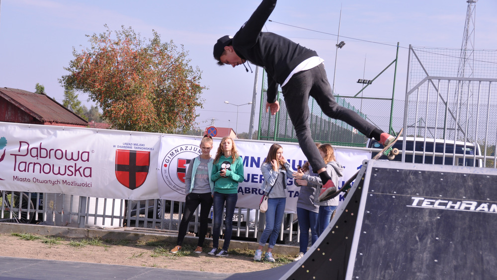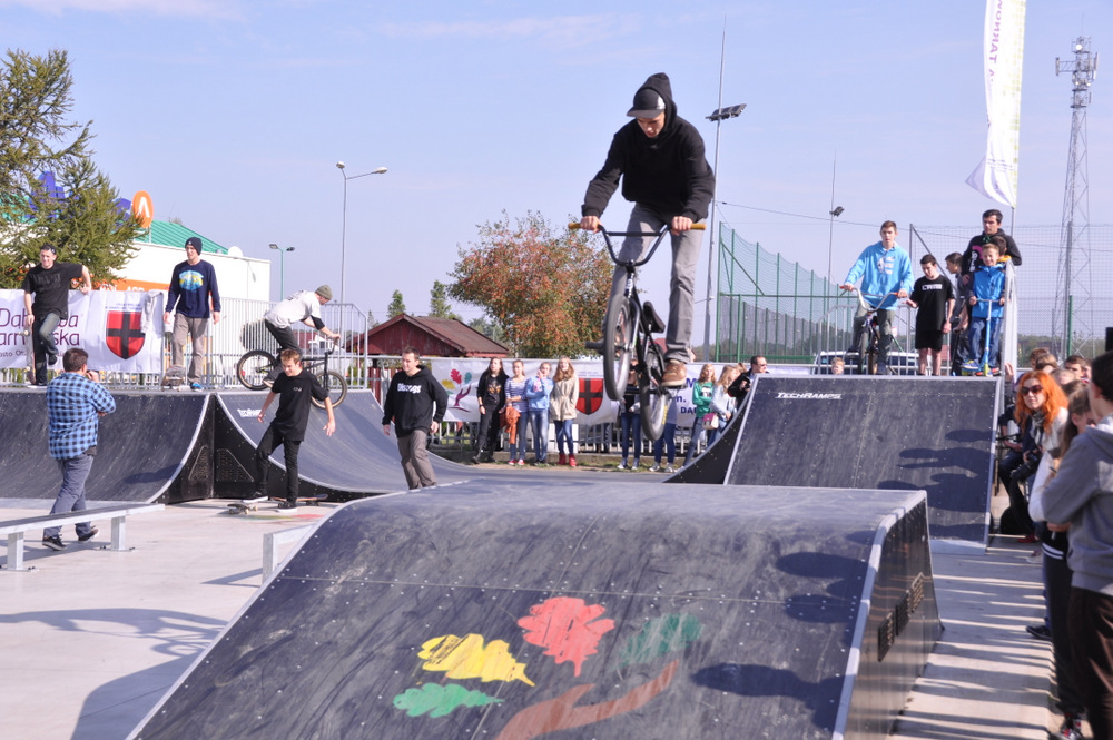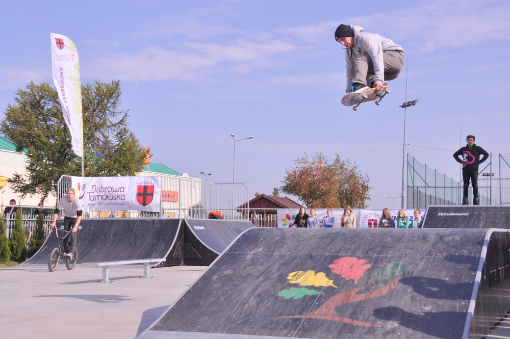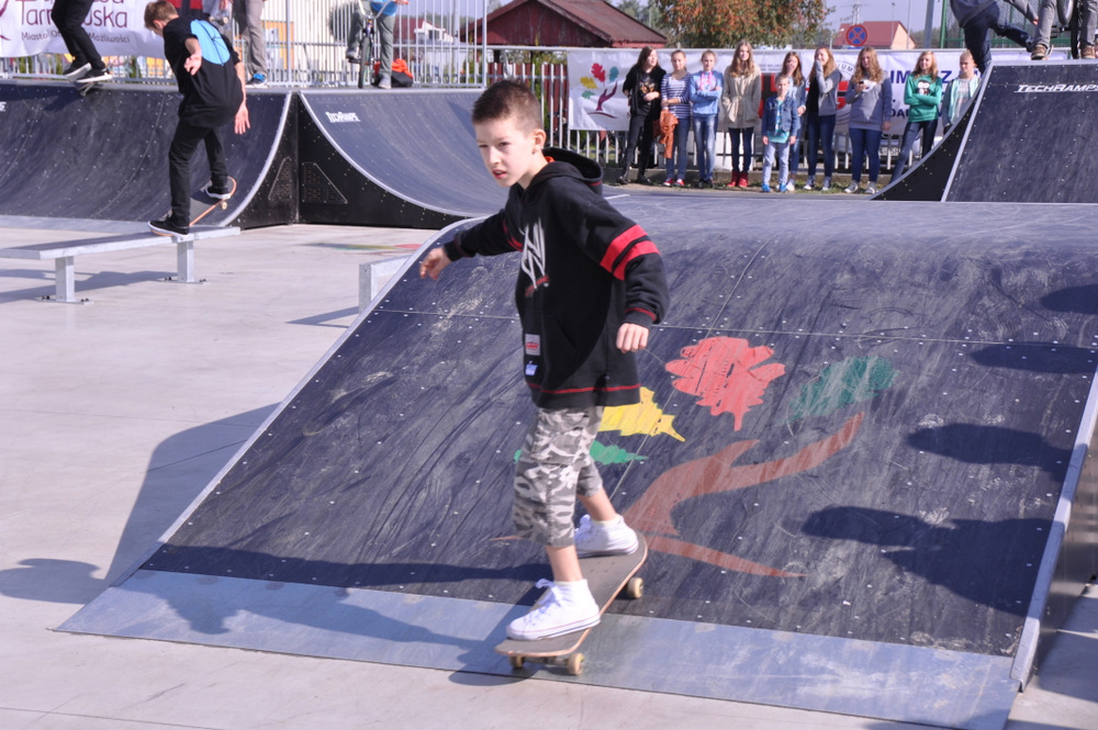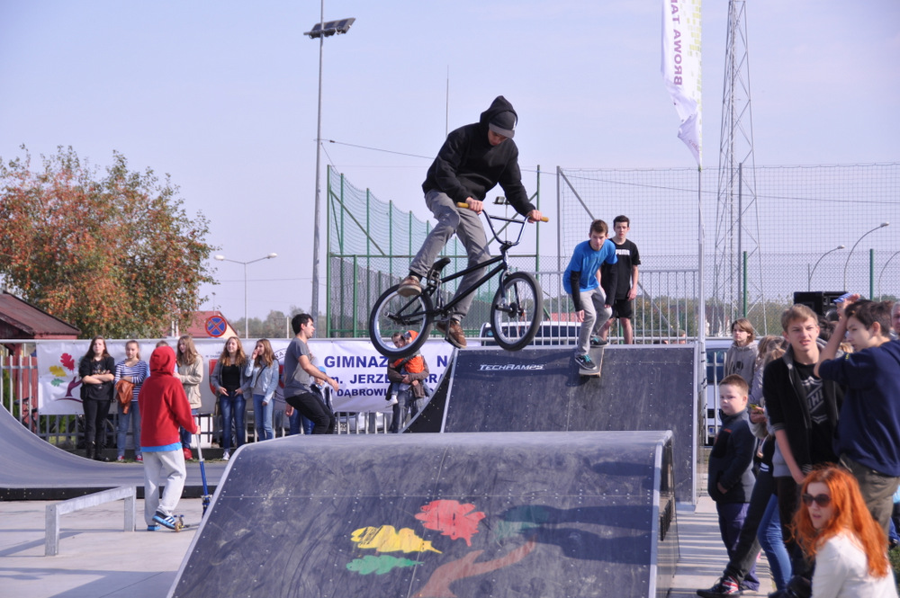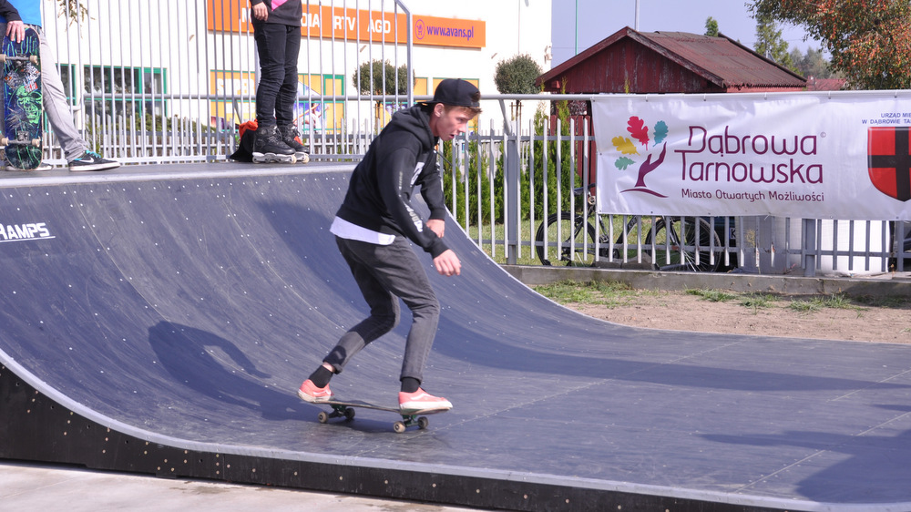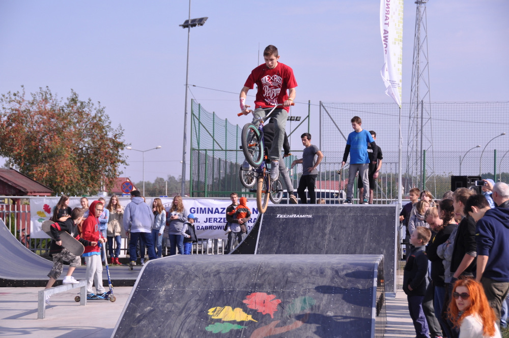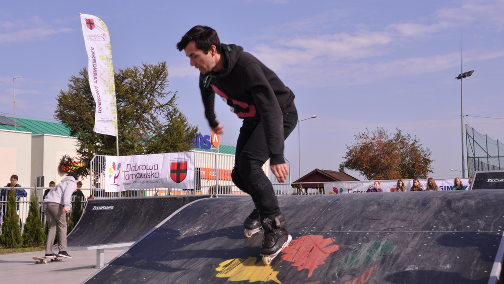 4 października br.w naszym mieście uroczyście oddano do użytku nowy skatepark, co jest  kolejnym dowodem na to, że Dąbrowa Tarnowska zasługuje na miano „miasta otwartych możliwości”. Przy pięknej jesiennej pogodzie otwarliśmy inwestycję, tym razem skierowaną głównie do ludzi młodych. Świadczy to o tym, że samorząd Gminy Dąbrowa Tarnowska dba o kreowanie przyjaznej przestrzeni dla młodzieży. Nie jest przesadą stwierdzenie, że realizacja tej inwestycji to w dużej mierze wynik starań młodzieży, która podzieliła się z samorządem gminnym swoimi pomysłami na zagospodarowanie czasu wolnego i przestrzeni miejskiej. Na adres Rady Miejskiej i do Urzędu Miejskiego w Dąbrowie Tarnowskiej wpływały listy w tej sprawie. Ponadto młodzież spotykała się z Burmistrzem  celem przedstawienia swoich koncepcji rozwoju miasta i gminy, a motyw skateparku często się pojawiał w tych rozmowach. Zawsze ceniłem współpracę z młodymi mieszkańcami naszej gminy i tym większa jest satysfakcja nas wszystkich, że byli oni jedną z sił sprawczych tej inwestycji – powiedział Burmistrz Stanisław Początek. Dąbrowski Skatepark to niemal 600 m2 płyty betonowej o nawierzchni specjalnie przystosowanej do uprawiania sportów ekstremalnych takich jak jazda na deskorolce, rowerze BMX, hulajnodze wyczynowej czy rolkach. Wykonawcą zadania jest firma Techramps z Krakowa,podwykonawcą była dąbrowska firma Instal- System Pana Marka Golonki.  Koszt inwestycji wyniósł 412 665,00 zł. Układ przestrzenny oddawanego do użytku skateparku w Dąbrowie Tarnowskiej zapewnia warunki do uprawiania skatingu tak przez amatorów jak i przez profesjonalistów.