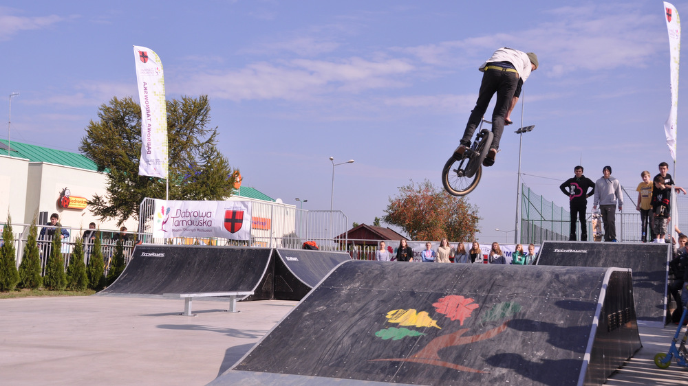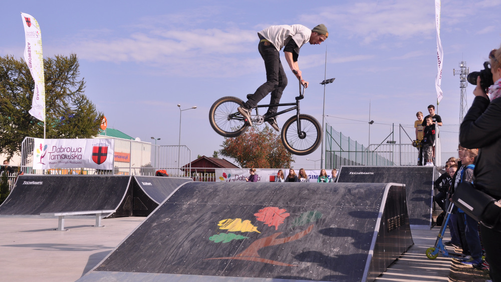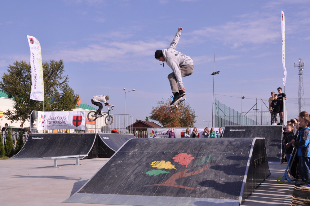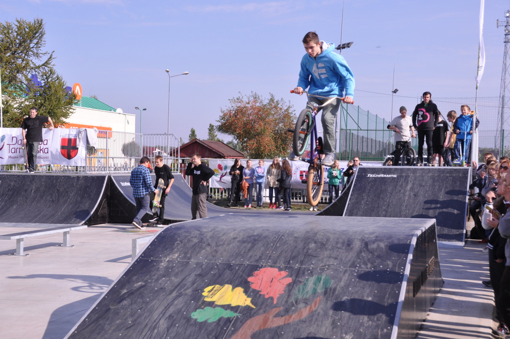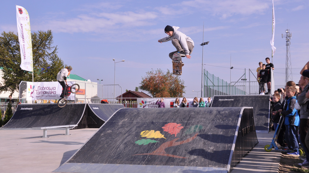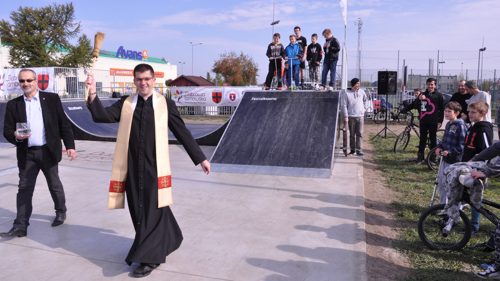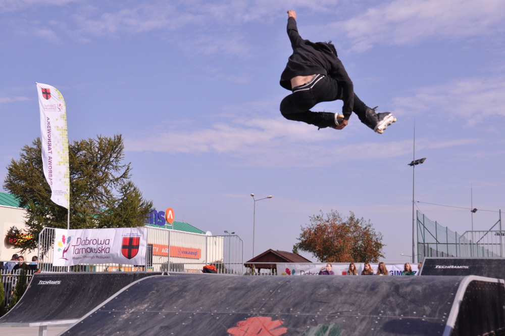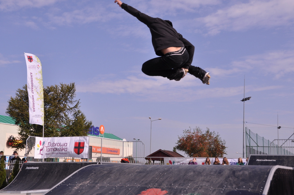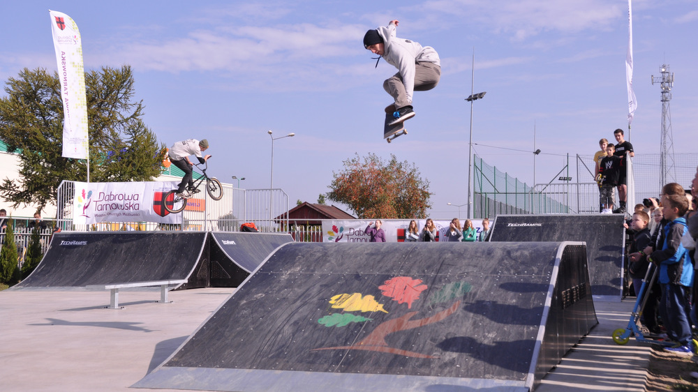 4 października br.w naszym mieście uroczyście oddano do użytku nowy skatepark, co jest  kolejnym dowodem na to, że Dąbrowa Tarnowska zasługuje na miano „miasta otwartych możliwości”. Przy pięknej jesiennej pogodzie otwarliśmy inwestycję, tym razem skierowaną głównie do ludzi młodych. Świadczy to o tym, że samorząd Gminy Dąbrowa Tarnowska dba o kreowanie przyjaznej przestrzeni dla młodzieży. Nie jest przesadą stwierdzenie, że realizacja tej inwestycji to w dużej mierze wynik starań młodzieży, która podzieliła się z samorządem gminnym swoimi pomysłami na zagospodarowanie czasu wolnego i przestrzeni miejskiej. Na adres Rady Miejskiej i do Urzędu Miejskiego w Dąbrowie Tarnowskiej wpływały listy w tej sprawie. Ponadto młodzież spotykała się z Burmistrzem  celem przedstawienia swoich koncepcji rozwoju miasta i gminy, a motyw skateparku często się pojawiał w tych rozmowach. Zawsze ceniłem współpracę z młodymi mieszkańcami naszej gminy i tym większa jest satysfakcja nas wszystkich, że byli oni jedną z sił sprawczych tej inwestycji – powiedział Burmistrz Stanisław Początek. Dąbrowski Skatepark to niemal 600 m2 płyty betonowej o nawierzchni specjalnie przystosowanej do uprawiania sportów ekstremalnych takich jak jazda na deskorolce, rowerze BMX, hulajnodze wyczynowej czy rolkach. Wykonawcą zadania jest firma Techramps z Krakowa,podwykonawcą była dąbrowska firma Instal- System Pana Marka Golonki.  Koszt inwestycji wyniósł 412 665,00 zł. Układ przestrzenny oddawanego do użytku skateparku w Dąbrowie Tarnowskiej zapewnia warunki do uprawiania skatingu tak przez amatorów jak i przez profesjonalistów.