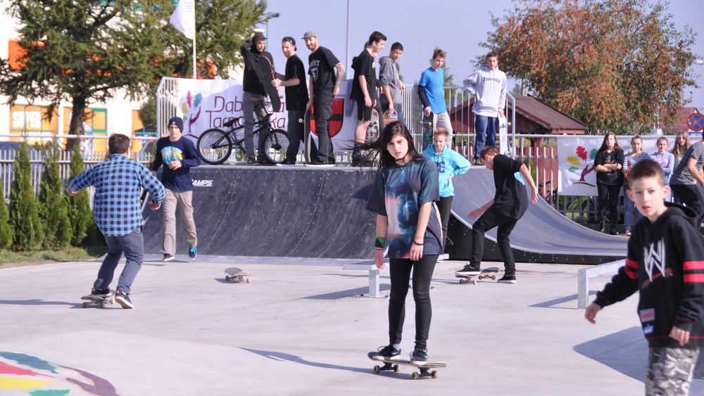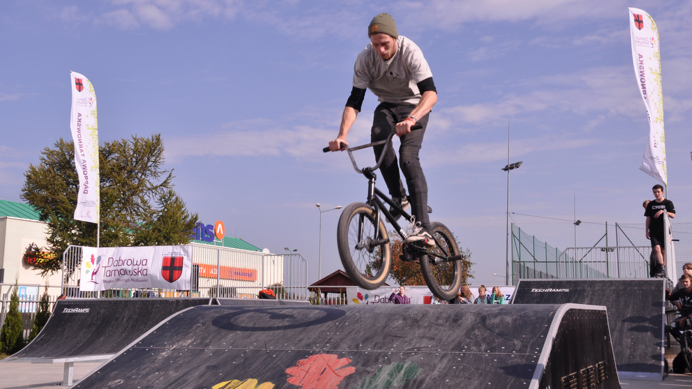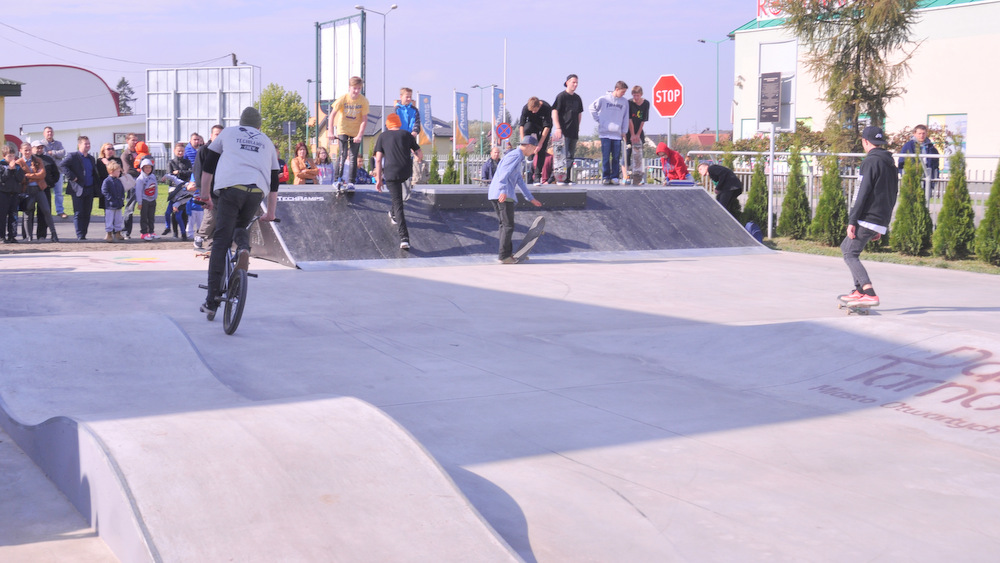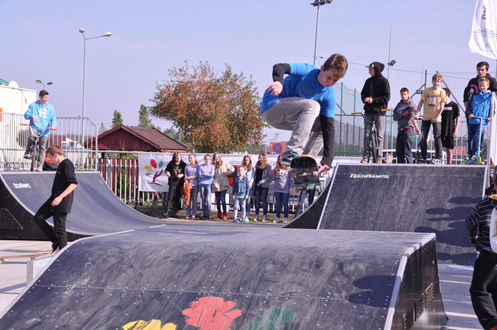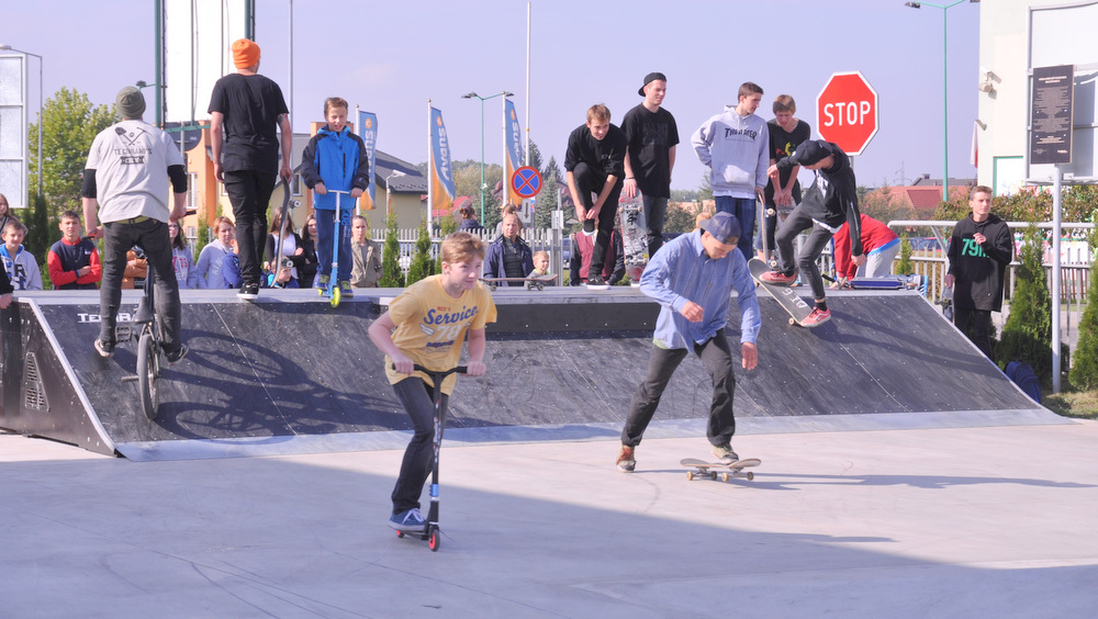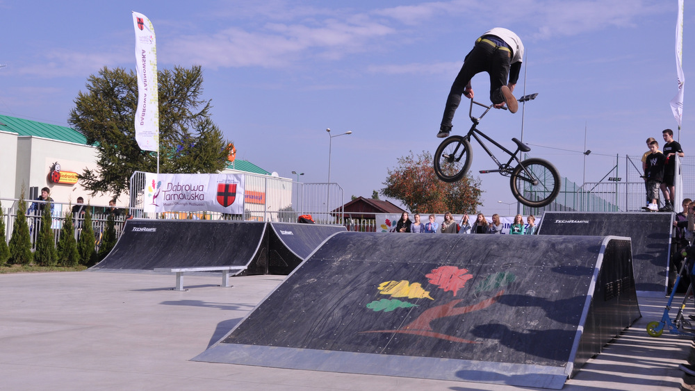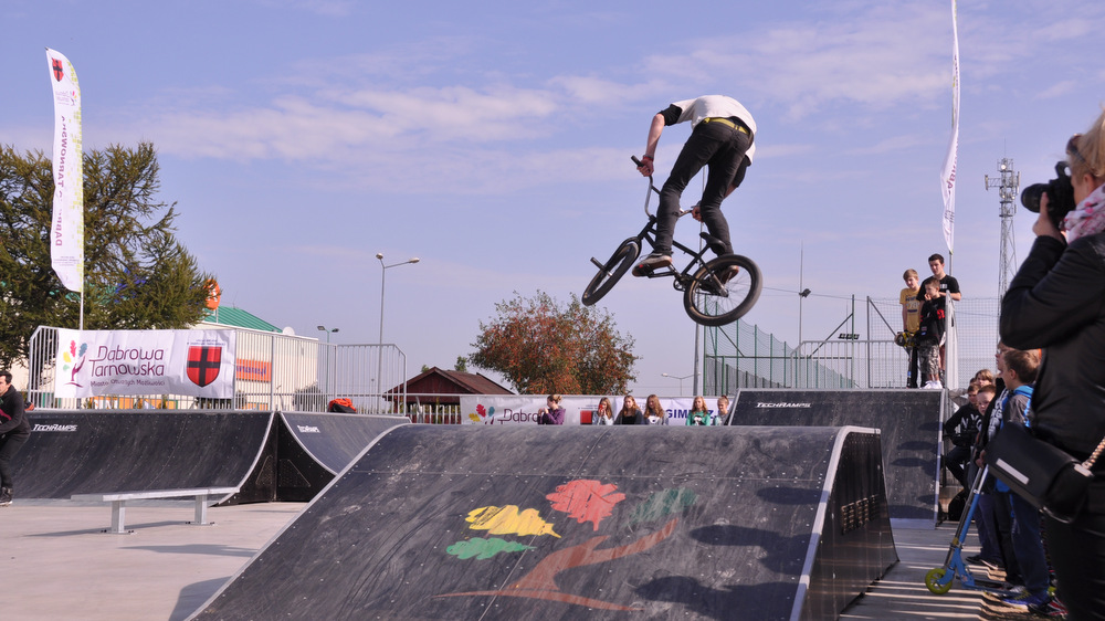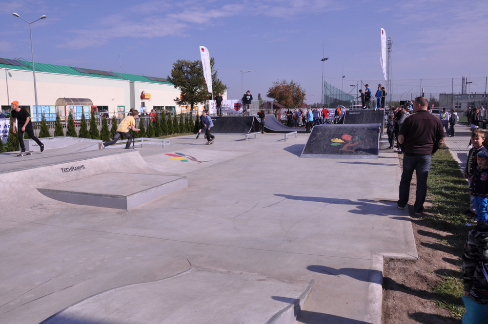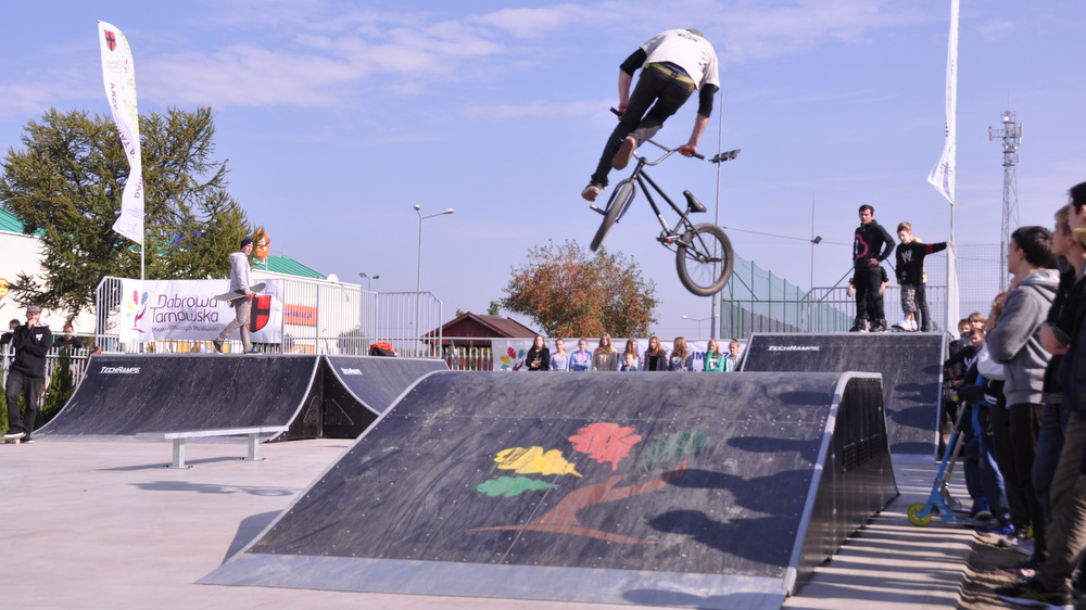 4 października br.w naszym mieście uroczyście oddano do użytku nowy skatepark, co jest  kolejnym dowodem na to, że Dąbrowa Tarnowska zasługuje na miano „miasta otwartych możliwości”. Przy pięknej jesiennej pogodzie otwarliśmy inwestycję, tym razem skierowaną głównie do ludzi młodych. Świadczy to o tym, że samorząd Gminy Dąbrowa Tarnowska dba o kreowanie przyjaznej przestrzeni dla młodzieży. Nie jest przesadą stwierdzenie, że realizacja tej inwestycji to w dużej mierze wynik starań młodzieży, która podzieliła się z samorządem gminnym swoimi pomysłami na zagospodarowanie czasu wolnego i przestrzeni miejskiej. Na adres Rady Miejskiej i do Urzędu Miejskiego w Dąbrowie Tarnowskiej wpływały listy w tej sprawie. Ponadto młodzież spotykała się z Burmistrzem  celem przedstawienia swoich koncepcji rozwoju miasta i gminy, a motyw skateparku często się pojawiał w tych rozmowach. Zawsze ceniłem współpracę z młodymi mieszkańcami naszej gminy i tym większa jest satysfakcja nas wszystkich, że byli oni jedną z sił sprawczych tej inwestycji – powiedział Burmistrz Stanisław Początek. Dąbrowski Skatepark to niemal 600 m2 płyty betonowej o nawierzchni specjalnie przystosowanej do uprawiania sportów ekstremalnych takich jak jazda na deskorolce, rowerze BMX, hulajnodze wyczynowej czy rolkach. Wykonawcą zadania jest firma Techramps z Krakowa,podwykonawcą była dąbrowska firma Instal- System Pana Marka Golonki.  Koszt inwestycji wyniósł 412 665,00 zł. Układ przestrzenny oddawanego do użytku skateparku w Dąbrowie Tarnowskiej zapewnia warunki do uprawiania skatingu tak przez amatorów jak i przez profesjonalistów.