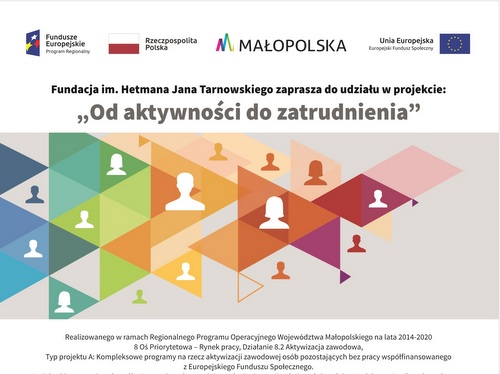Fundacja im. Hetmana Jana Tarnowskiego zaprasza do udziału w projekcie „Od aktywności do zatrudnienia” współfinansowanego w ramach Regionalnego Programu Operacyjnego Województwa Małopolskiego na lata 2014-2020, Oś Priorytetowa 8 Rynek Pracy, Działanie 8.2 Aktywizacja zawodowa, Typ projektu A: kompleksowe programy na rzecz aktywizacji zawodowej osób pozostających bez pracy.