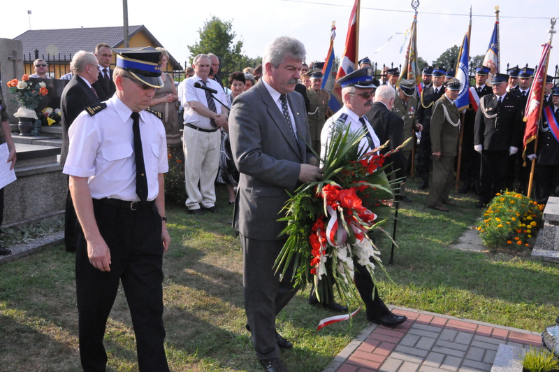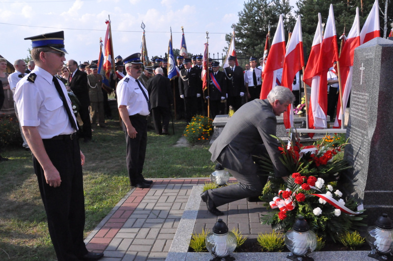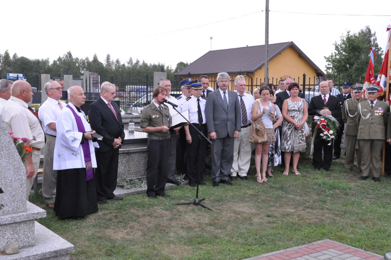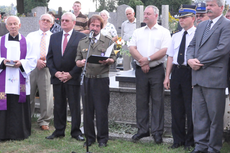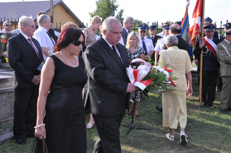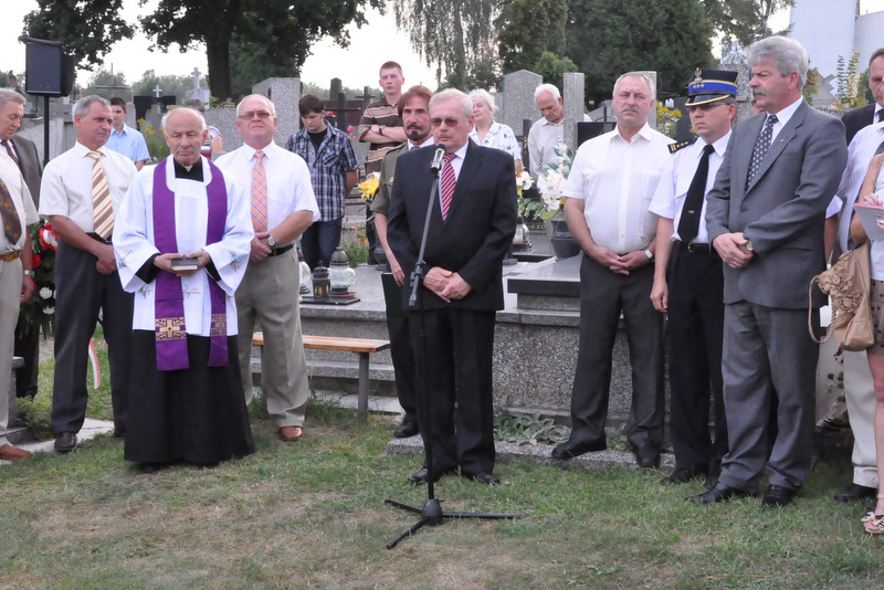 W krótkim przemówieniu przypomniał fakty historyczne związane z Powstaniem Warszawskim. Przypomniał też historię załogi samolotu Halifax, zestrzelonej nad Dąbrową Tarnowską. W nocy 4/5 sierpnia 1944 r nad naszym miastem został zestrzelony przez niemieckiego myśliwca aliancki bombowiec Halifax, który spieszył na pomoc walczącej Warszawie. Zginęła wówczas cała załoga ( 5 Kanadyjczyków, 1 Brytyjczyk i 1 Irlandczyk). Ich ciała pochowano na miejscowym cmentarzu. Po wojnie szczątki lotników zestrzelonego samolotu przeniesiono do zbiorowej mogiły żołnierzy alianckich na Cmentarzu Rakowickim. Od 2006 r. kiedy na potrzeby Muzeum Powstania Warszawskiego wydobyto z bagnistej ziemi wrak samolotu, samorząd gminny wraz z właścicielem firmy TRANS-KAM Andrzejem Fido ufundował pomnik.