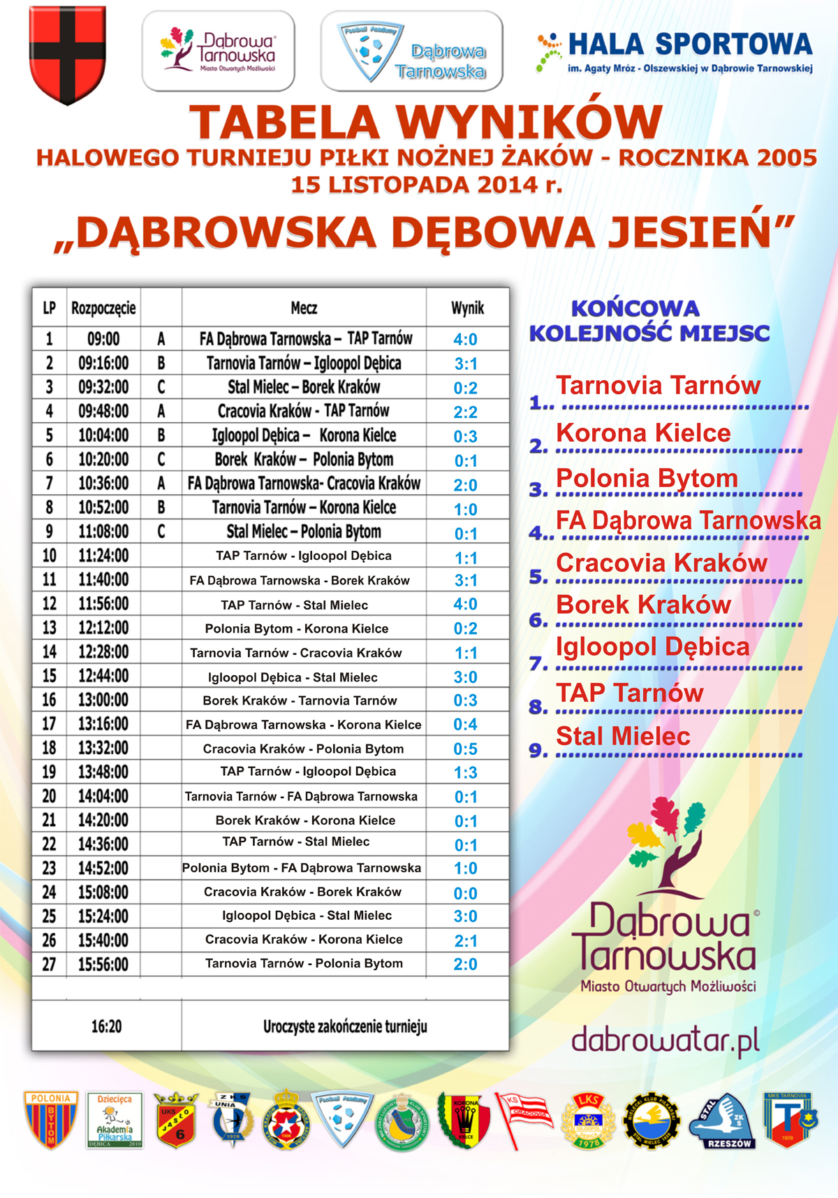 ROCZNIKA 2005 Afisz WYNIKITabelaDDJ FA rocznik2005 15 11 2014 Pierwsza edycja Dąbrowskiej Dębowej Jesieni już nami