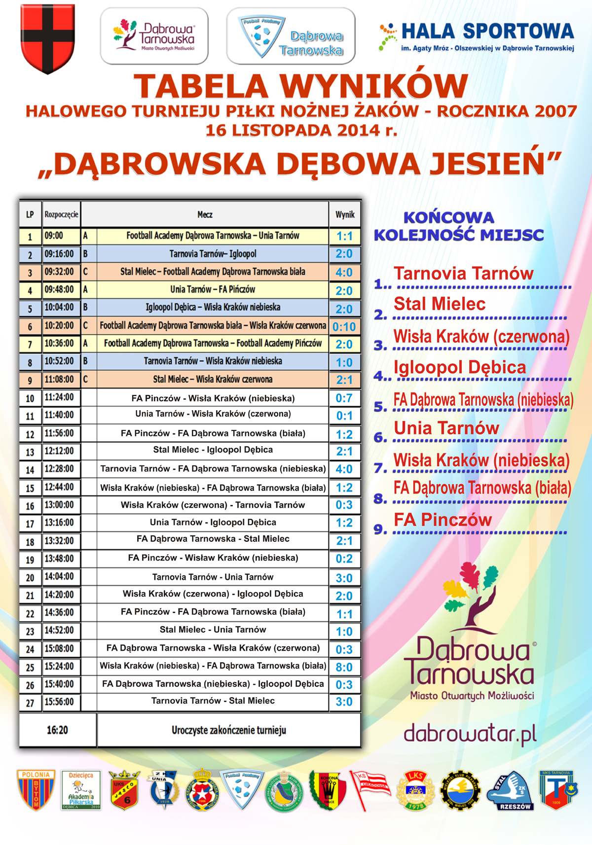 ROCZNIKA 2007 WYNIKITabelaDDJ FA rocznik2007 16 11 2014 Pierwsza edycja Dąbrowskiej Dębowej Jesieni już nami