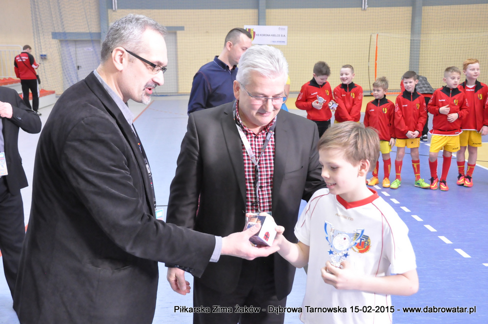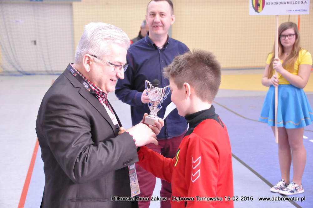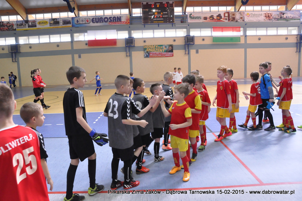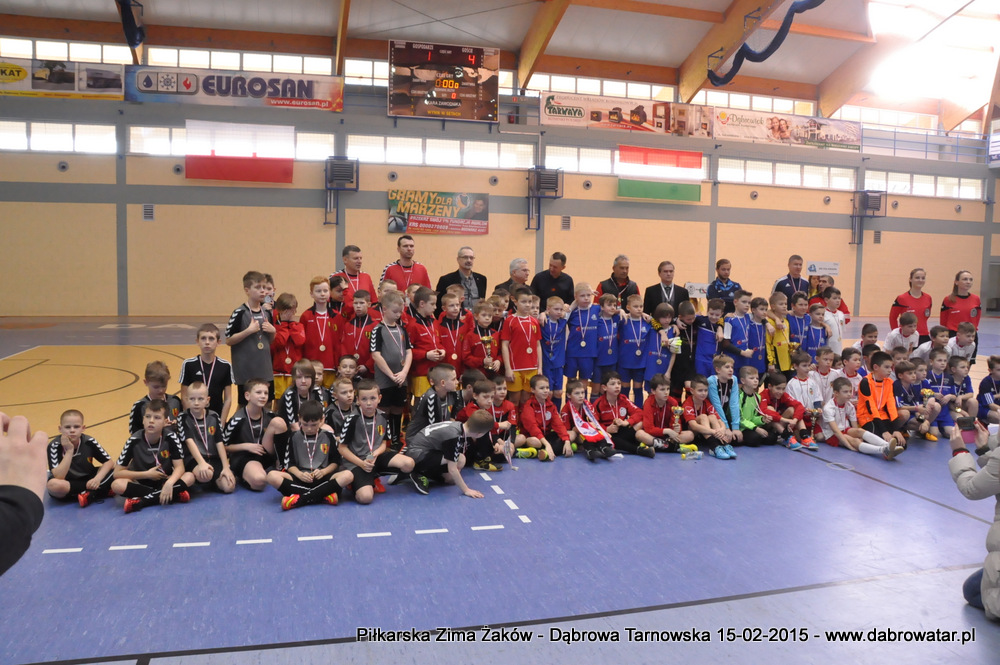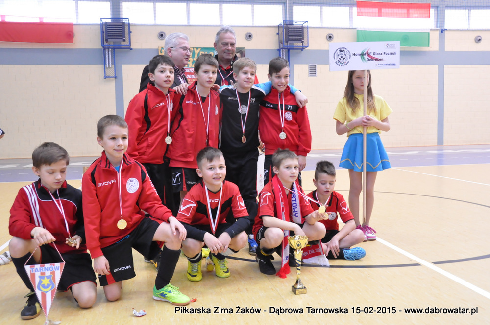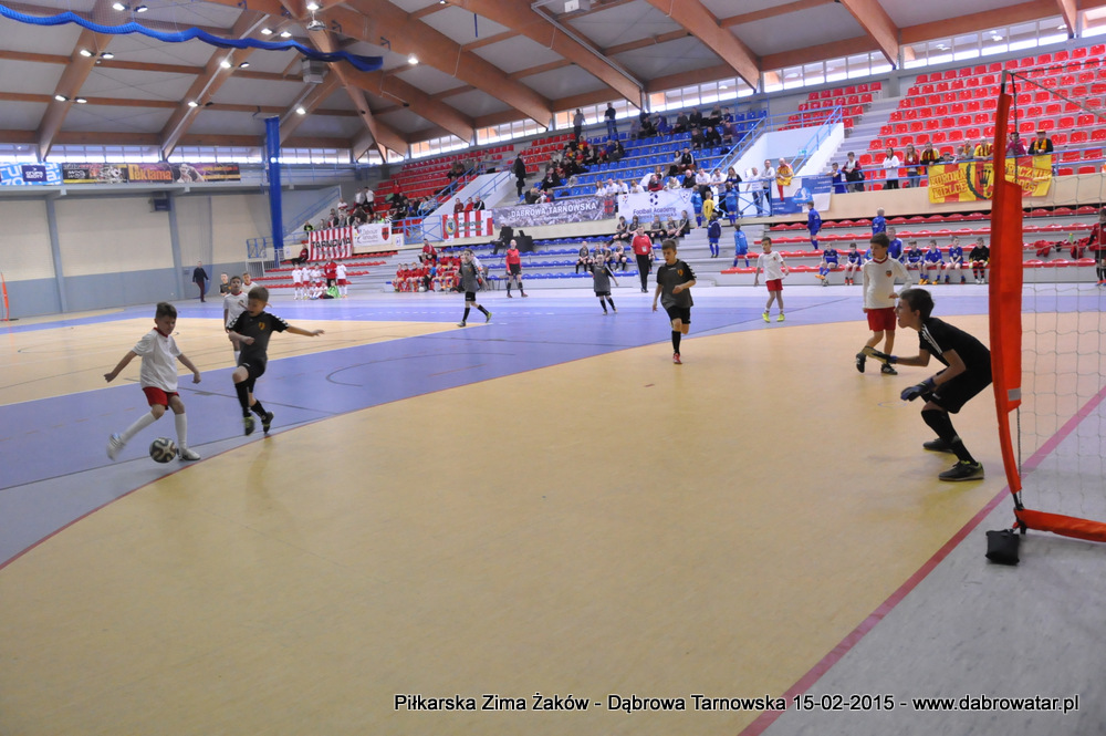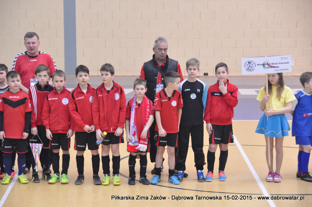 W niedzielę 15 lutego br. dąbrowska Hala Sportowa im. Agaty Mróz – Olszewskiej gościła młodych piłkarzy z rocznika 2005, z trzech różnych województw naszego kraju oraz z Debreczyna na Węgrzech. Gospodarzem Międzynarodowego Turnieju „Piłkarska Zima Żaków” był Football Academy Dąbrowa Tarnowska. Z ekipą tą rywalizowały drużyny: Korona Kielce, Stal Rzeszów, Tarnovia Tarnów oraz Honoved SE Olasz Focisuli Debrecen - Węgry. Wszyscy zespoły pokazały świetny poziom gry i otrzymały pamiątkowe puchary z rąk Burmistrza Dąbrowy Tarnowskiej. Ideą turnieju była wymiana doświadczeń między klubami i promocja piłki nożnej wśród młodych ludzi. Zespoły występowały w składach sześcioosobowych, a 15 – minutowe mecze rozgrywano w systemie każdy z każdym. Nie wyłoniono jednoznacznego zwycięzcy turnieju, gdyż organizatorzy postawili na samą radość sportu i rekreacji ruchowej oraz krzewienia idei „fair play”. Niedzielna impreza sportowa stała się także dobrą okazją do promocji Dąbrowy Tarnowskiej i działającej lokalnie Football Academy pod kierunkiem Roberta Antosza. Niemniej ważne było nawiązywanie i pielęgnowanie kontaktów sportowych o charakterze regionalnym i ponadregionalnym. Profesjonalna organizacja turnieju wyrażana przez trenerów i rodziców przez Football Academy Dąbrowa Tarnowska oraz Referatów: Promocji i Sportu Urzędu Miejskiego oraz doskonały obiekt Hali Sportowej im. Agaty Mróz – Olszewskiej jest podstawą by móc do nas zapraszać drużyny sportowe w każdej kategorii wiekowej zarówno z kraju jak i z zagranicy. Cieszy bardzo że dzieci z naszego miasta i okolic maja możliwość konfrontacji, poznania zaprzyjaźnienia z rówieśnikami z najlepszych ośrodków piłkarskich. Najlepszym zawodnikiem turnieju okazał się Oskar Świstak z Tarnovii Tarnów, a najlepszym bramkarzem Kacper Kubicki z Korony Kielce.