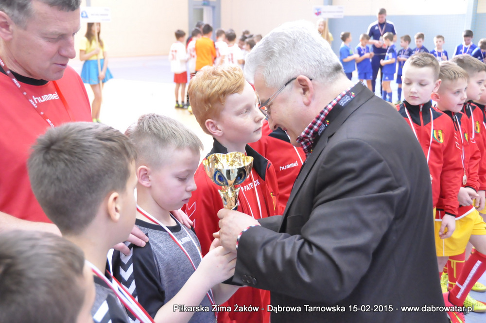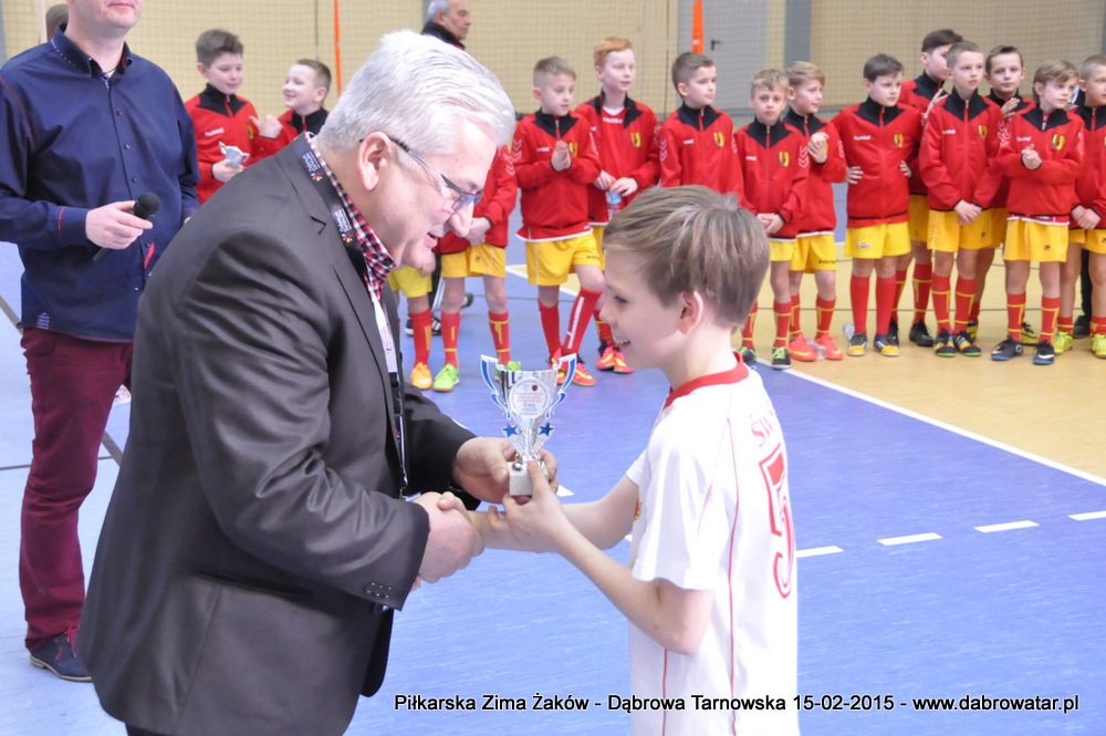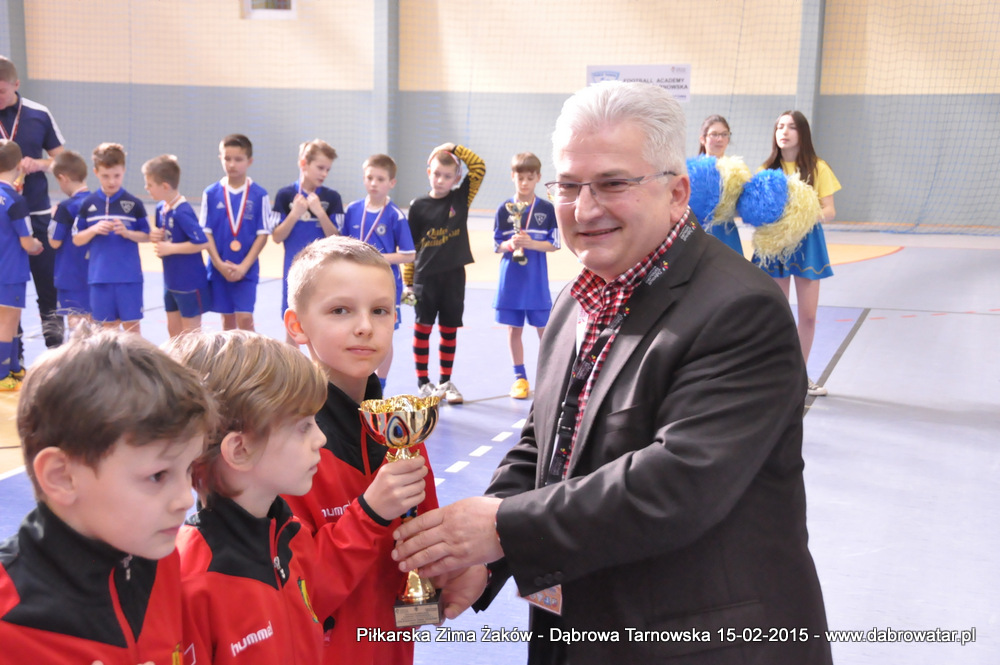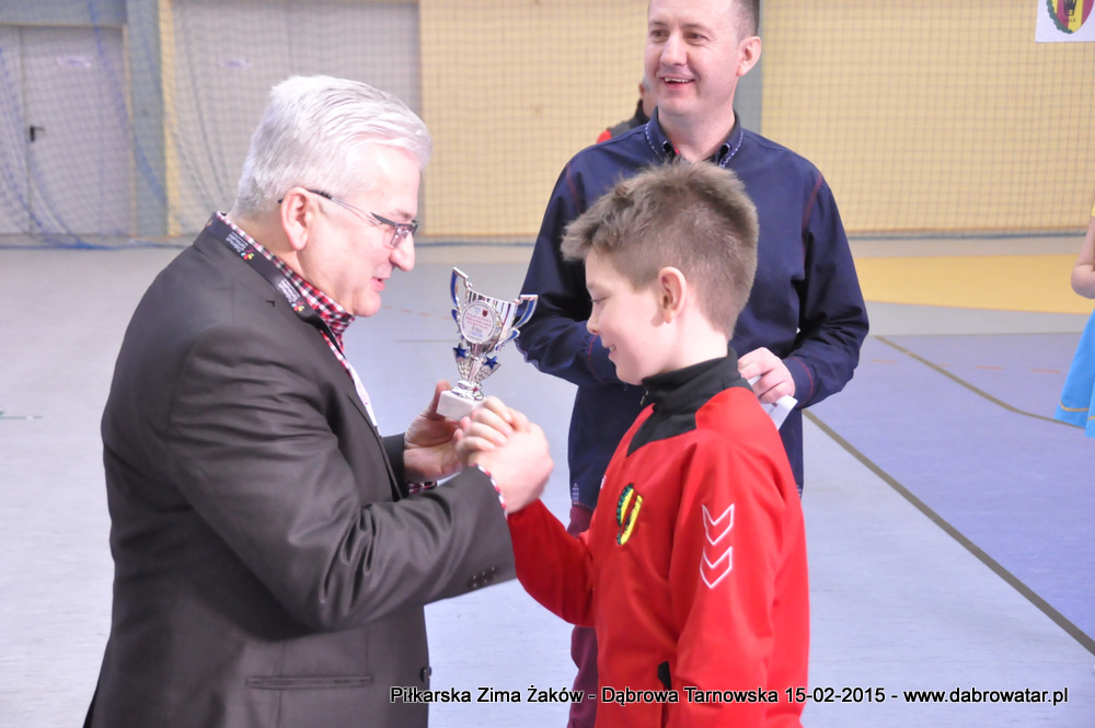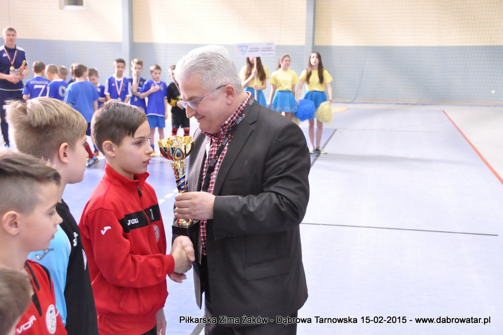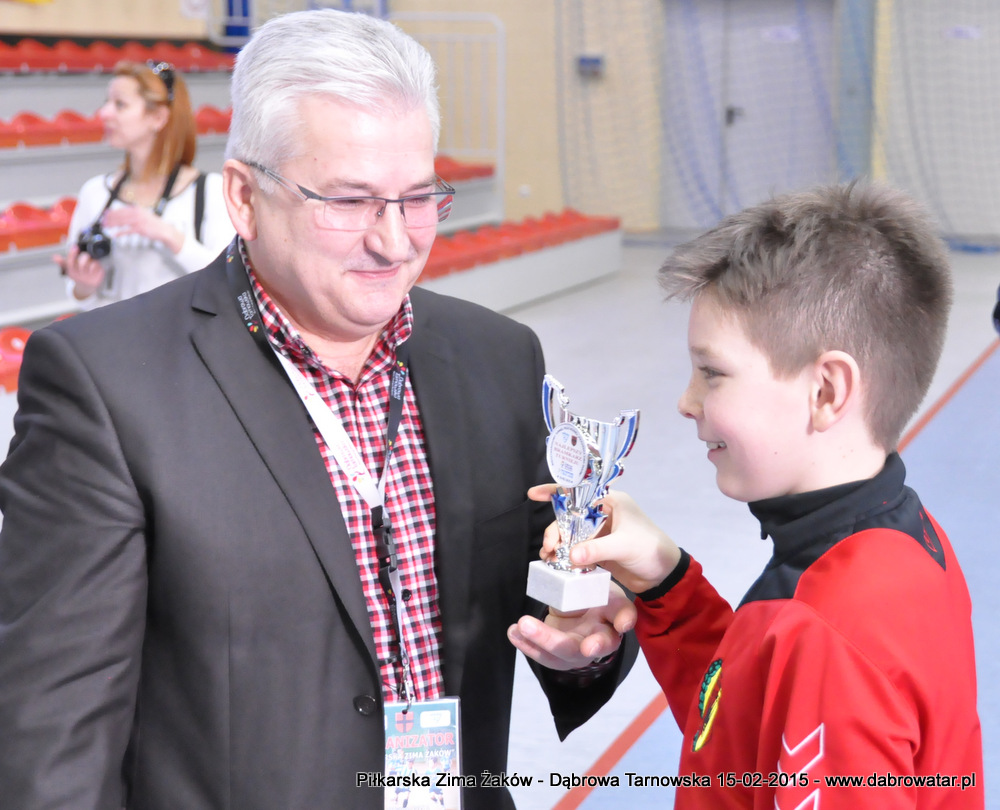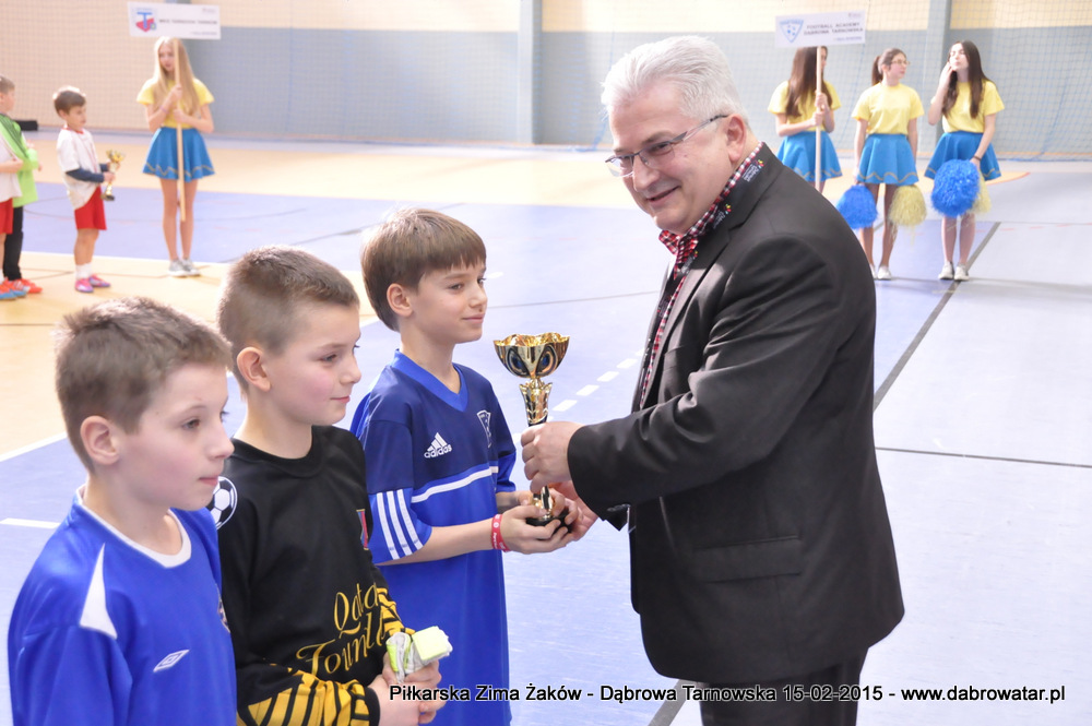 W niedzielę 15 lutego br. dąbrowska Hala Sportowa im. Agaty Mróz – Olszewskiej gościła młodych piłkarzy z rocznika 2005, z trzech różnych województw naszego kraju oraz z Debreczyna na Węgrzech. Gospodarzem Międzynarodowego Turnieju „Piłkarska Zima Żaków” był Football Academy Dąbrowa Tarnowska. Z ekipą tą rywalizowały drużyny: Korona Kielce, Stal Rzeszów, Tarnovia Tarnów oraz Honoved SE Olasz Focisuli Debrecen - Węgry. Wszyscy zespoły pokazały świetny poziom gry i otrzymały pamiątkowe puchary z rąk Burmistrza Dąbrowy Tarnowskiej. Ideą turnieju była wymiana doświadczeń między klubami i promocja piłki nożnej wśród młodych ludzi. Zespoły występowały w składach sześcioosobowych, a 15 – minutowe mecze rozgrywano w systemie każdy z każdym. Nie wyłoniono jednoznacznego zwycięzcy turnieju, gdyż organizatorzy postawili na samą radość sportu i rekreacji ruchowej oraz krzewienia idei „fair play”. Niedzielna impreza sportowa stała się także dobrą okazją do promocji Dąbrowy Tarnowskiej i działającej lokalnie Football Academy pod kierunkiem Roberta Antosza. Niemniej ważne było nawiązywanie i pielęgnowanie kontaktów sportowych o charakterze regionalnym i ponadregionalnym. Profesjonalna organizacja turnieju wyrażana przez trenerów i rodziców przez Football Academy Dąbrowa Tarnowska oraz Referatów: Promocji i Sportu Urzędu Miejskiego oraz doskonały obiekt Hali Sportowej im. Agaty Mróz – Olszewskiej jest podstawą by móc do nas zapraszać drużyny sportowe w każdej kategorii wiekowej zarówno z kraju jak i z zagranicy. Cieszy bardzo że dzieci z naszego miasta i okolic maja możliwość konfrontacji, poznania zaprzyjaźnienia z rówieśnikami z najlepszych ośrodków piłkarskich. Najlepszym zawodnikiem turnieju okazał się Oskar Świstak z Tarnovii Tarnów, a najlepszym bramkarzem Kacper Kubicki z Korony Kielce.