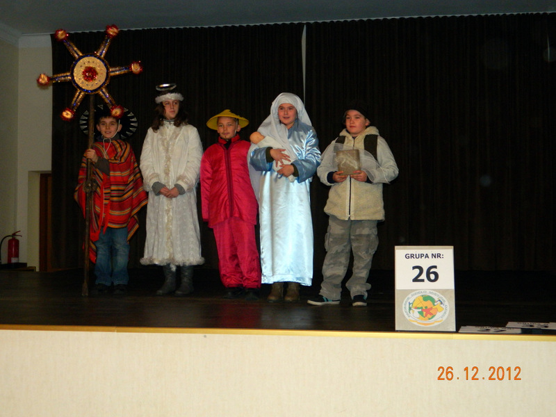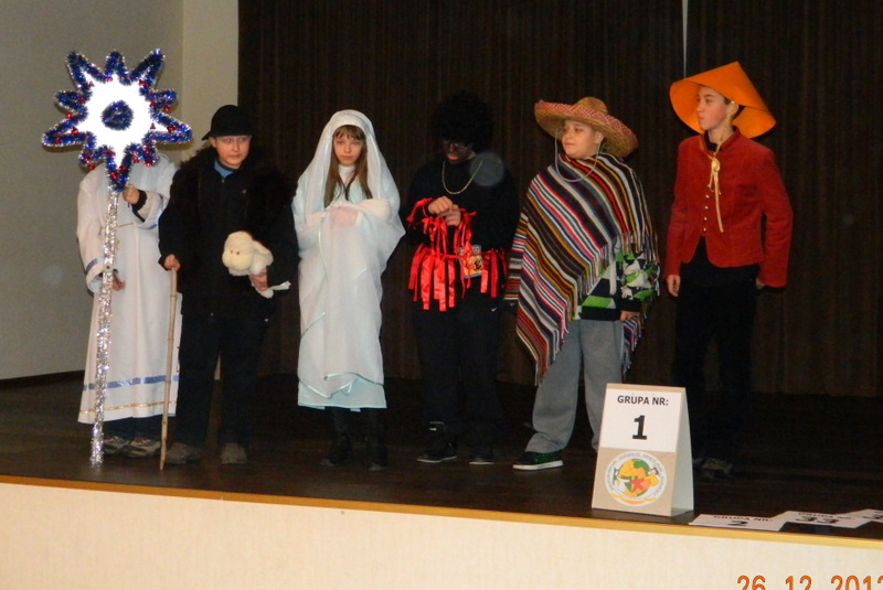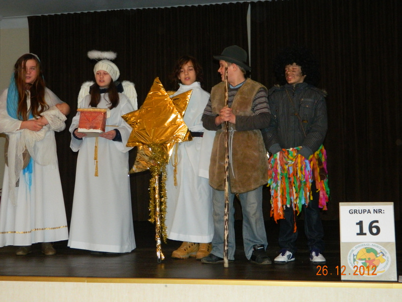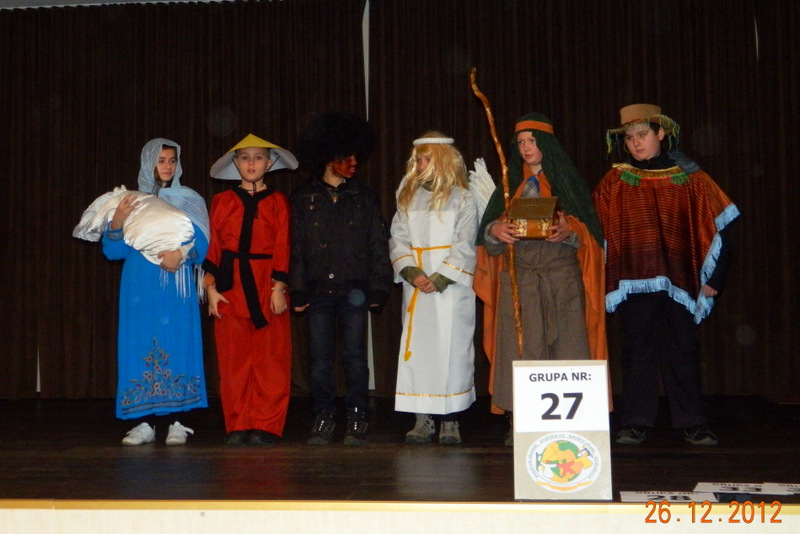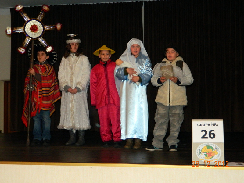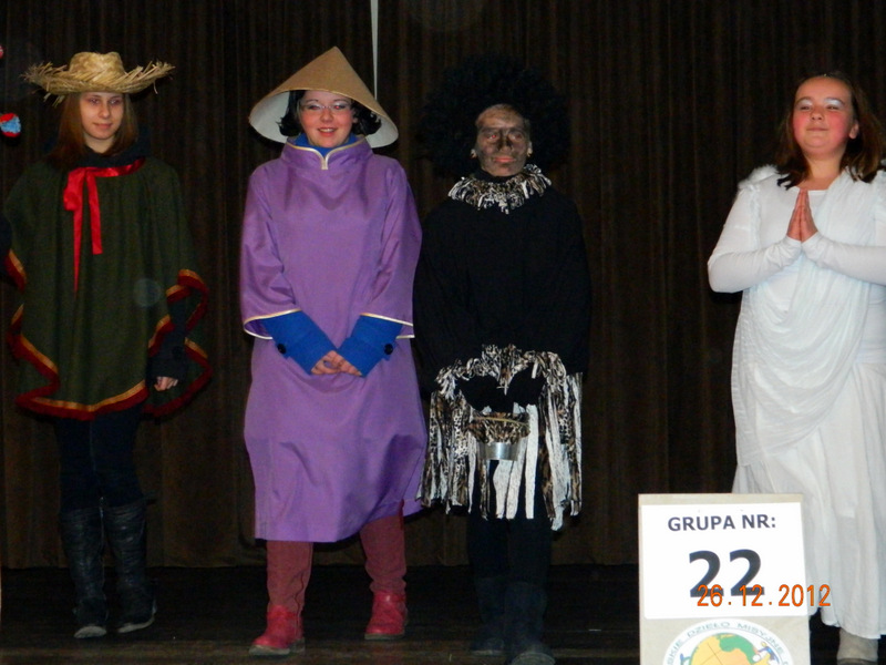 Każda grupa składała się z sześciu osób: anioła, Maryi, pastuszka, dziecka latynoamerykańskiego, afrykańskiego, wietnamskiego