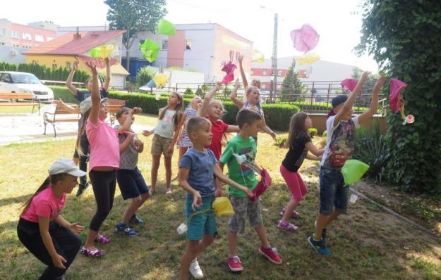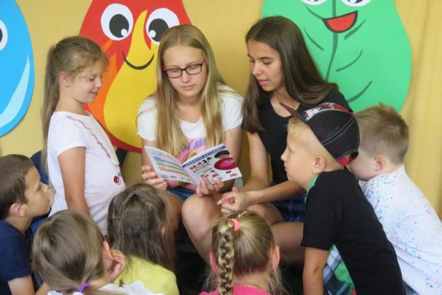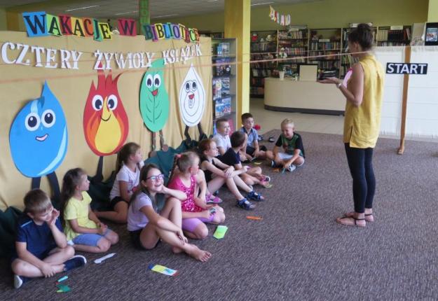 W ramach zajęć urządzono zabawy z wodą i barwnikami spożywczymi; wykorzystano balony i suszarkę, by przeprowadzić „powietrzne” doświadczenie; z serwetek i plastikowych kubeczków wykonywano własne spadochrony; woda posłużyła do tworzenia płynu do gigantycznych baniek mydlanych, a olej wraz z mąką pszenną nadał się do zrobienia sztucznego piasku. Omawianie żywiołu ognia było doskonałą okazją do spotkania ze strażakami: Anną Kaczówką z Ochotniczej Straży Pożarne w Smęgorzowie oraz Danielem Batorem z Państwowej Straży Pożarnej w Dąbrowie Tarnowskiej. Było to niezwykle wartościowe doświadczenie i wspaniała atrakcja w ramach wakacyjnych zajęć dla dzieci. Zajęciom towarzyszyła wystawa książek tematycznie związana z hasłem zajęć: bajek, picturebook’ów, książek popularnonaukowych i książek typu pop-up, które wykorzystywane były na spotkaniach z dziećmi.