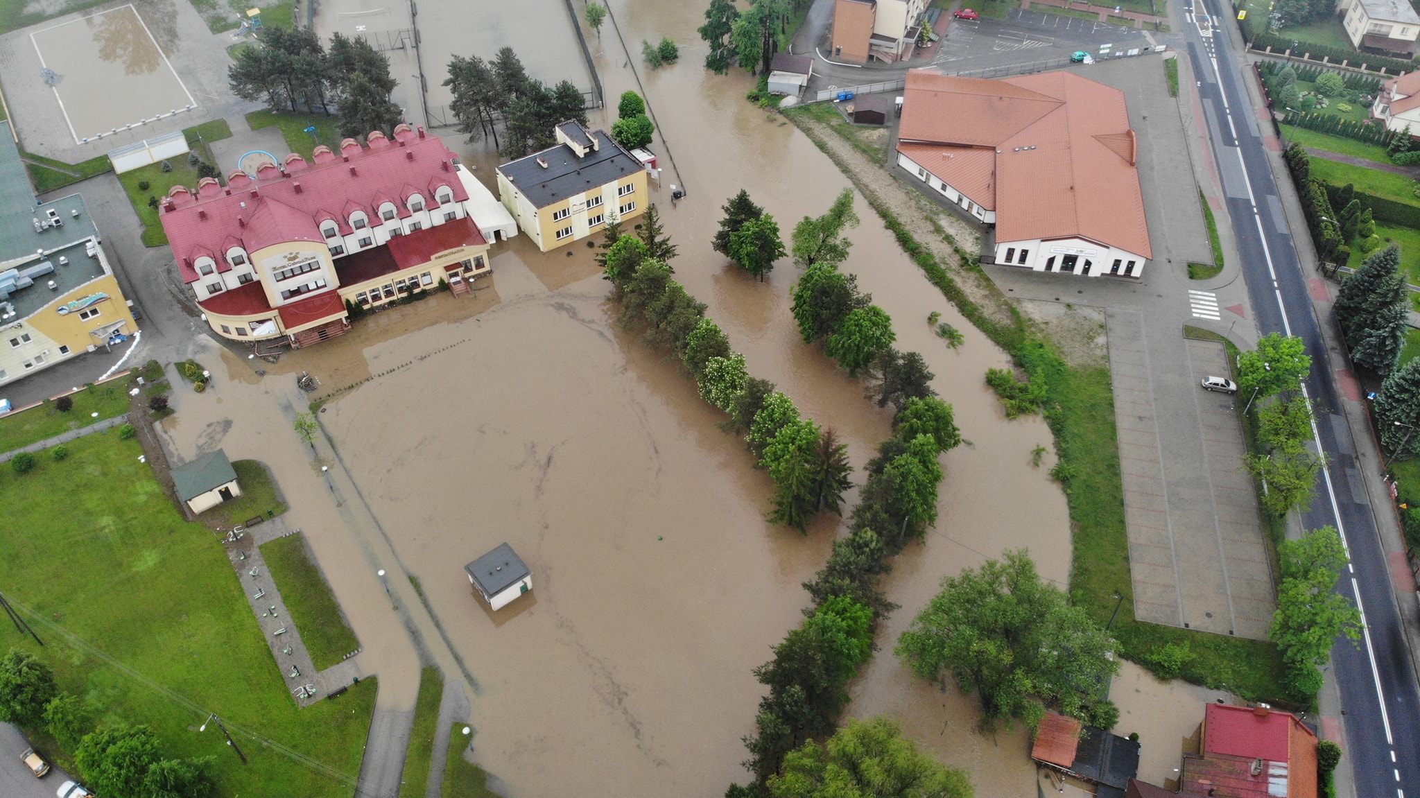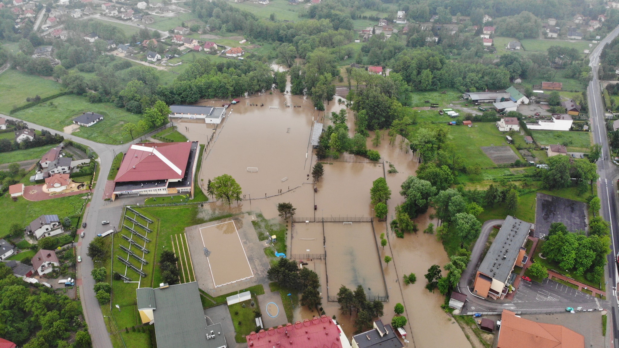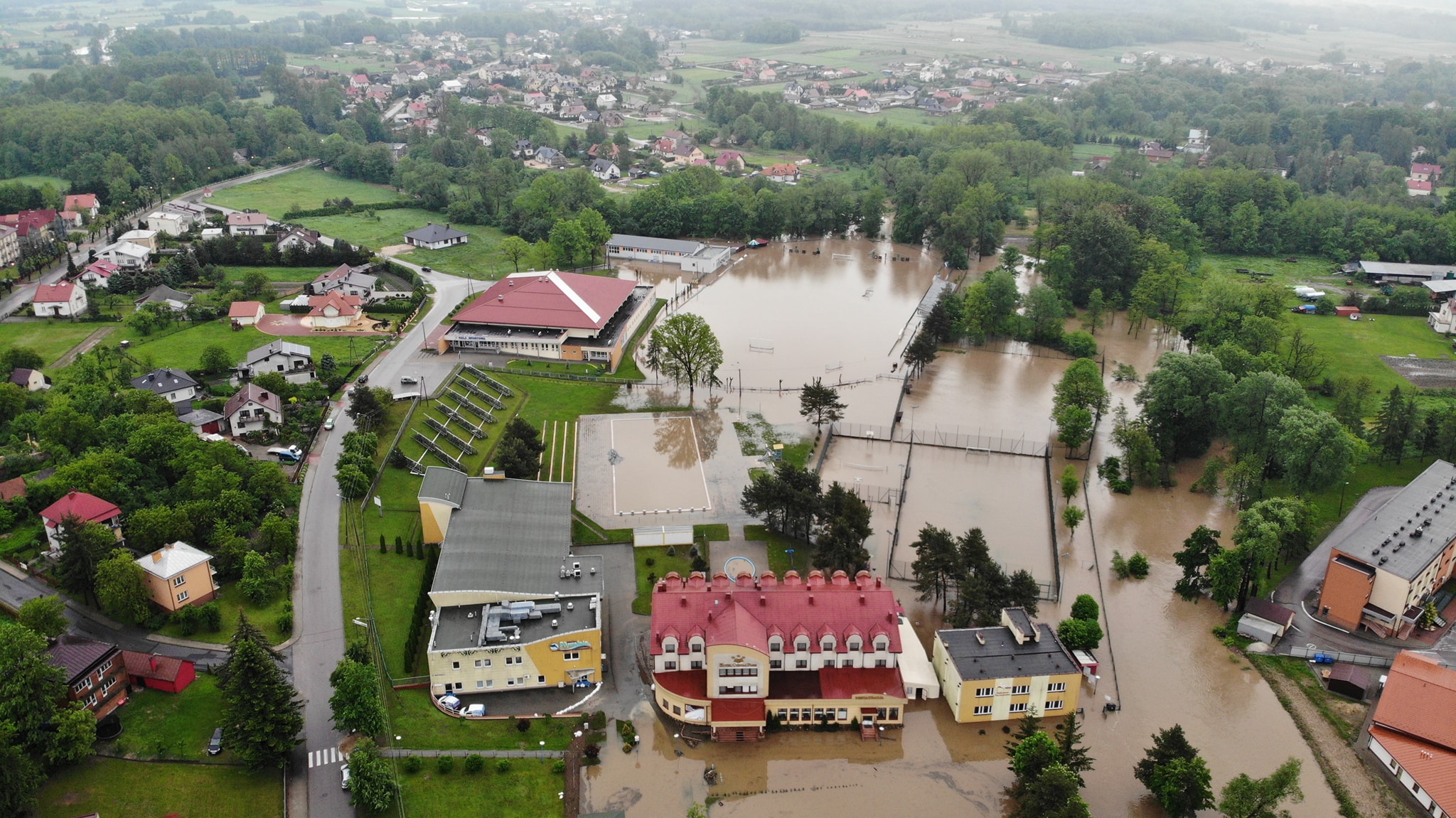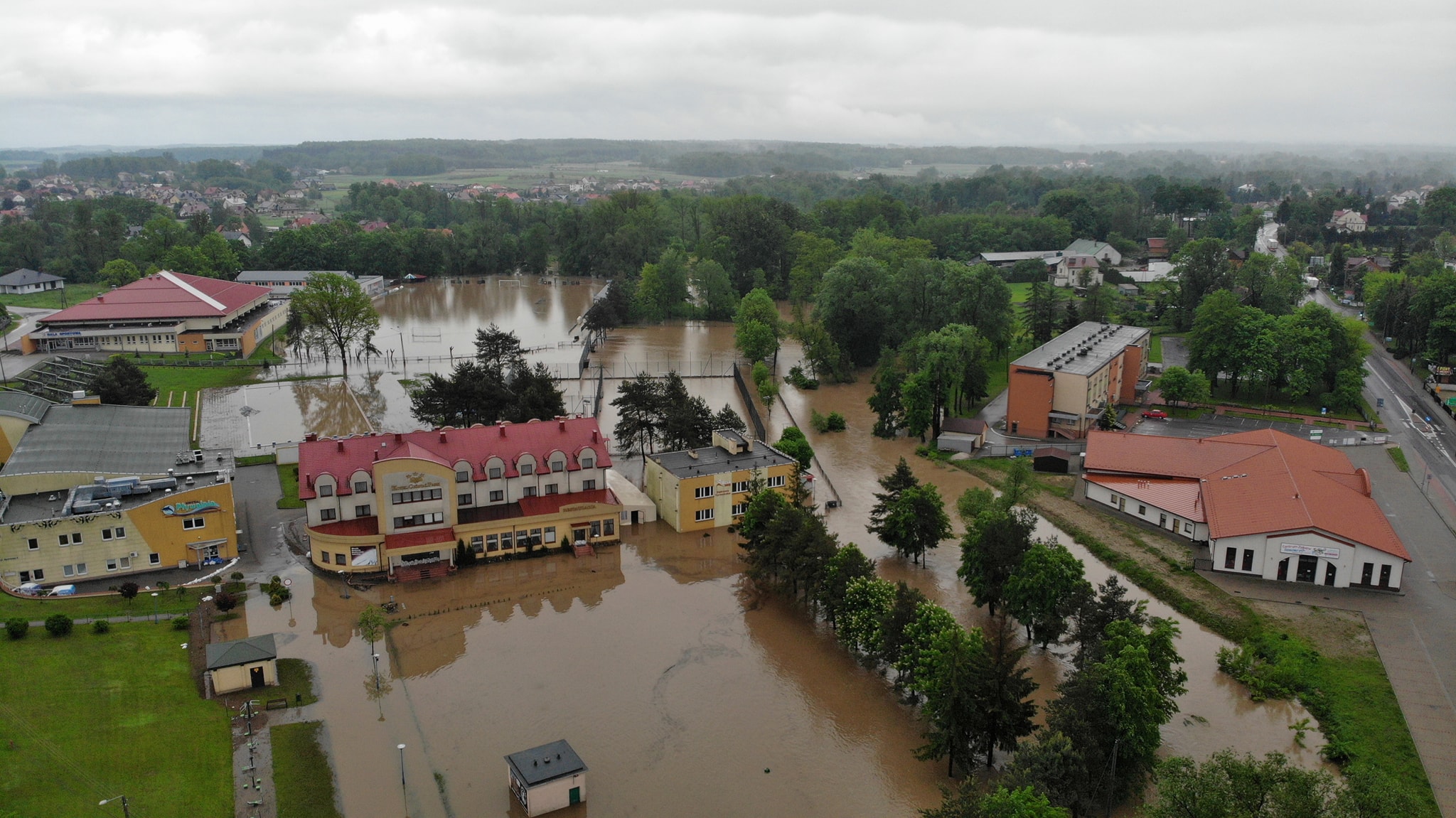 Po przekroczeniu stanów alarmowych przez rzeki na terenie Gminy rozpoczęło działania Gminne Centrum Zarządzania Kryzysowego. Wydano 6 000 worków i rozwieziono wiele ton piasku. Wszystkie jednostki OSP oraz strażacy zawodowi w bardzo krótkim czasie starali się pomóc w każdym miejscu za co im dziękuję, jednak potrzeby były ogromne i rąk do pracy brakowało. Dziękuję również przedsiębiorcom którzy użyczyli samochodów od przywozu pisku oraz sprzętu do załadunku. Dziękuję Ks. Proboszczowi Stanisławowi Cyranowi który we współpracy z CARITASEM użyczył osuszaczy oraz organizuje pomoc materialną dla poszkodowanych. Utrudnieniem dla akcji była konieczność wyłączenia prądu z uwagi na bezpieczeństwo mieszkańców. Wiele osób z poświęceniem pracowało całą noc. Wszystko wskazuje na to, że całonocna praca zespołu pracowników Ośrodka Sportu uratowała przed kompletnym zalaniem świeżo wyremontowaną halę łuczników.