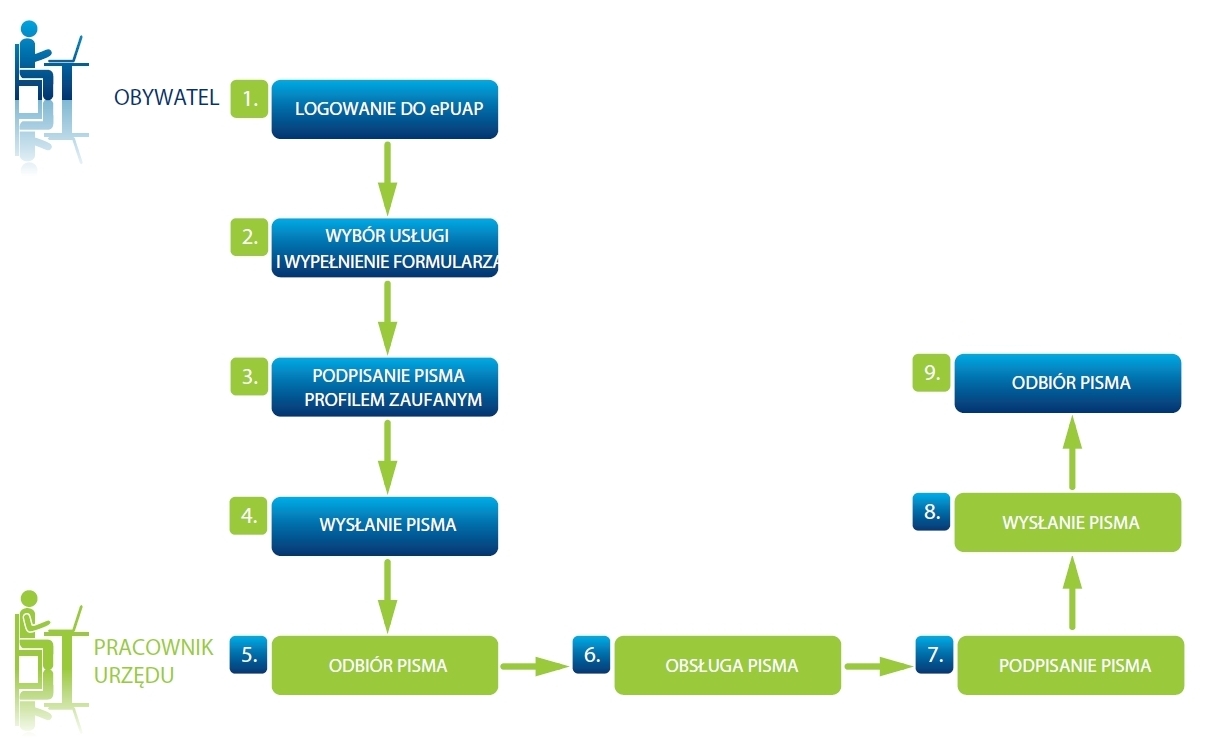 Profil zaufany działa jak odręczny podpis. Właściciel loguje się na stronie www.epuap.gov.pl, wybiera usługę, którą chce zrealizować, wypełnia wniosek, podpisuje go profilem zaufanym, a następnie wysyła wniosek do urzędu.