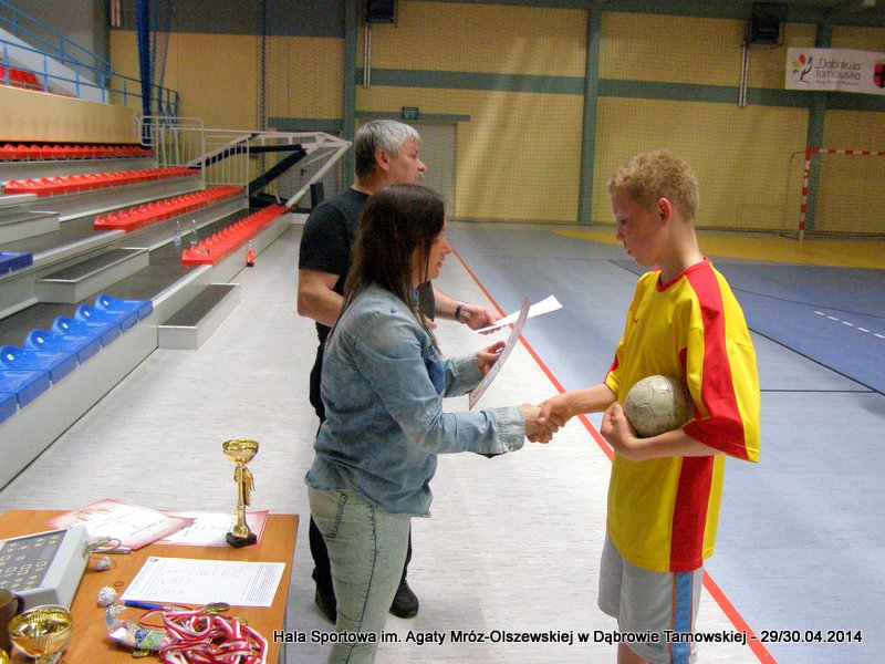 Jako pierwsi do rywalizacji o awans do zawodów wojewódzkich stanęli chłopcy we wtorek 29 kwietnia 2014 roku. Pięć drużyn rywalizowało ze sobą w systemie każdy z każdym w czasie 1 x 10 min. Zawody sędziowali nauczyciele wychowania fizycznego.