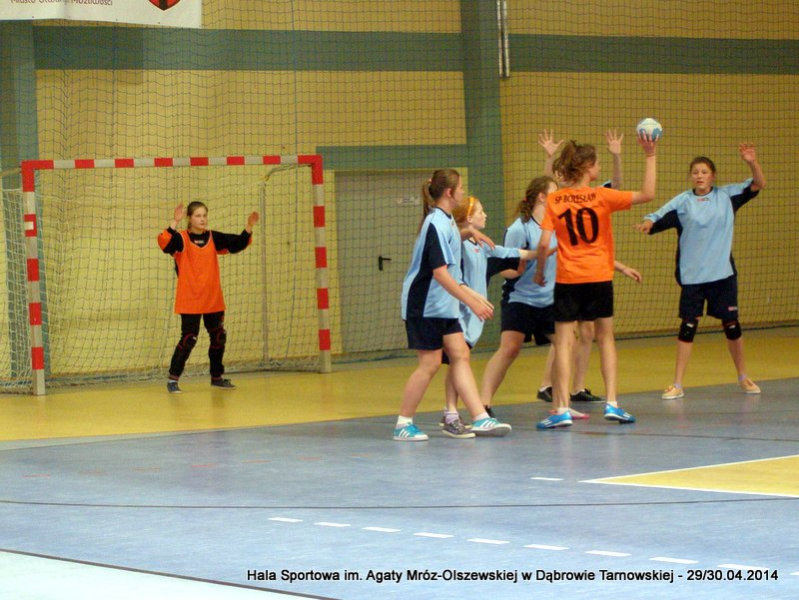 W środę 30 kwietnia przyszła kolej na wyłonienie najlepszej ekipy wśród dziewcząt. Do zawodów przystąpiło sześć drużyn, które zostały podzielone na dwie grupy. Grupa A: SP Olesno, SP Nr 2 Dąbrowa Tarnowska, SP Nieczajna Górna. Grupa B: SP Gręboszów, SP Radgoszcz, SP Bolesław.