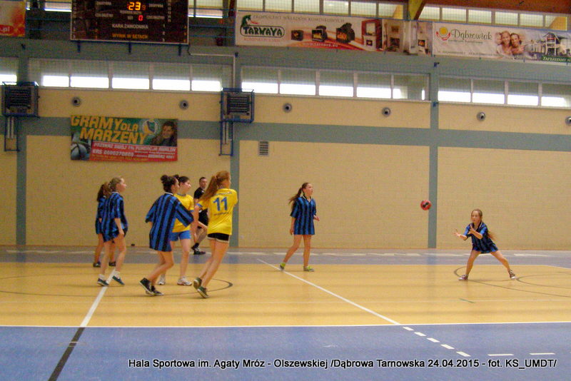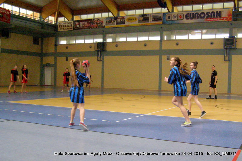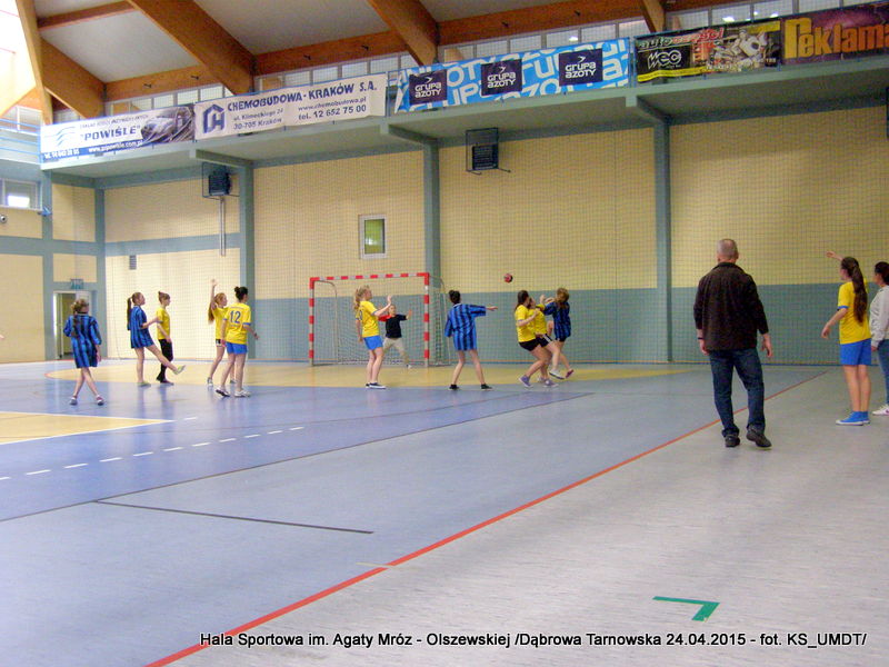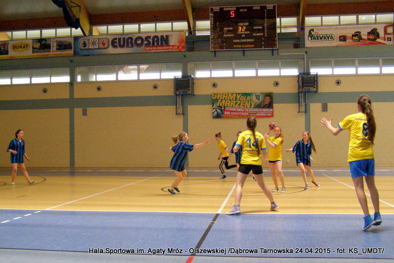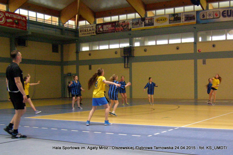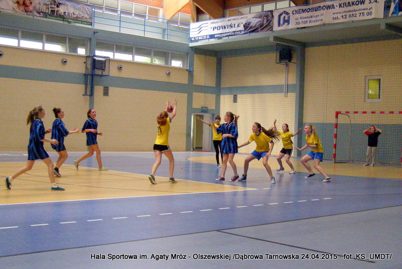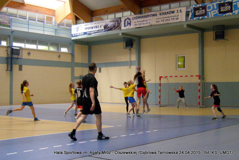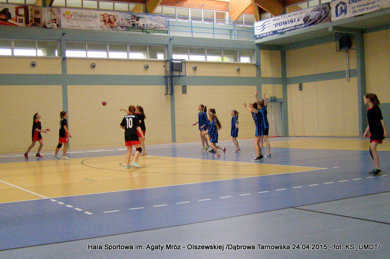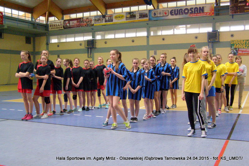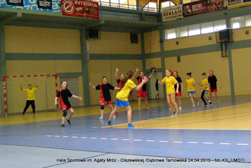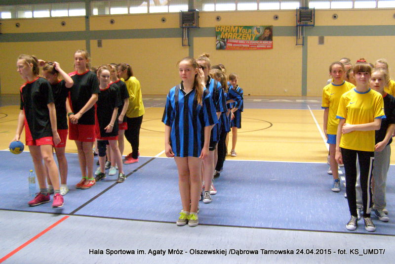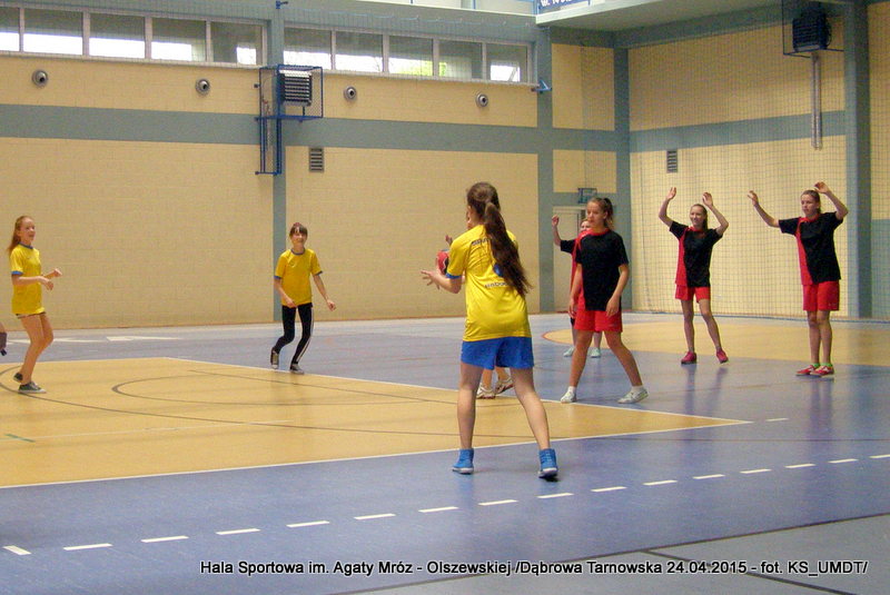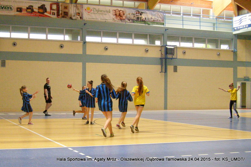 Trwa maraton szczypiorniaka na Hali Sportowej im Agaty Mróz – Olszewskiej w Dąbrowie Tarnowskiej. Po rozegranych w miniony wtorek i czwartek zawodach gminnych dla szkół podstawowych przyszedł czas na etap powiatowy. W piątek 24 kwietnia do rozgrywek w piłkę ręczną dziewcząt ze szkół podstawowych stanęły trzy najlepsze teamy z powiatu. O awans do zawodów rejonowych i tytuł Mistrza Powiatu walczyły drużyny: Szkoły Podstawowej w Smęgorzowie, Szkoły Podstawowej w Gręboszowie oraz Szkoły Podstawowej w Radgoszczy. Mecze rozegrano w systemie każdy z każdym w czasie 2 x 10 min, a nad prawidłowym przebiegiem zmagań czuwał sędzia Pan Paweł Grzyb.