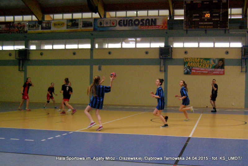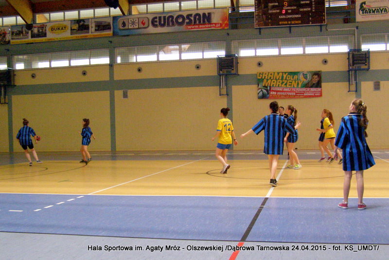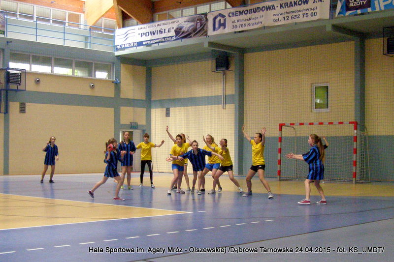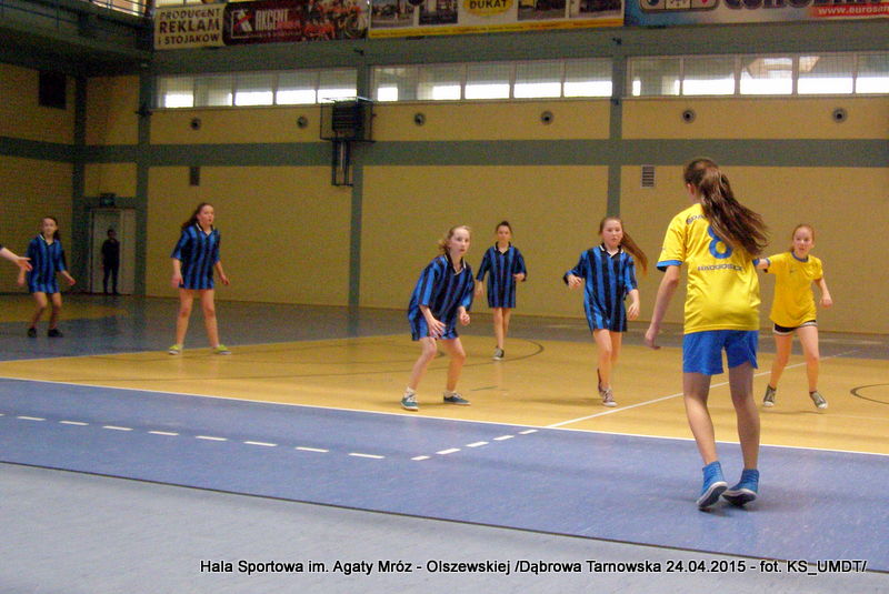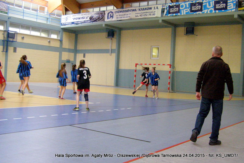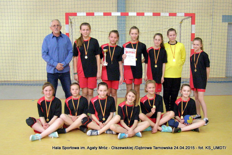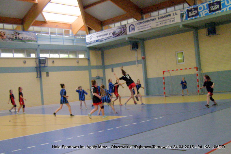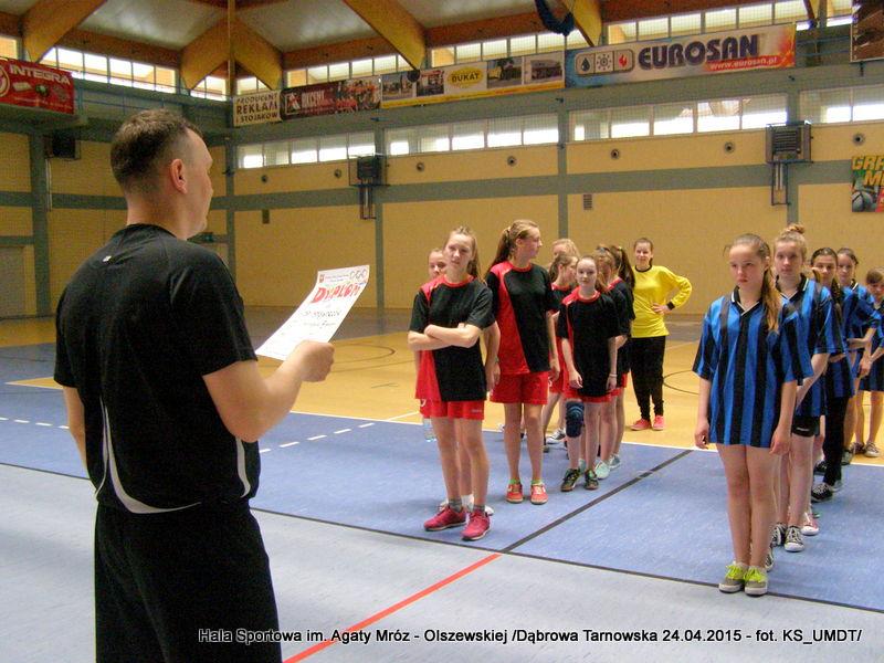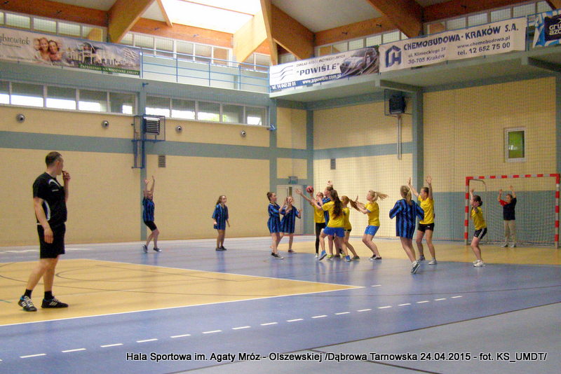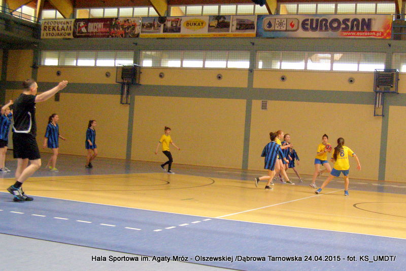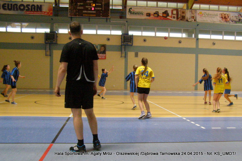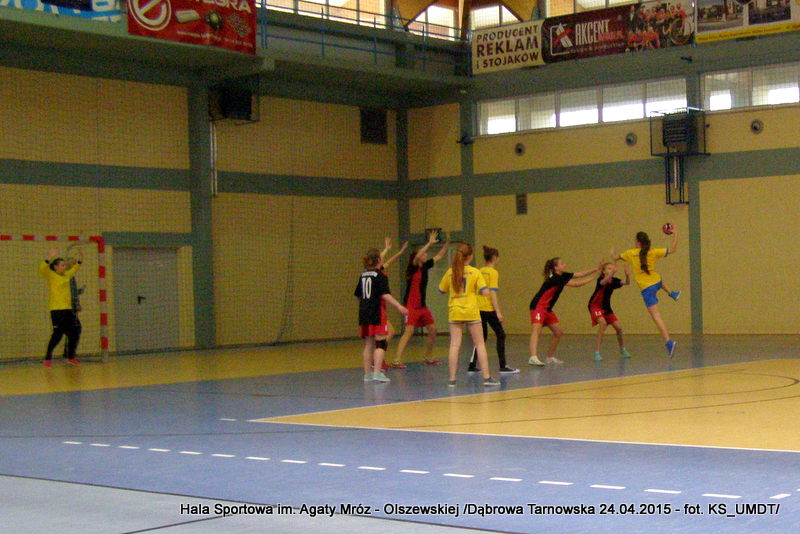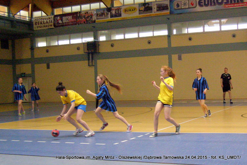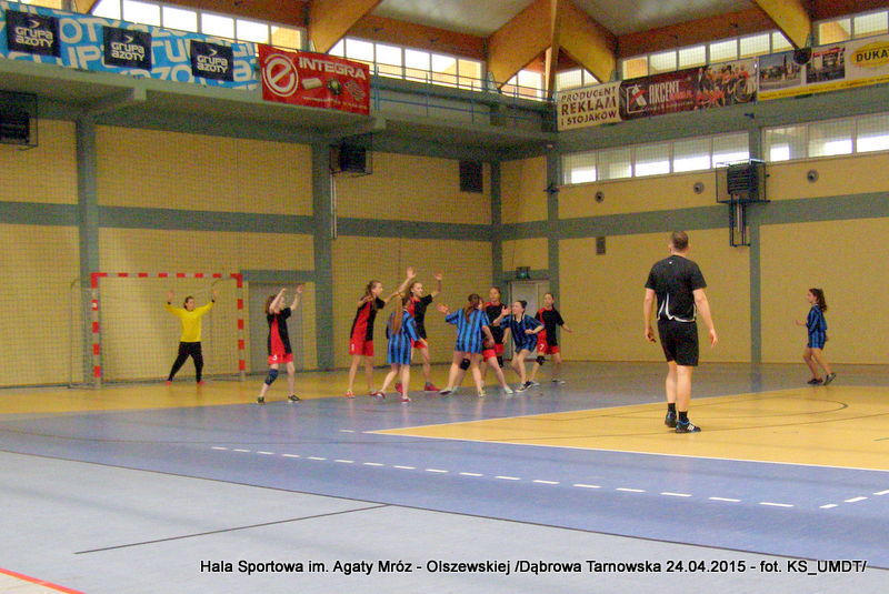 Trwa maraton szczypiorniaka na Hali Sportowej im Agaty Mróz – Olszewskiej w Dąbrowie Tarnowskiej. Po rozegranych w miniony wtorek i czwartek zawodach gminnych dla szkół podstawowych przyszedł czas na etap powiatowy. W piątek 24 kwietnia do rozgrywek w piłkę ręczną dziewcząt ze szkół podstawowych stanęły trzy najlepsze teamy z powiatu. O awans do zawodów rejonowych i tytuł Mistrza Powiatu walczyły drużyny: Szkoły Podstawowej w Smęgorzowie, Szkoły Podstawowej w Gręboszowie oraz Szkoły Podstawowej w Radgoszczy. Mecze rozegrano w systemie każdy z każdym w czasie 2 x 10 min, a nad prawidłowym przebiegiem zmagań czuwał sędzia Pan Paweł Grzyb.