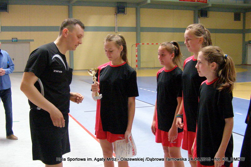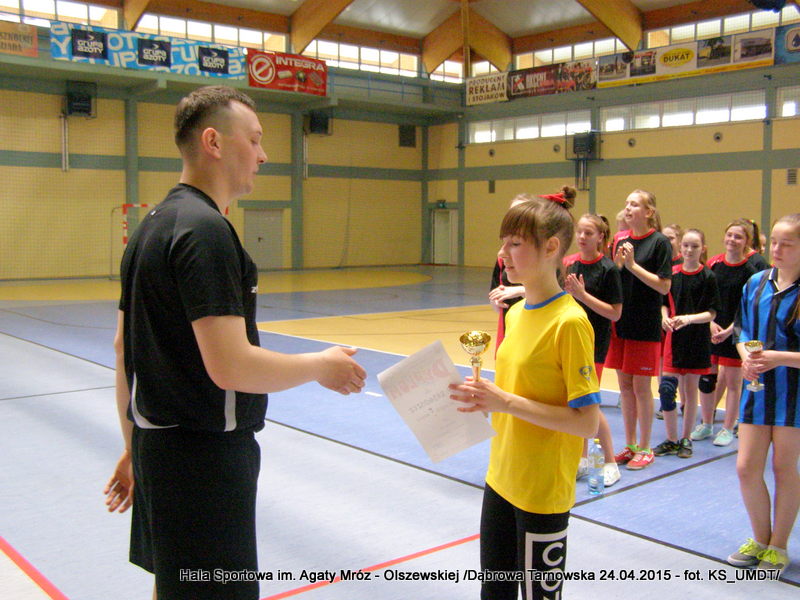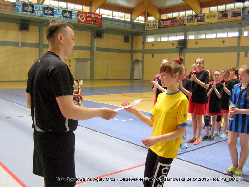 Tradycyjnie, na zakończenie rozgrywek drużyny nagodzone zostały dyplomami oraz pucharami, a zwycięska ekipa dodatkowo wróciła ze złotymi krążkami. W imieniu Starosty Dąbrowskiego, Pana Tadeusza Kwiatkowskiego, nagrody wręczał sędzia zawodów Pan Paweł Grzyb. Gratulujemy wszystkim drużynom wspaniałej postawy sportowej i życzymy dalszych sukcesów.