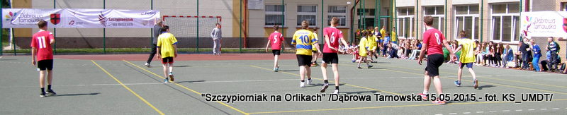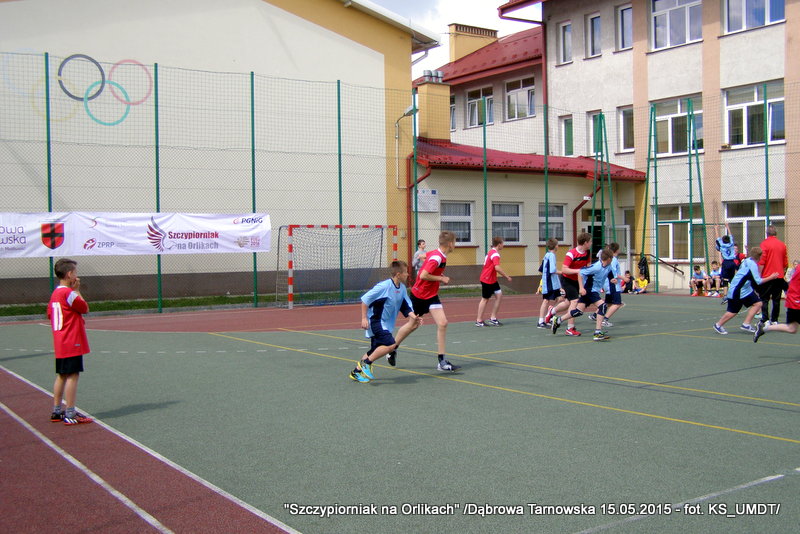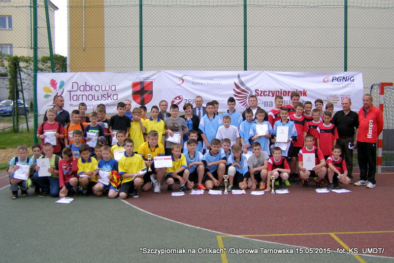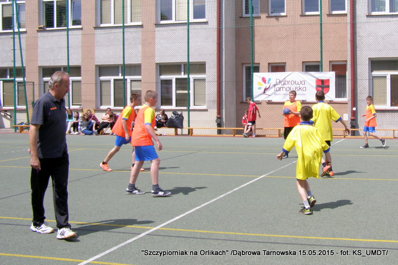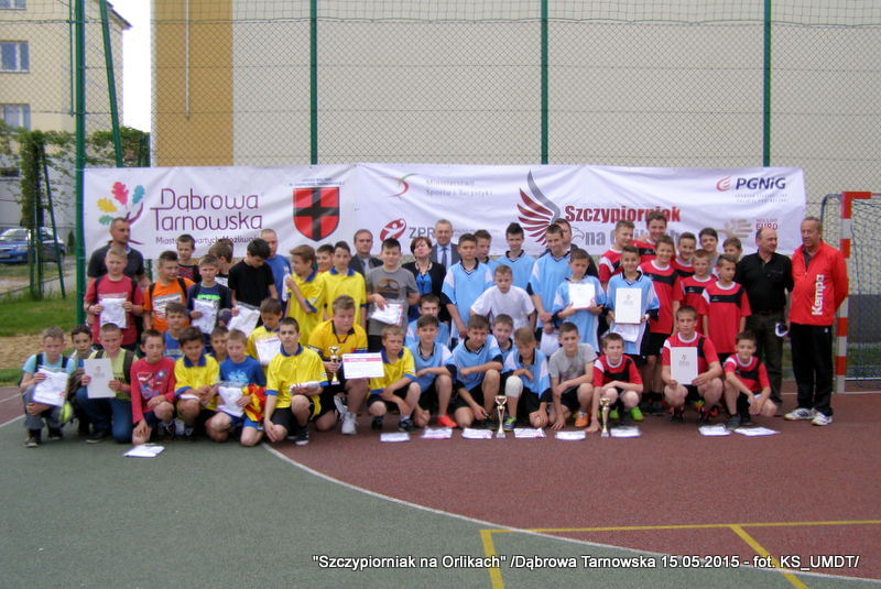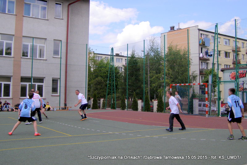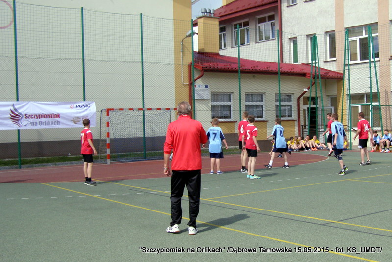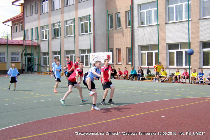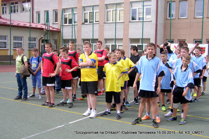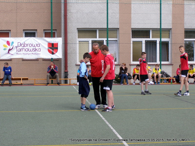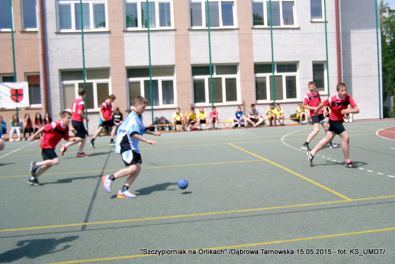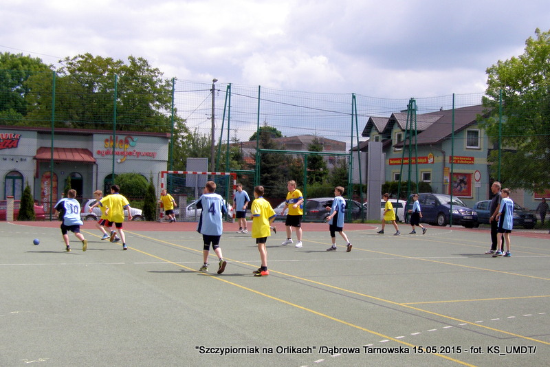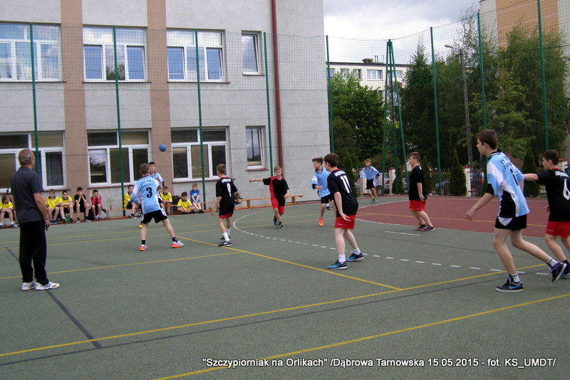 W piątek 15 maja 2015 roku na boisku sportowym przy Szkole Podstawowej Nr 2 w Dąbrowie Tarnowskiej przeprowadzone zostały eliminacje wojewódzkie do turnieju „Szczypiorniak na Orlikach 2015”. Ta sportowa impreza zorganizowana została po raz pierwszy w Dąbrowie Tarnowskiej. Kierownik Referatu Kultury Fizycznej i Sportu UM Witold Reczek serdecznie przywitał przybyłych zawodników oraz opiekunów, a także podziękował dyrekcji Szkoły Podstawowej Nr 2 za udostępnienie boiska poliuretanowego.  Chęć udziału w tym wydarzeniu potwierdziło sześć drużyn: SP Nr 1 Dąbrowa Tarnowska, SP Nr 2 Dąbrowa Tarnowska, SP Smęgorzów, SP Radgoszcz oraz dwie drużyny z Gręboszowa. Ekipy podzielone zostały na dwie grupy w których mecze rozegrane zostały w systemie „każdy z każdym” w czasie gry 2 x 8 minut.