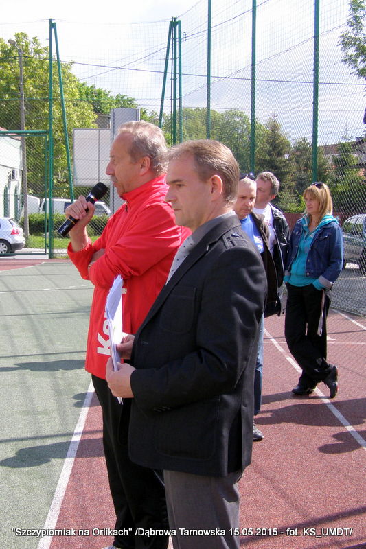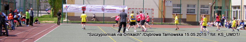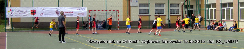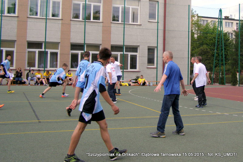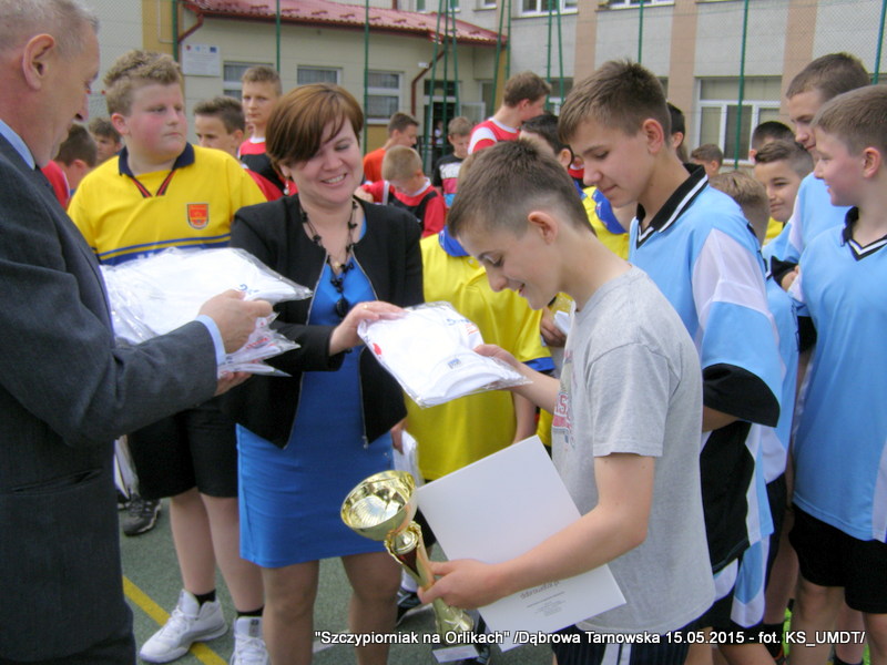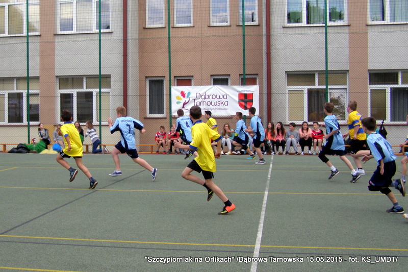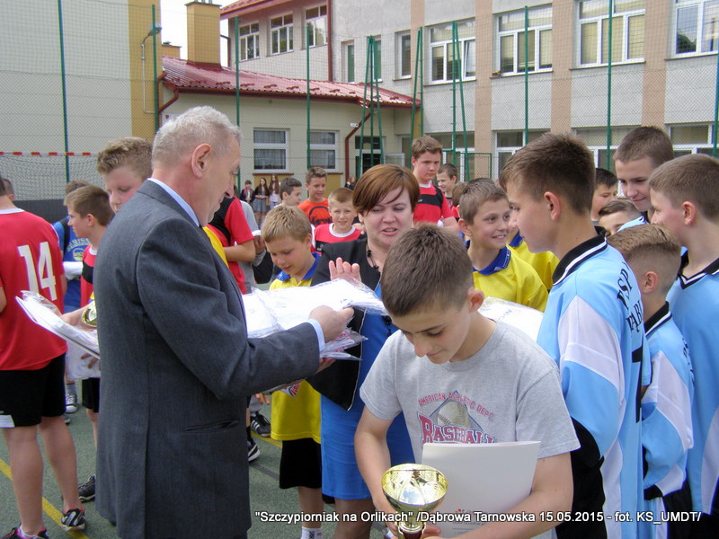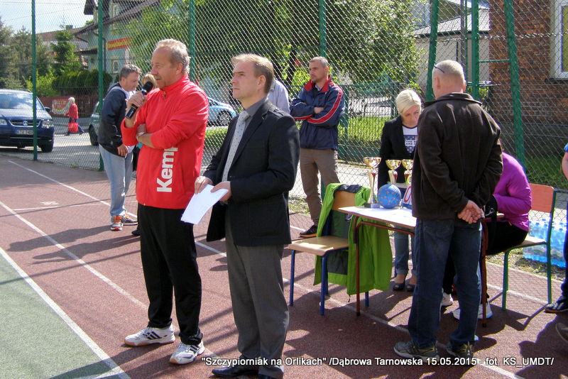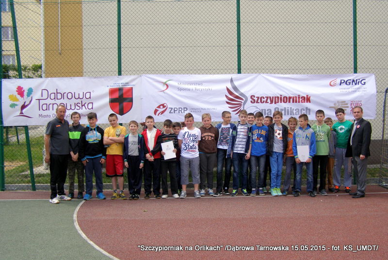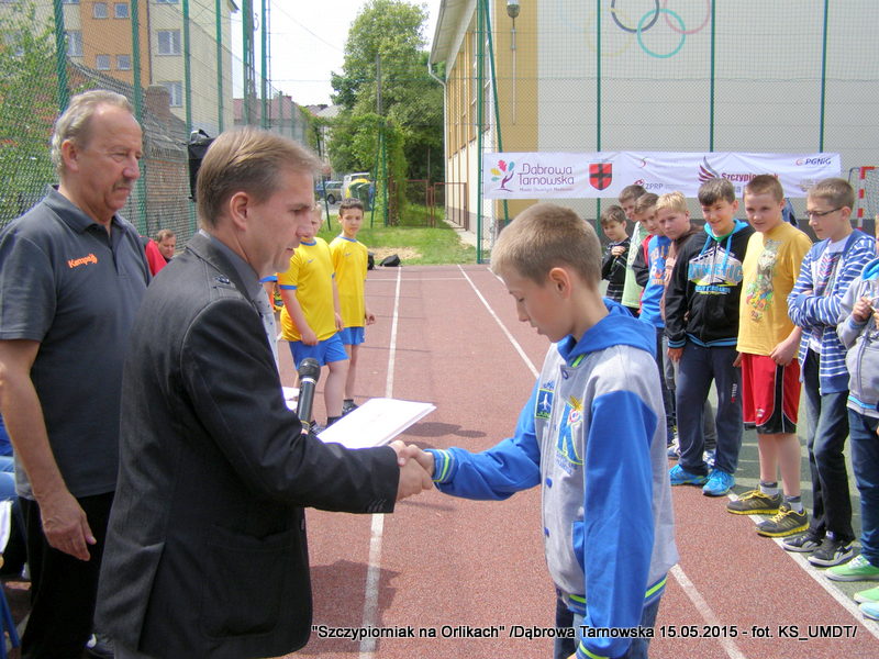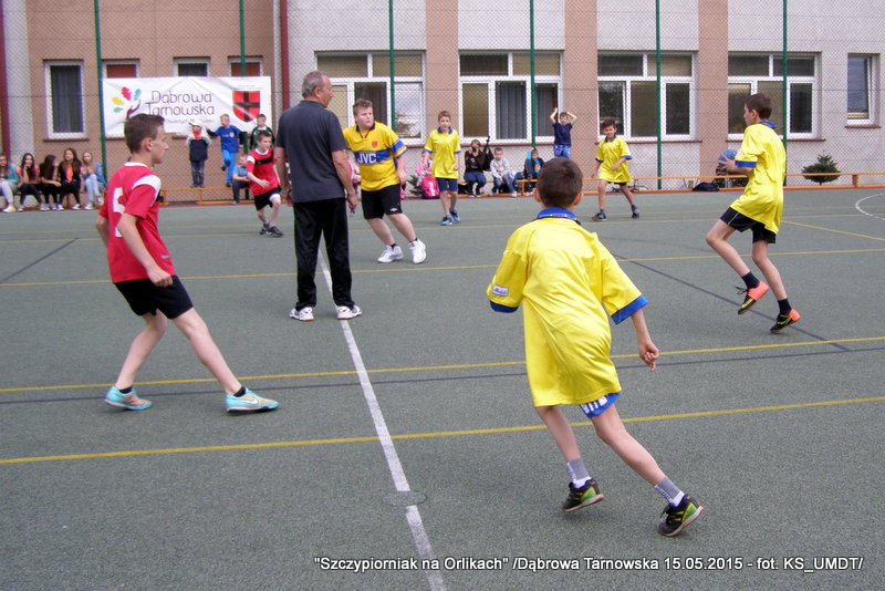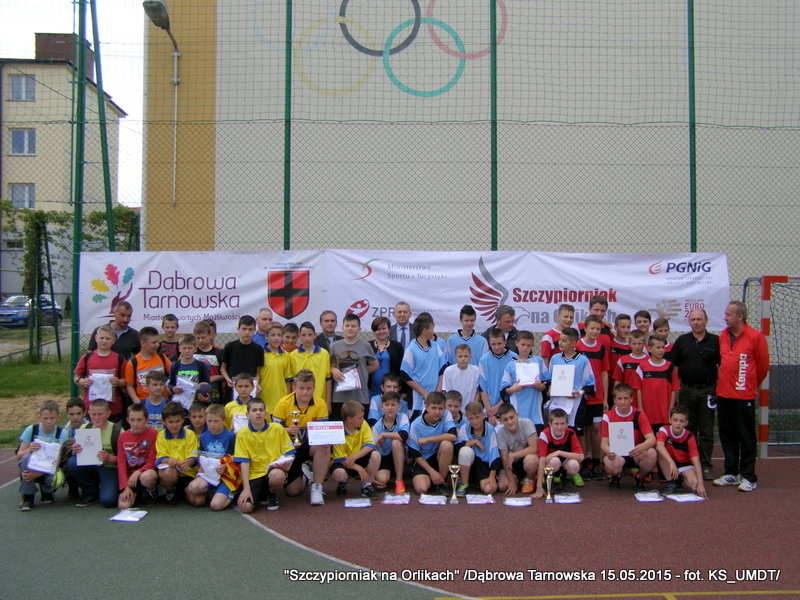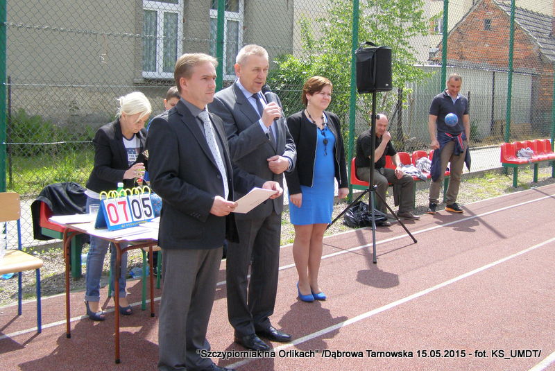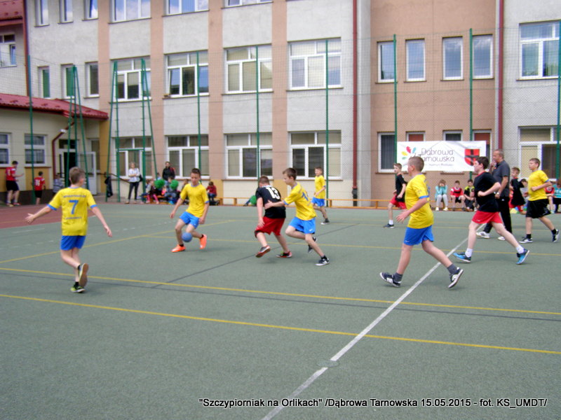 W piątek 15 maja 2015 roku na boisku sportowym przy Szkole Podstawowej Nr 2 w Dąbrowie Tarnowskiej przeprowadzone zostały eliminacje wojewódzkie do turnieju „Szczypiorniak na Orlikach 2015”. Ta sportowa impreza zorganizowana została po raz pierwszy w Dąbrowie Tarnowskiej. Kierownik Referatu Kultury Fizycznej i Sportu UM Witold Reczek serdecznie przywitał przybyłych zawodników oraz opiekunów, a także podziękował dyrekcji Szkoły Podstawowej Nr 2 za udostępnienie boiska poliuretanowego.  Chęć udziału w tym wydarzeniu potwierdziło sześć drużyn: SP Nr 1 Dąbrowa Tarnowska, SP Nr 2 Dąbrowa Tarnowska, SP Smęgorzów, SP Radgoszcz oraz dwie drużyny z Gręboszowa. Ekipy podzielone zostały na dwie grupy w których mecze rozegrane zostały w systemie „każdy z każdym” w czasie gry 2 x 8 minut.