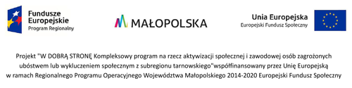 Z myślą o rozwoju mieszkańców województwa małopolskiego Stowarzyszenie PROREW z Kielc realizuje dwa projekty: "W Dobrą Stronę" oraz "Stawiam Na Rozwój", których celem jest zwiększenie zdolności do zatrudnienia i aktywnego uczestnictwa w życiu społeczno-zawodowym osób zamieszkałych powiaty: brzeski, dąbrowski, tarnowski , m. Tarnów, limanowski, myślenicki, nowotarski i suski zagrożonych skumulowanymi problemami społecznymi. Główny cel projektu zakłada zwiększenie zdolności do zatrudnienia i aktywnego uczestnictwa w życiu społeczno-zawodowym min. 45 osób z grupy docelowej 50 sób (28 kobiet i 22 mężczyzn) zagrożonych ubóstwem lub wykluczeniem społecznym w tym w szczególności osób doświadczających wielokrotnego wykluczenia społecznego, korzystających z Programu Operacyjnego Pomocy Żywnościowej, osób niepełnosprawnych o znacznym lub umiarkowanym stopniu niepełnosprawności, os. z niepełnosprawnościami sprzężonymi, os. z niepełnosprawnością intelektualną lub os. z zaburzeniami psychicznymi zamieszkujących w woj. małopolskim w powiatach: brzeskim, dąbrowskim, tarnowskim , m. Tarnów, limanowskim, myślenickim, nowotarskim i suskim.