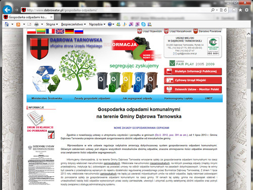 Urząd Miejski w Dąbrowie Tarnowskiej przypomina o obowiązku dokonywania wpłat za odbiór odpadów komunalnych. Termin wpłaty kolejnej raty upływa w dniu 15 stycznia 2015 roku i obejmuje miesiące październik, listopad i grudzień 2014 uiszczana jest na podstawie samoobliczania, co oznacza iż Urząd Miejski nie będzie wystawiał wezwań, decyzji ani faktur dla właścicieli nieruchomości zobligowanych do ponoszenia przedmiotowej opłaty. Informujemy jednocześnie, że od 2015 r. obowiązują nowe harmonogramy wywozu odpadów. Można się z nimi zapoznać na stronie https://old.dabrowatar.pl/odpady-harmonogramy/.