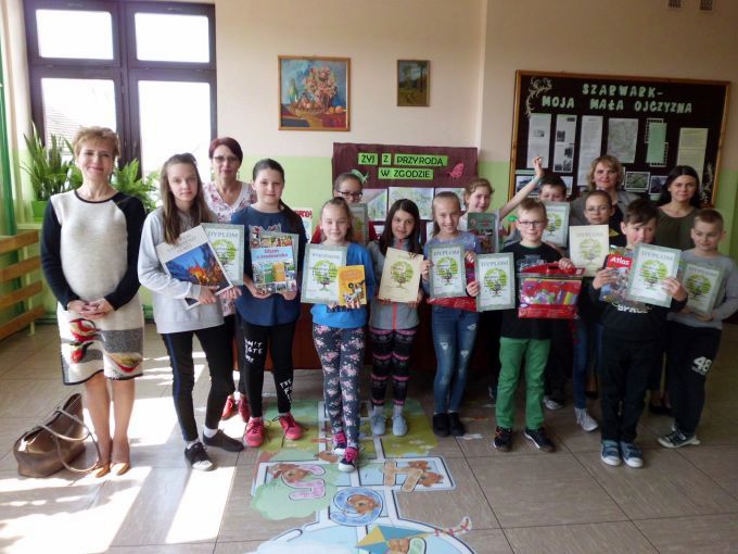 Uroczyste ogłoszenie wyników uświetnił występ o tematyce ekologicznej „W harmonii z przyrodą” w wykonaniu trzecioklasistów przygotowany pod kierunkiem Alicji Lulek. Nagrody książkowe i dyplomy laureatom wręczyła dyrektor PSP w szarwarku Aneta Orłowska składając wszystkim słowa podziękowania i gratulacje.