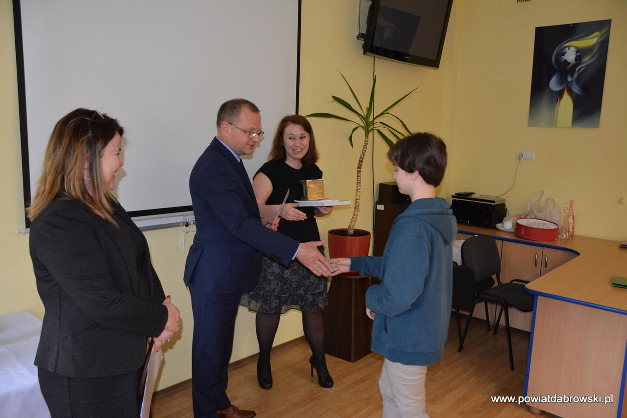 Najwyższe wyniki oraz tytuł laureata uzyskali: I miejsce – Natalia Davolio – Szkoła Podstawowa w Szczucinie II miejsce ex aequo – Lucas Radłowski – Szkoła Podstawowa w Szczucinie oraz Emilia Soja – Publiczna Szkoła Podstawowa nr 2 w Dąbrowie Tarnowskiej III miejsce – Martyna Zawada – Szkoła Podstawowa nr 1 w Dąbrowie Tarnowskiej IV miejsce – Maksymilian Szlonzak – Szkoła Podstawowa w Mędrzechowie Zarząd Powiatu Dąbrowskiego ufundował nagrody w konkursie. Patronat honorowy nad konkursem objął Starosta Dąbrowski Lesław Wieczorek. Informacja i zdjęcia: Starostwo Powiatowe w Dąbrowie Tarnowskiej
