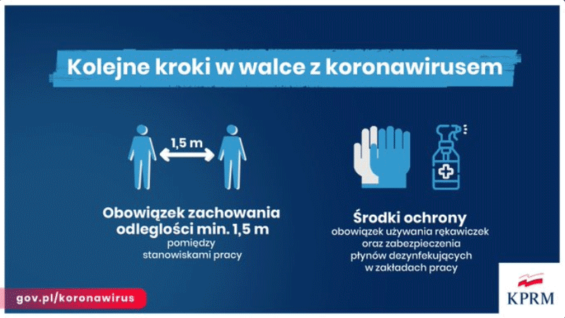 Stoimy przed trudnym wyborem, albo sytuacja będzie dramatycznie gorsza w najbliższych miesiącach, albo będzie gorsza, ale będzie możliwa do zarządzenia. (…) W wyniku naszych analiz najlepszych praktyk z całego świata podjęliśmy kolejne decyzje dot. następnych obostrzeń —poinformowali na konferencji prasowej Premier RP Mateusz Morawiecki i Minister Zdrowia Łukasz Szumowski. Najważniejsza zasada, to zasada dystansu społecznego, to 2 metry od drugiej osoby, z wyjątkiem gdy mama lub tato opiekuje się dzieckiem na spacerze, czy opiekujemy się osobą z niepełnosprawnościami. Za dużo jest spacerów, za dużo osób przebywało na plażach i to są miejsca, skąd pochodzą nowe zakażenia. Jeżeli chcemy, aby życie wracało do normalności, aby to odbicie było w miarę płynne, to musimy wprowadzić dodatkowe ograniczenia. Najważniejsze to m. in. : ograniczenie wychodzenie z domu dla osób nieletnich, ograniczenie w dostępie do parków, bulwarów i plaż, nowe restrykcje dot. sklepów, odwołanie zabiegów rehabilitacyjnych, odwołanie usług w gabinetach kosmetycznych, fryzjerskich itp., specjalne godziny w sklepach dla seniorów, ograniczenia dot. hoteli oraz zmiany w kwarantannie.