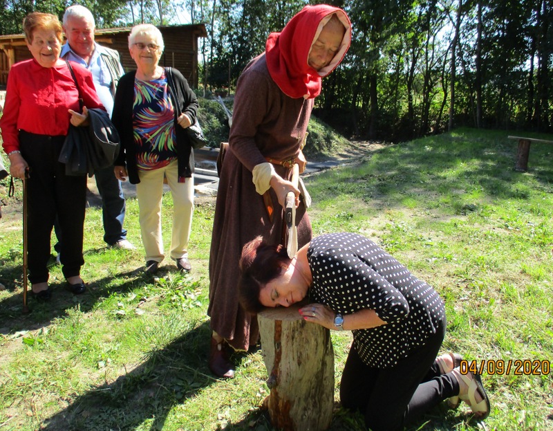 Na zlecenie Gminnego Ośrodka Pomocy Społecznej w Radgoszczy, Bractwo Rycerskie „Poczet Bagiennych z Wieżycy” przygotowało w swej siedzibie we wsi Oleśnica, interaktywne spotkanie z historią dla Klubu Seniora ze Smykowa. W ciągu 2 godzin seniorzy poznali dzieje właścicieli Dąbrowy i ziem okolicznych w wiekach średnich oraz mieli okazję przeistoczyć się w postacie z epoki… a nawet zostać ofiarą kata. Do zabawy udało się wciągnąć także opiekunki grupy. Na zakończenie uczestnicy otrzymali pamiątkowe dyplomy wypisane gotycką czcionką i opatrzone herbami obu rodów władających grodem. Całość odbywała się w plenerze na przedpolu turniejowym u stóp Wieżycy - by zminimalizować ryzyko zakażenia koronawirusem. Chwalebnym jest, że mimo kryzysowej sytuacji są osoby i instytucje, którym zależy na krzewieniu kultury i pielęgnowaniu historii regionu.