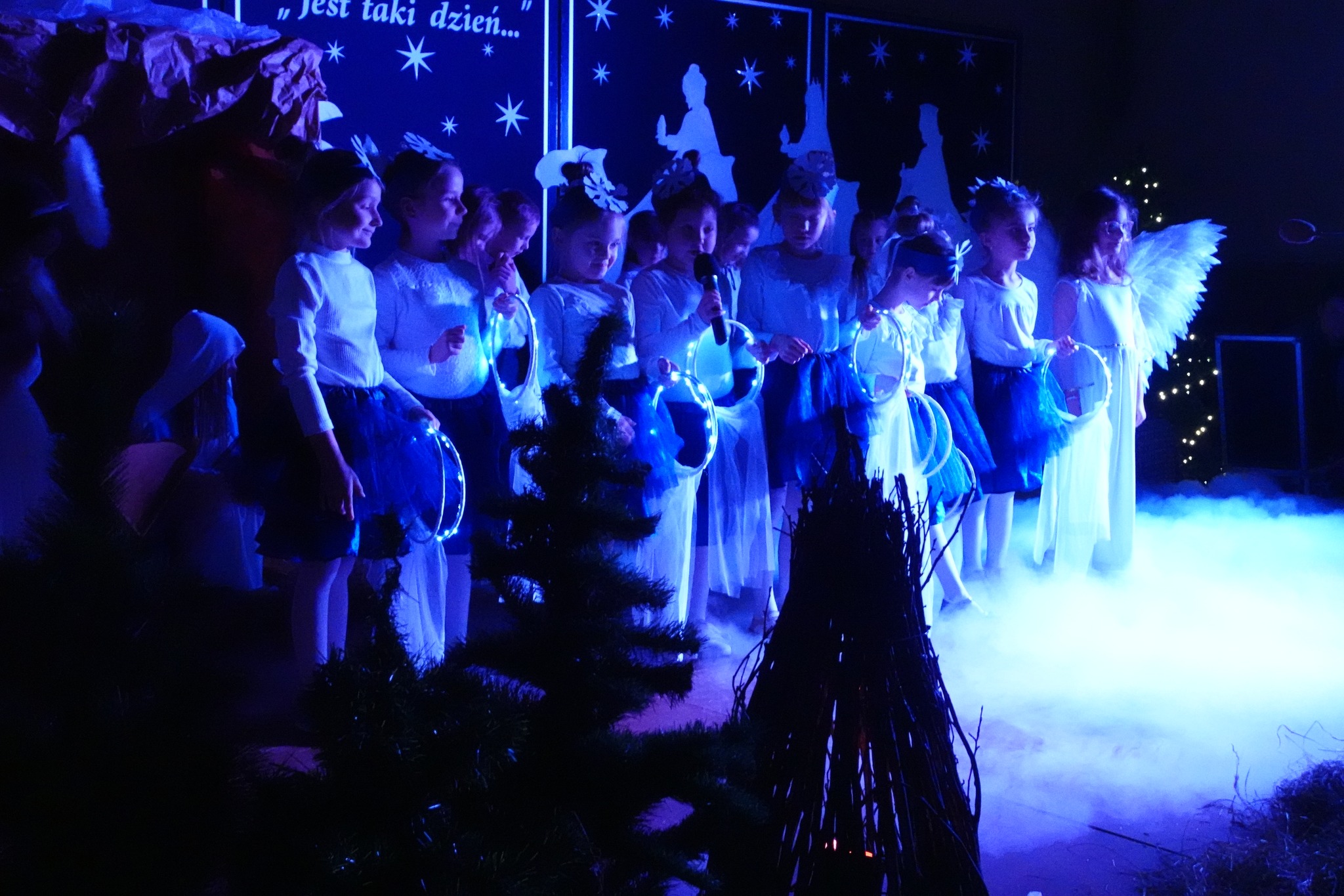 Najmłodsi uczniowie przedstawili inscenizację bożonarodzeniową przygotowaną przez wychowawczynie: Teresę Gizę, Renatę Klimek i Justynę Wajdę. Występ najmłodszych uczniów był ubogacony pięknym śpiewem oraz widowiskowym tańcem. Nad oprawą muzyczną czuwał p. Kamil Banaś. W czasie wieczornicy bożonarodzeniowe pastorałki zaśpiewały także uczennice klas starszych.