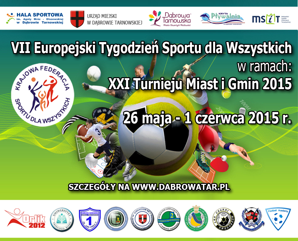 Prezentujemy pełną lista imprez sportowych odbywających się w ramach „VII Europejskiego Tygodnia Sportu dla Wszystkich oraz XXI Turnieju Miast i Gmin 2015” dokumenty pdf Startujemy z XXI Europejskim Tygodniem Sportu dla Wszystkich