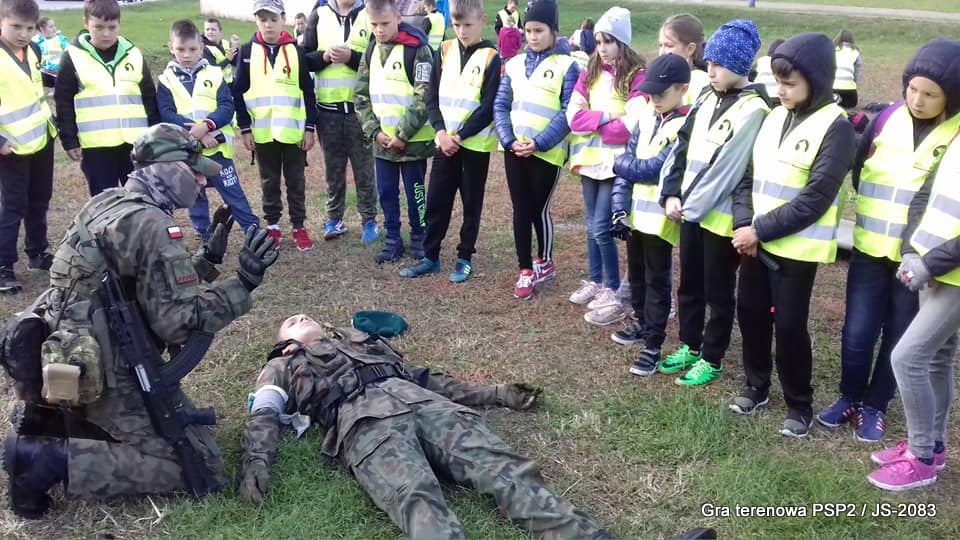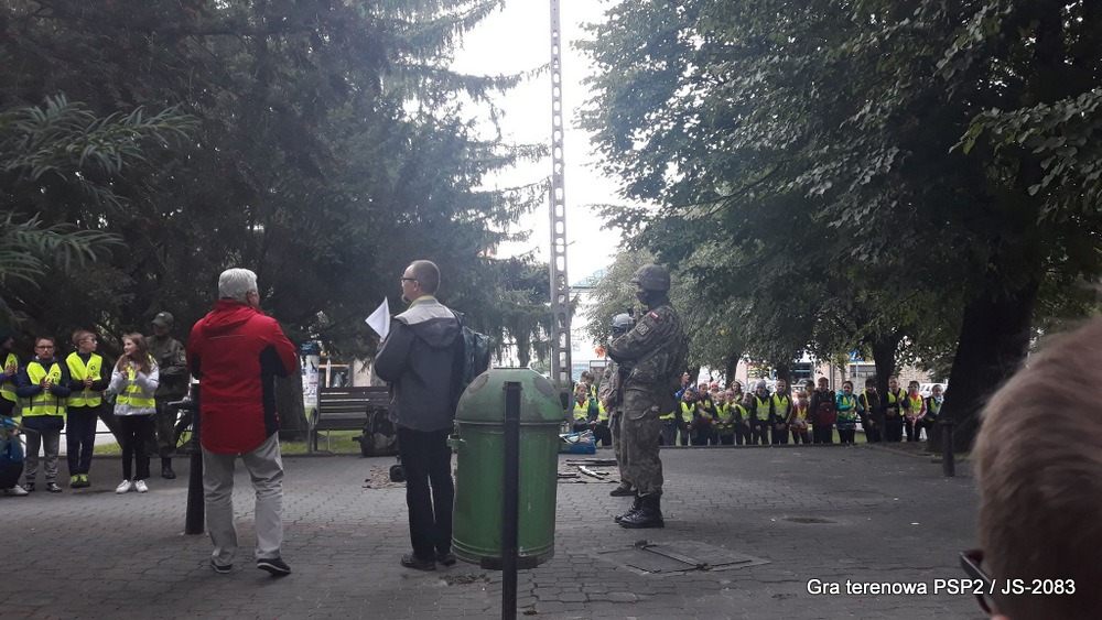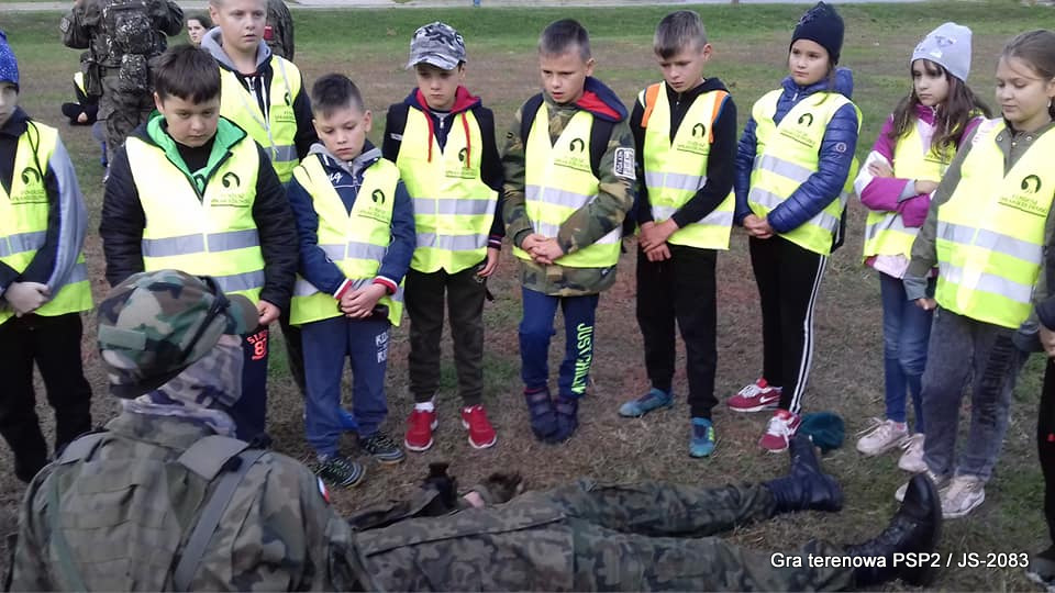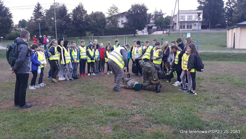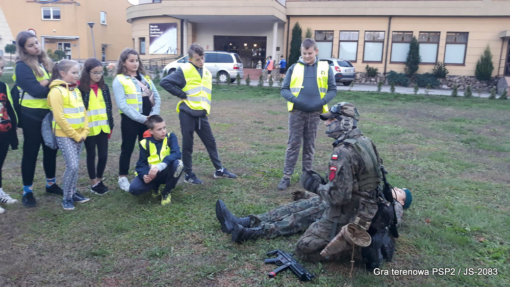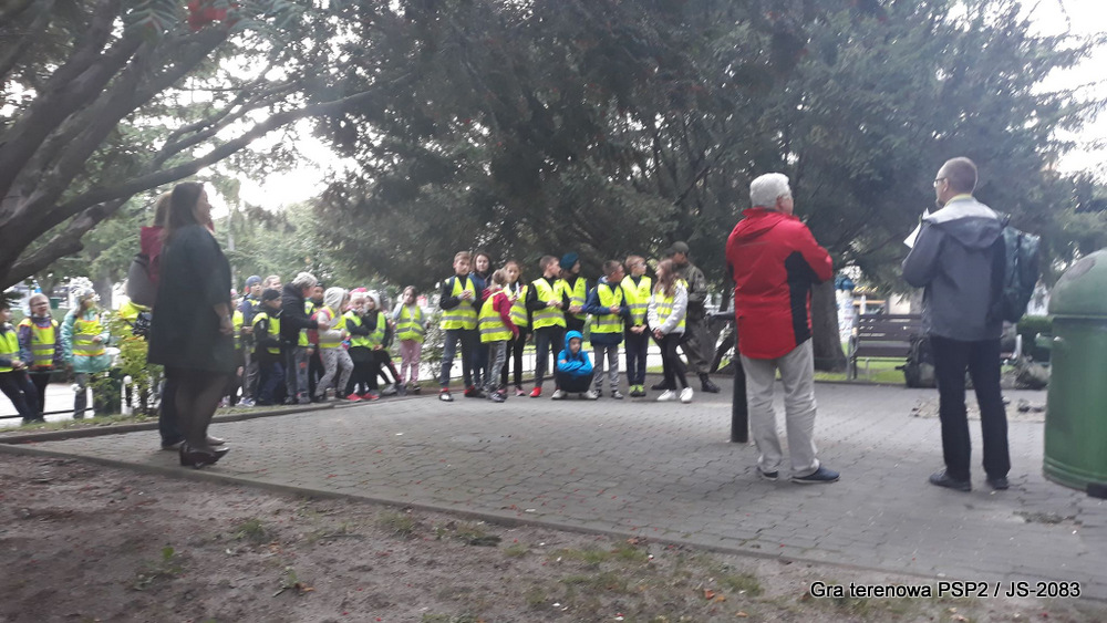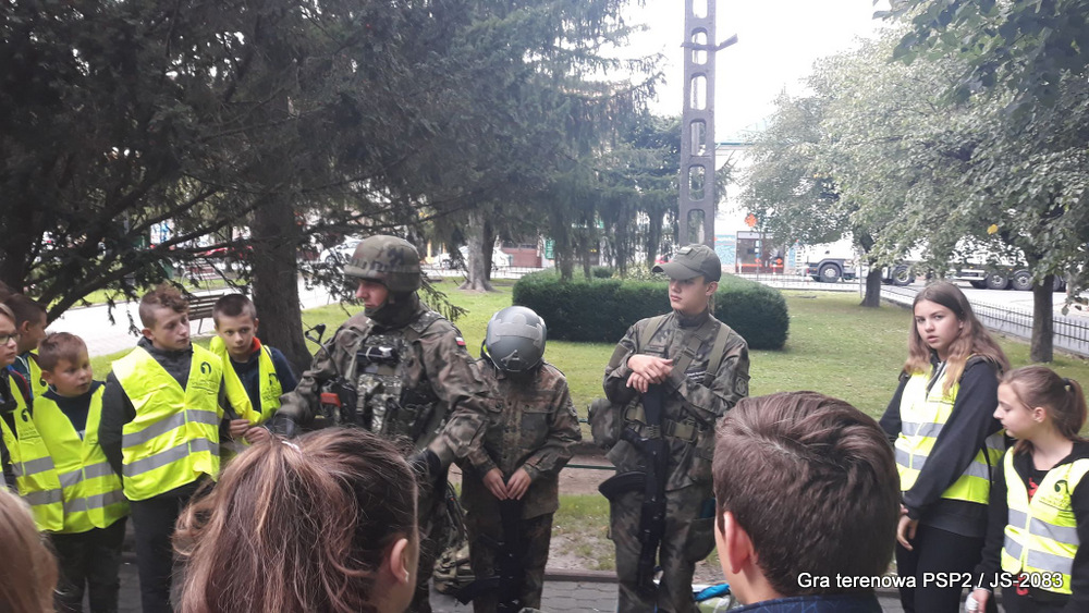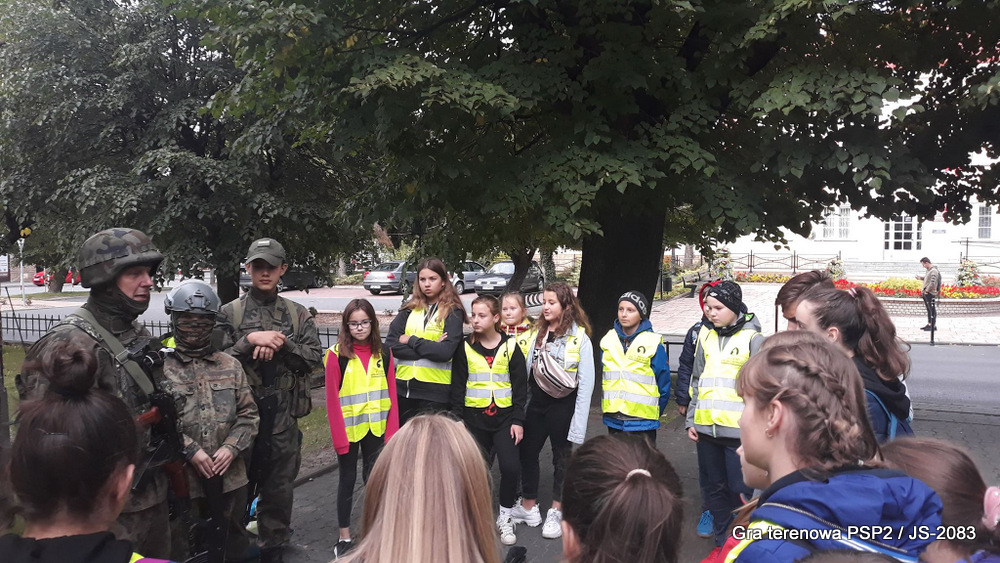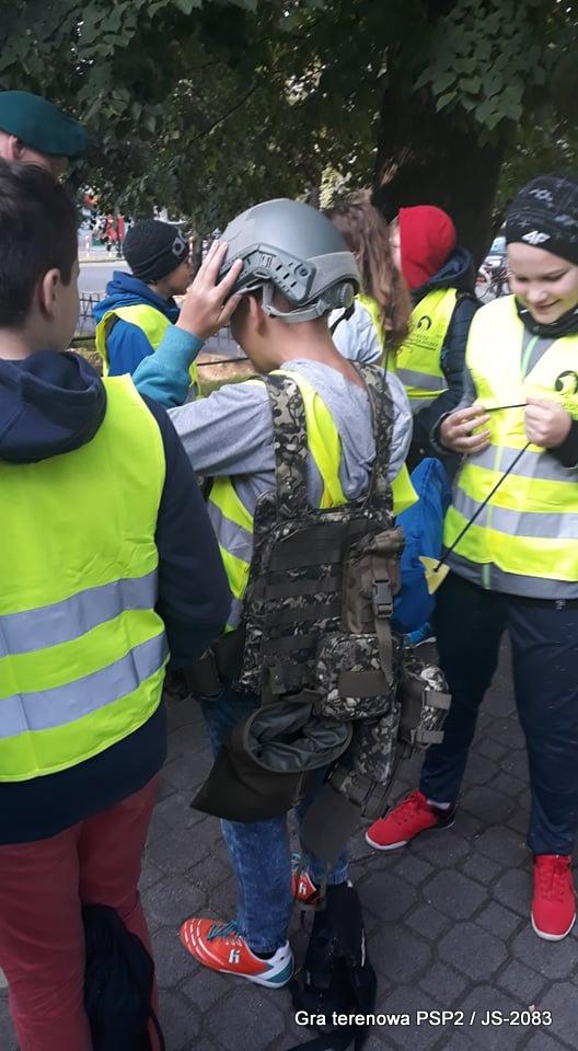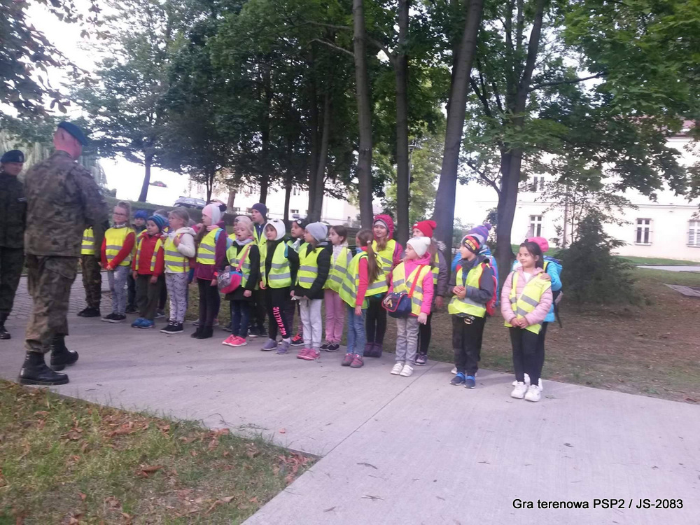 W piątek dwudziestego września odbyła się długo wyczekiwana przez wiele dzieci gra miejska przygotowana przez dąbrowskich strzelców czyli Jednostkę Strzelecką 2083 im. gen. Mariana Kukiela. O siedemnastej ponad stu pięćdziesięciu uczniów ze Szkoły Podstawowej nr 2 razem z opiekunami stawiło się w trzech kolumnach na zielonych miejskich plantach przy historycznych pompach na wodę. Tam czekali już na pierwszym zaplanowanym na rozpoczęcie stanowisku, które stanowiło coś w rodzaju sztabu dowodzenia, strzelcy pod dowództwem p. Mariusza Grzebieniowskiego. Wszystkimi oddziałami złożonymi z uczniów dowodził Dyrektor Szkoły, p. Anna Fido. Kiedy wszyscy stali już w równym ordynku, Burmistrz Dąbrowy Tarnowskiej p. Krzysztof Kaczmarski oficjalnie zarządził rozpoczęcie zabawy i każdy rzut podzielony na drużyny wg natowskich kryptonimów udał się na jedno z miejsc przeznaczenia, czyli lokacji, gdzie uczniowie mogli poznawać ciekawostki związane z działalnością strzelecką lub zdobywać wiedzę poprzez wykonywanie szeregu zadań. Grupy w sposób zsynchronizowany odwiedzały tak wszystkie lokacje.