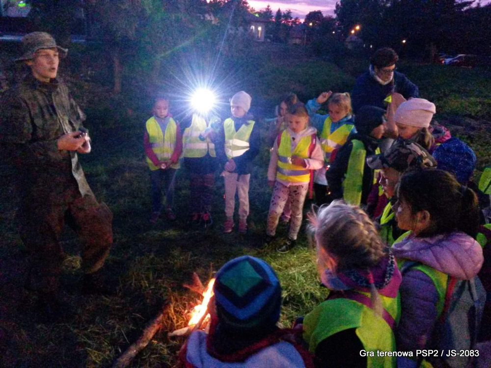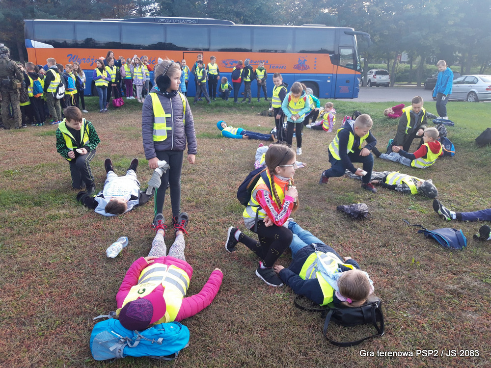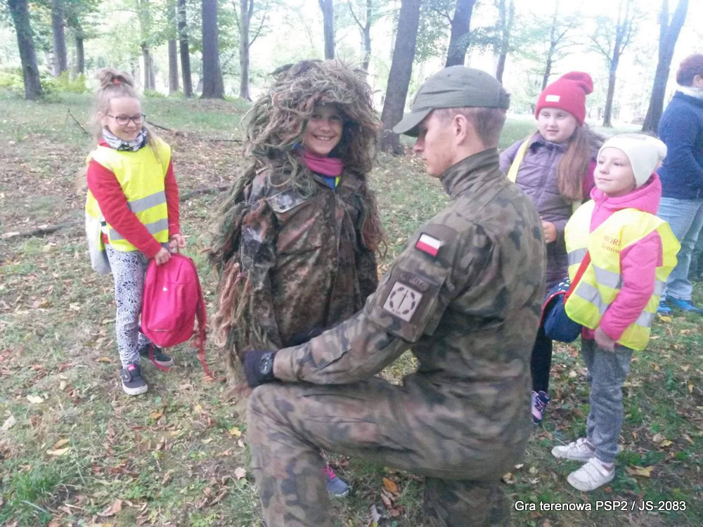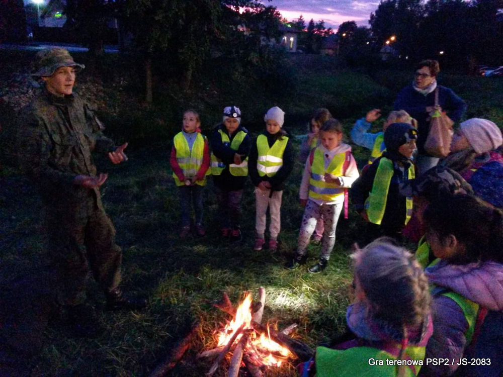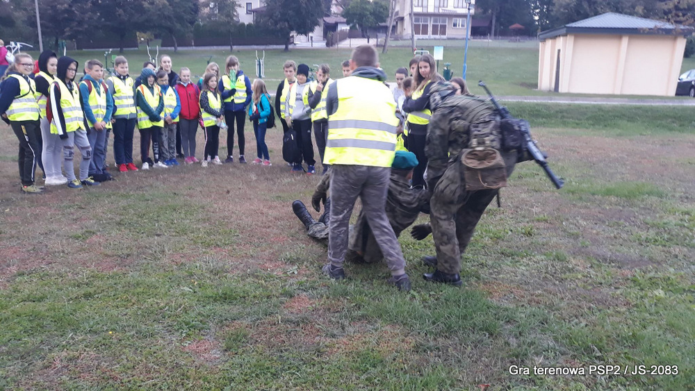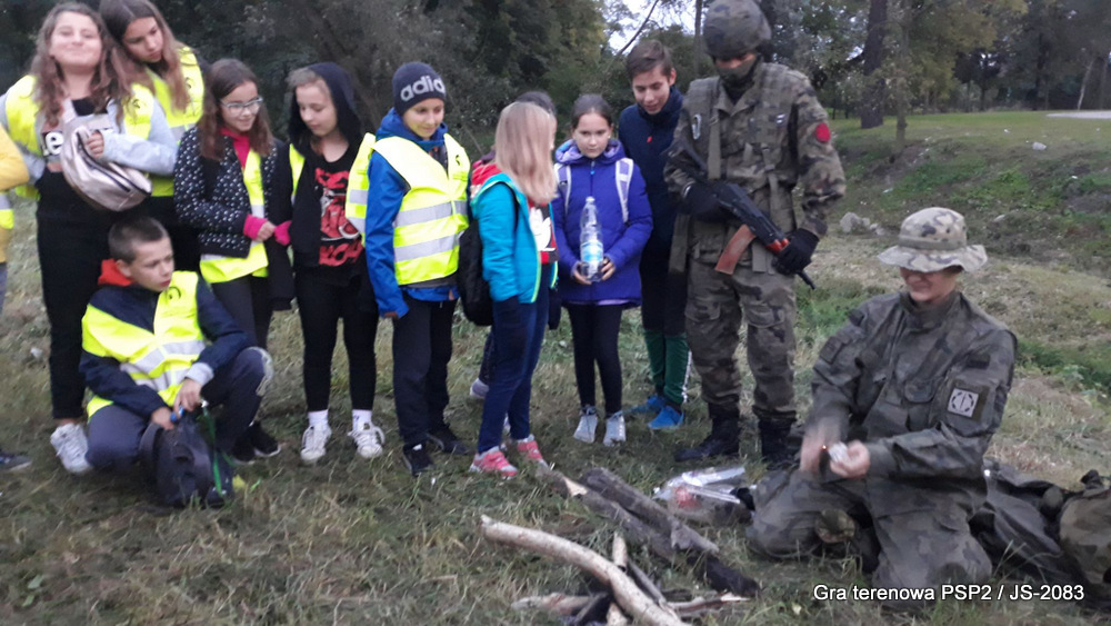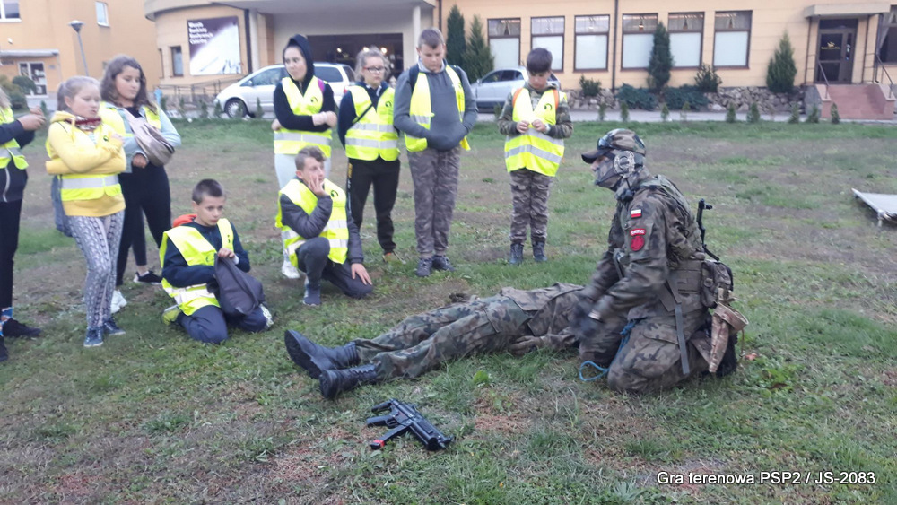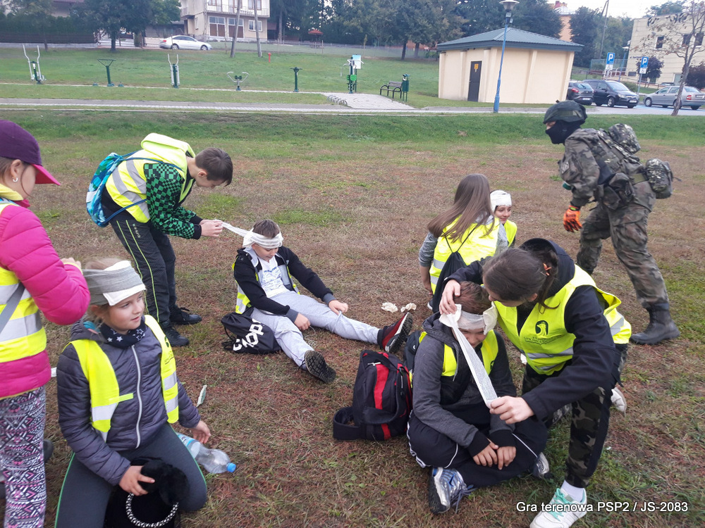 W piątek dwudziestego września odbyła się długo wyczekiwana przez wiele dzieci gra miejska przygotowana przez dąbrowskich strzelców czyli Jednostkę Strzelecką 2083 im. gen. Mariana Kukiela. O siedemnastej ponad stu pięćdziesięciu uczniów ze Szkoły Podstawowej nr 2 razem z opiekunami stawiło się w trzech kolumnach na zielonych miejskich plantach przy historycznych pompach na wodę. Tam czekali już na pierwszym zaplanowanym na rozpoczęcie stanowisku, które stanowiło coś w rodzaju sztabu dowodzenia, strzelcy pod dowództwem p. Mariusza Grzebieniowskiego. Wszystkimi oddziałami złożonymi z uczniów dowodził Dyrektor Szkoły, p. Anna Fido. Kiedy wszyscy stali już w równym ordynku, Burmistrz Dąbrowy Tarnowskiej p. Krzysztof Kaczmarski oficjalnie zarządził rozpoczęcie zabawy i każdy rzut podzielony na drużyny wg natowskich kryptonimów udał się na jedno z miejsc przeznaczenia, czyli lokacji, gdzie uczniowie mogli poznawać ciekawostki związane z działalnością strzelecką lub zdobywać wiedzę poprzez wykonywanie szeregu zadań. Grupy w sposób zsynchronizowany odwiedzały tak wszystkie lokacje.