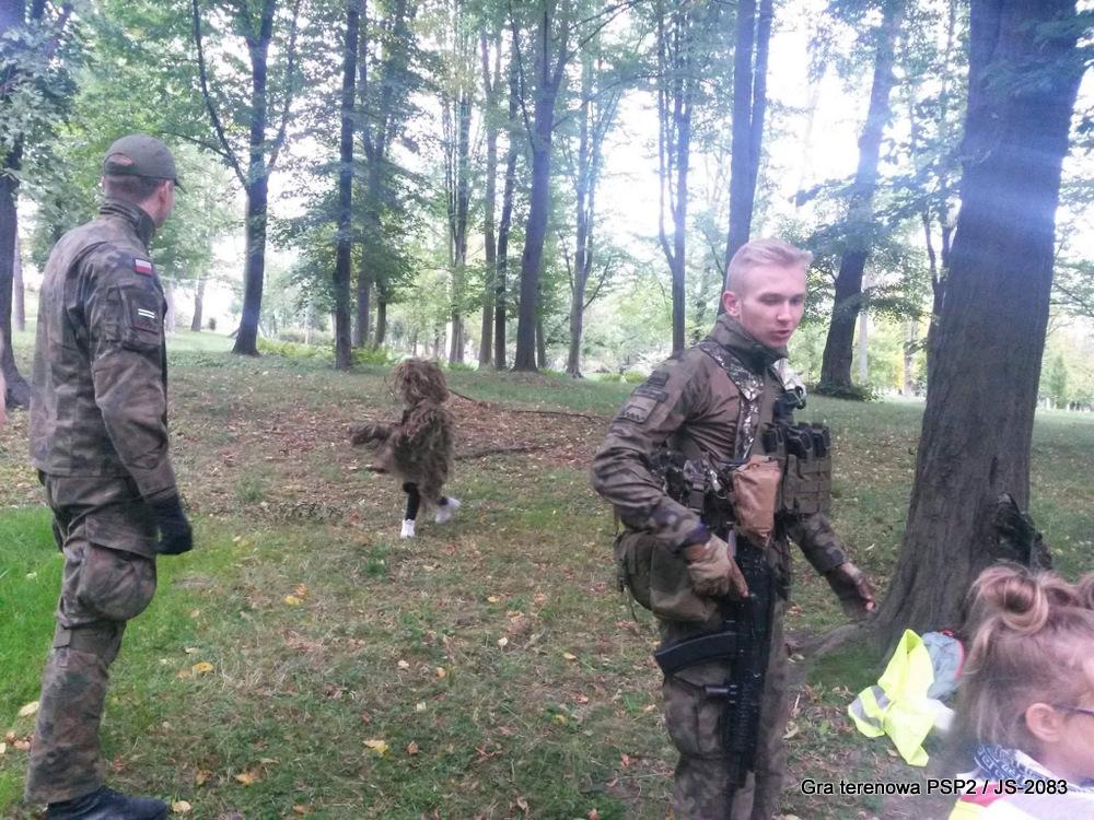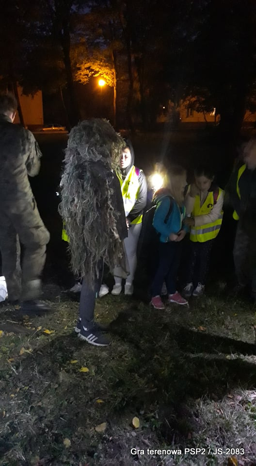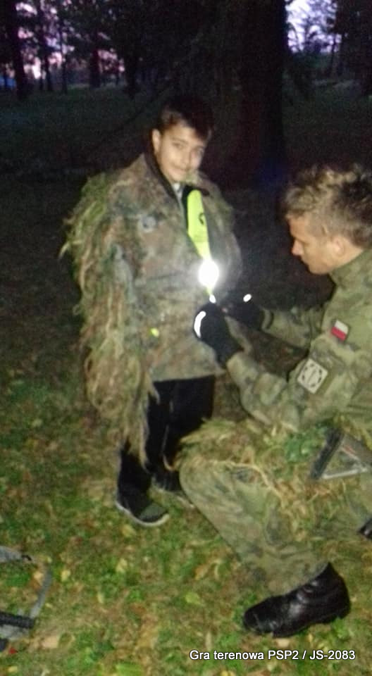 W parku miejskim wiele grup już po zmroku przekonało się, że umiejętności maskowania są bardzo ważnym elementem współczesnej wojskowości. Poznaliśmy podstawy wiedzy z tego zakresu i mogliśmy się przekonać, że dobry żołnierz może się tak zamaskować, że można dosłownie koło niego przejść i go nie zauważyć! Byliśmy świadkami zabawnych sytuacji, kiedy dzieci wpadały na ukrytych strzelców i niemal krzyczały ze zdziwienia.