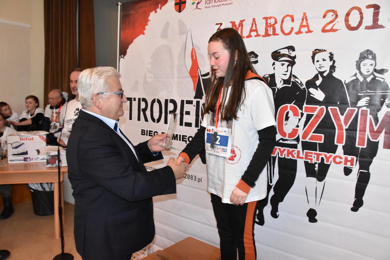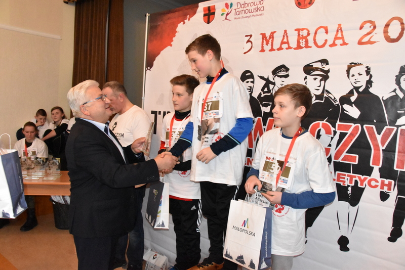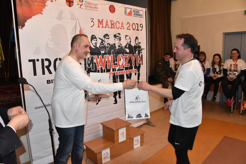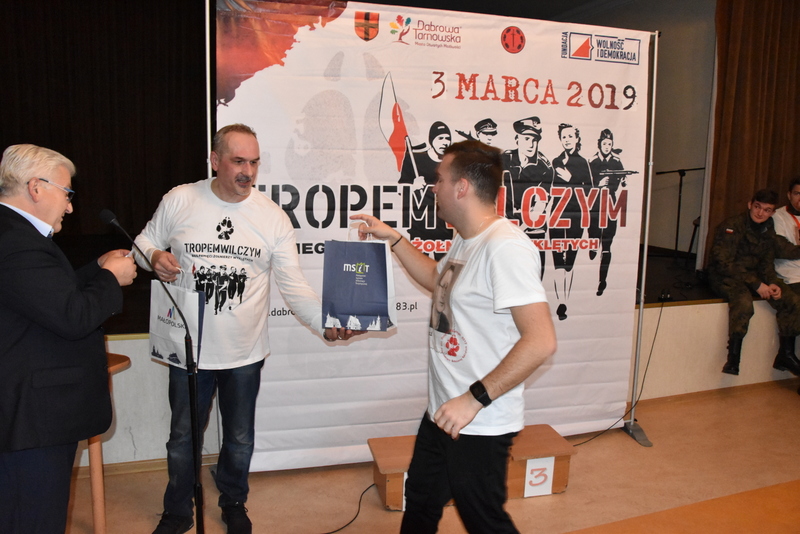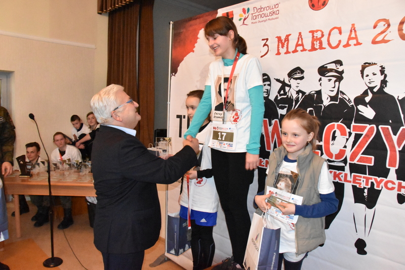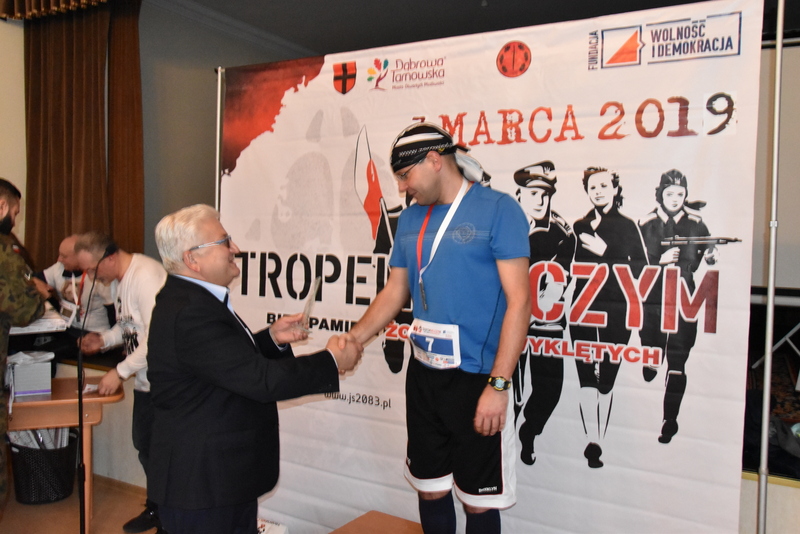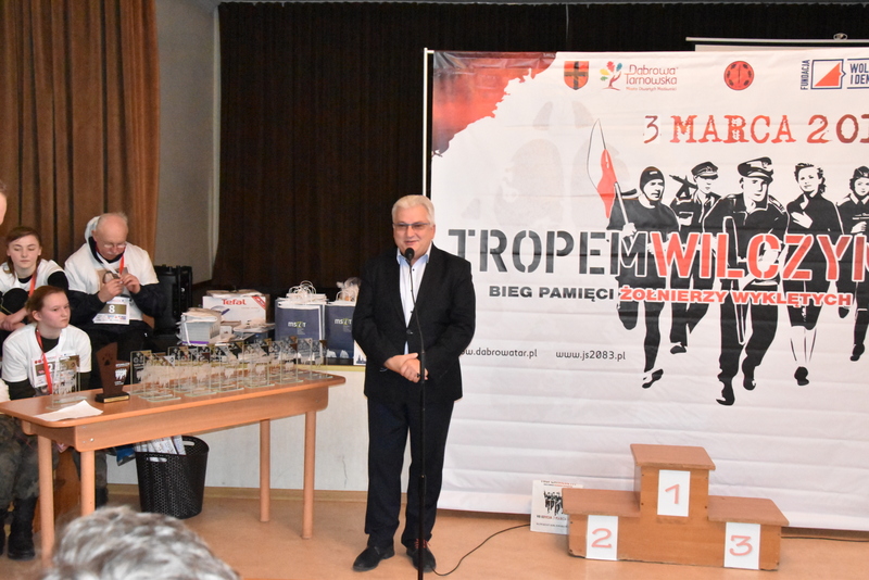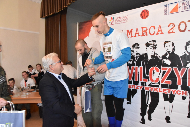 W niedzielne popołudnie 3 marca br. liczne grono biegaczy i sympatyków biegania uczciło pamięć żołnierzy wyklętych podczas biegu „Tropem Wilczym”. Duża frekwencja uczestników biegu sięgająca 100 osób potwierdziła jego atrakcyjność dla mieszkańców i gości. Ten największy w Polsce bieg pamięci jest organizowany w wielu miastach, a w Dąbrowie Tarnowskiej odbywał się pod patronatem Burmistrza Krzysztofa Kaczmarskiego. Dąbrowski Bieg Tropem Wilczym, został tradycyjnie zorganizowany przez Referat Promocji Urzędu Miejskiego wraz z Jednostka Strzelecką JS-2083. Patronat honorowy biegu sprawował Burmistrz Dąbrowy Tarnowskiej - Krzysztof Kaczmarski. Był trzecią częścią tegorocznych obchodów Narodowego Dnia Pamięci Żołnierzy Wyklętych. Pierwszą była uroczysta Msza Św. w intencji poległych i pomordowanych Żołnierzy Wojska Polskiego, którzy podjęli dramatyczną decyzję o kontynuowaniu zbrojnej walki o wolną Polskę połączona z poświęceniem nowego sztandaru dąbrowskiej Jednostki Strzeleckiej JS-2083 im. Gen. Mariana Kukiela. Drugą częścią była uroczystość patriotyczna przed Pomnikiem Poległych w Parku Miejskim im. 100-lecia Odzyskania Niepodległości, podczas którego, Komendant Związku Strzeleckiego im. J. Piłsudskiego insp. Marek Matuła oficjalnie przekazał dąbrowskim strzelcom sztandar jednostki, zaś Strzelcy złożyli przysięgę na sztandar.