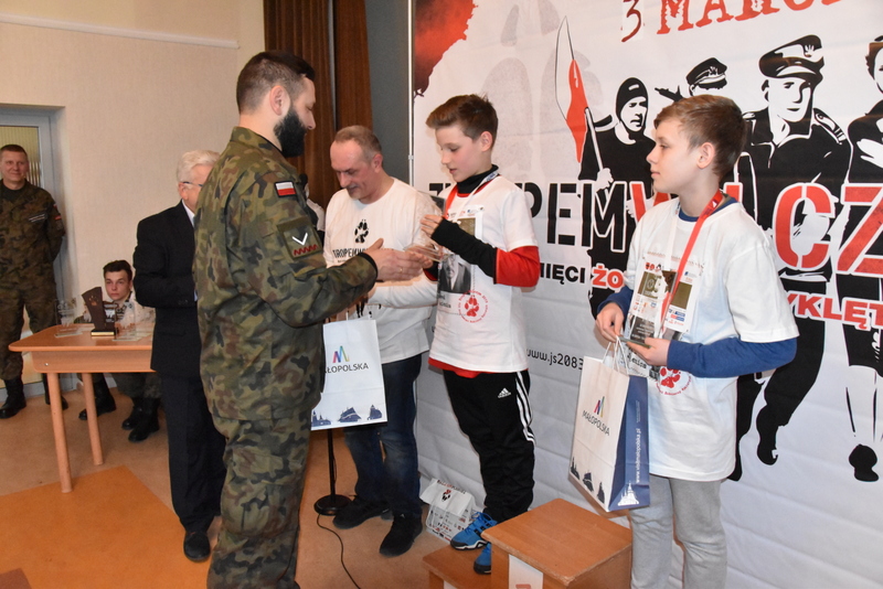 Nagrody, tj. statuetki, upominki wręczali Burmistrz Dąbrowy Tarnowskiej Krzysztof Kaczmarski i Kierownik Promocji Urzędu Miejskiego Krzysztof Orwat oraz Dowódca JS-2083 chor. Tomasz Żyguła.