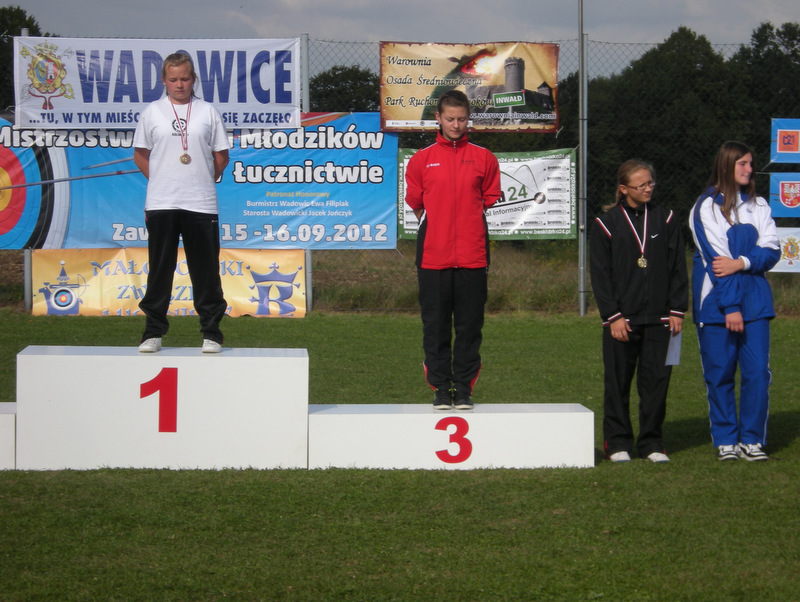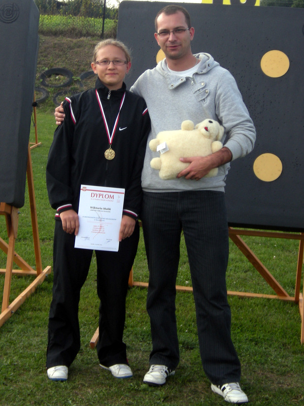 W dniach 15-16 września br. rozegrano ostanie już w tym roku zawody rangi mistrzowskiej. Po startach seniorów w Rzeszowie, tym razem w Mistrzostwach Polski rywalizowali Młodzicy. Zawody odbyły się w miejscowości Zawadka koło Wadowic. Wystartowało ponad 240 zawodników polskiej elity łucznictwa. Dąbrowską ziemie reprezentowała piątka zawodników. Najlepiej zaprezentowała się nasza dwójka brązowych medalistów z Halowych Mistrzostw Polski Młodzików: Wiktoria Malik i Grzegorz Warias. Wiktoria zawody zaczęła ostrożnie. Po pierwszej odległości (40m) plasowała się w dziesiątce najlepszych zawodników; ale na dystansie 20 m była bezkonkurencyjna. Wiktoria wywalczyła złoty medal na tym dystansie osiągając wynik 356 punktów na 360 możliwych!!! (rekord życiowy).