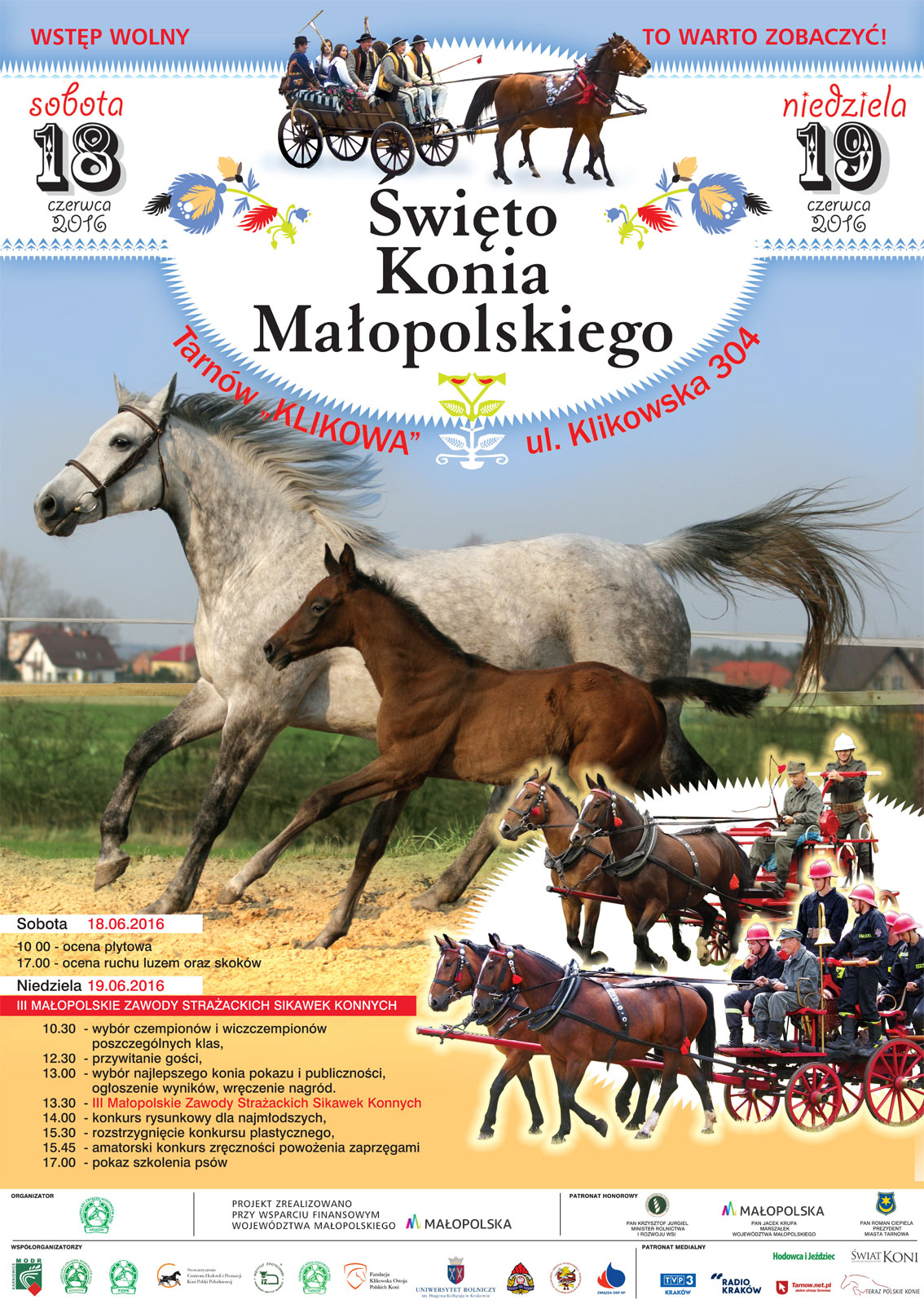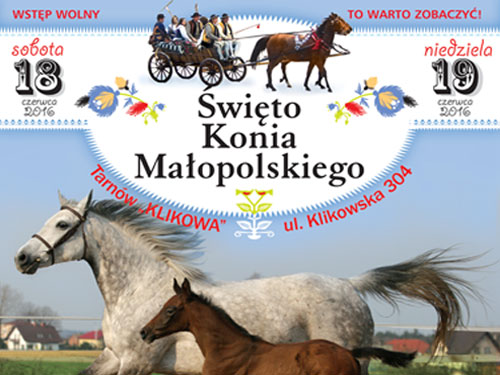 Małopolski Związek Hodowców Koni w Krakowie serdecznie zaprasza do Tarnowa na X Regionalny Czempionat Koni Rasy Małopolskiej pod nazwą ,,Święto Konia Małopolskiego'', który odbędzie się 18-19 czerwca 2016 r. w Klikowej. W ramach tej dorocznej imprezy odbędą się także III Małopolskie Zawody Strażackich Sikawek Konnych oraz pokazy szkolenia psów. Na Klikowskiej Paradzie Konnej nie zabraknie także konkursów dla najmłodszych. Wstęp wolny.