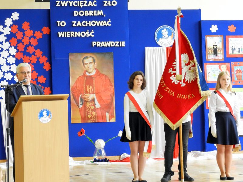 Dzięki obchodom Dnia Patrona uczniowie prześledzili losy ks. Jerzego - od jego dzieciństwa w Okopach, przez lata studiów, pracy duszpasterskiej na Żoliborzu, aż po męczeńską śmierć w nurtach Wisły.