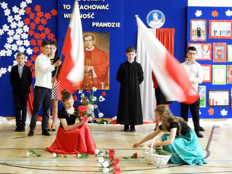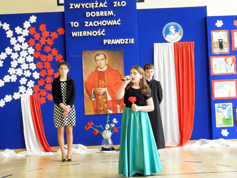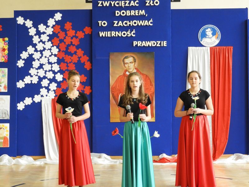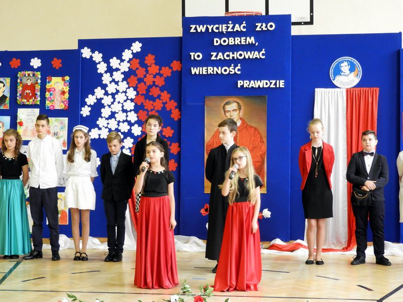 Mottem przewodnim uroczystości były słowa ks. Jerzego „Zwyciężać zło dobrem, to zachować wierność prawdzie”. Akademię przygotowali uczniowie klasy VI pod kierunkiem p. Bernadety Pabian. O oprawę muzyczną zadbał chórek szkolny z p. Waldemarem Szloskiem. Dekoracja, wykonana przez p. Dorotę Grzesik, była doskonałym tłem dla występu. W trakcie akademii wszyscy mogli posłuchać pięknych wierszy Teresy Boguszewskiej poświęconych księdzu Jerzemu oraz wspomnień osób mających z nim bezpośredni kontakt.