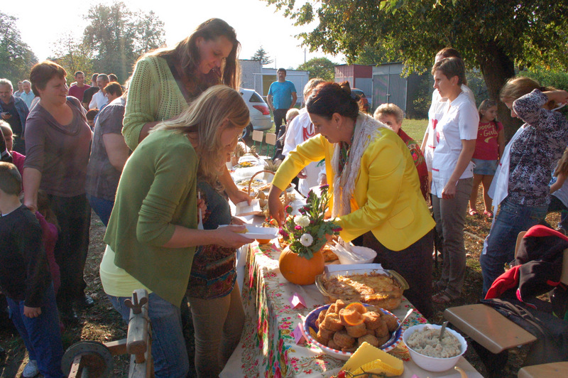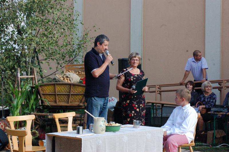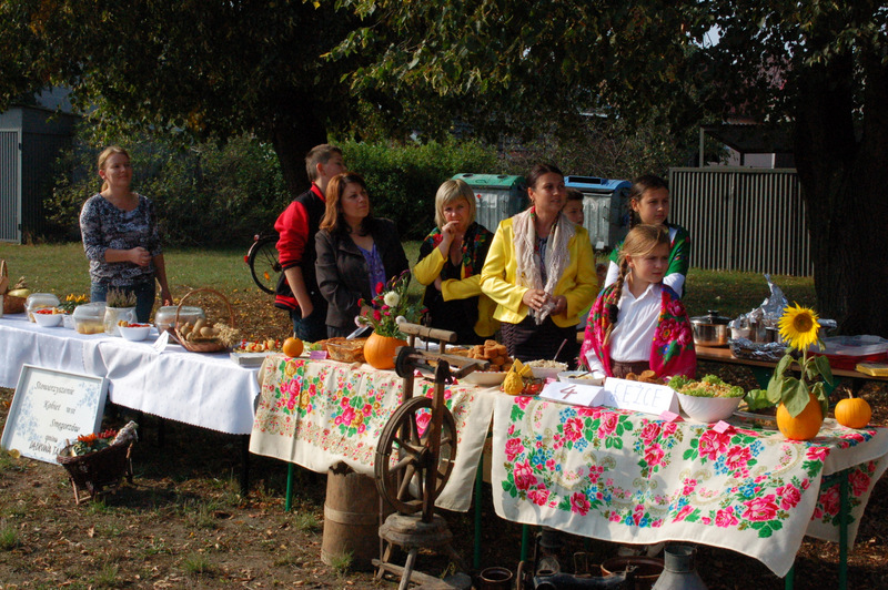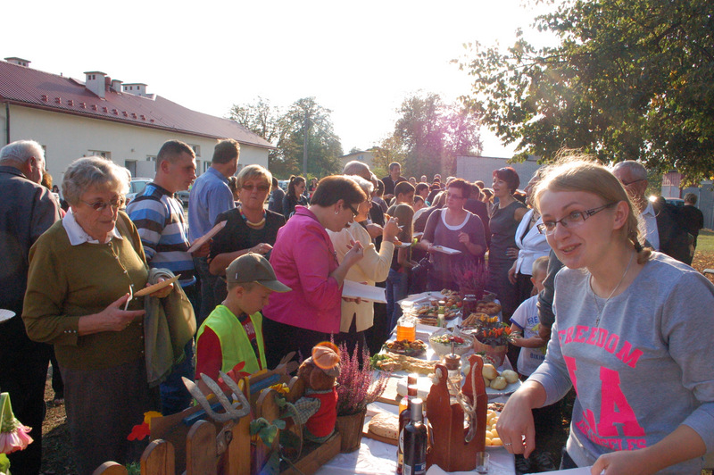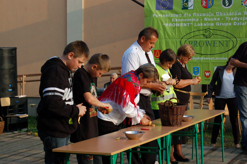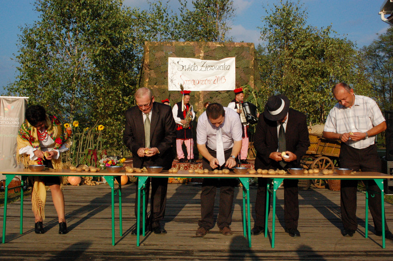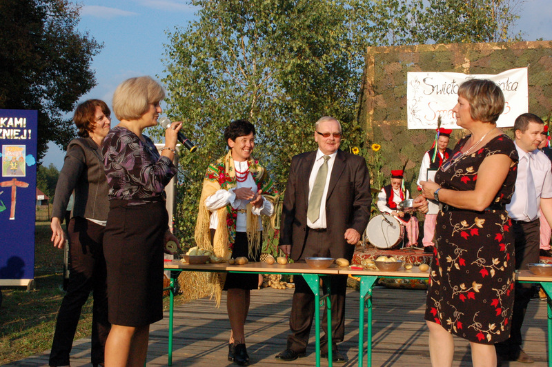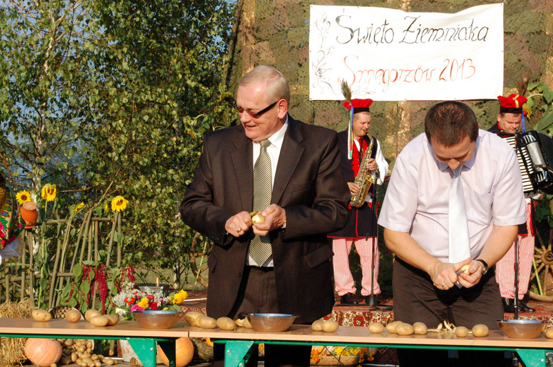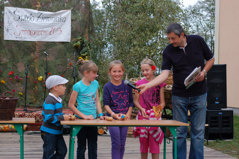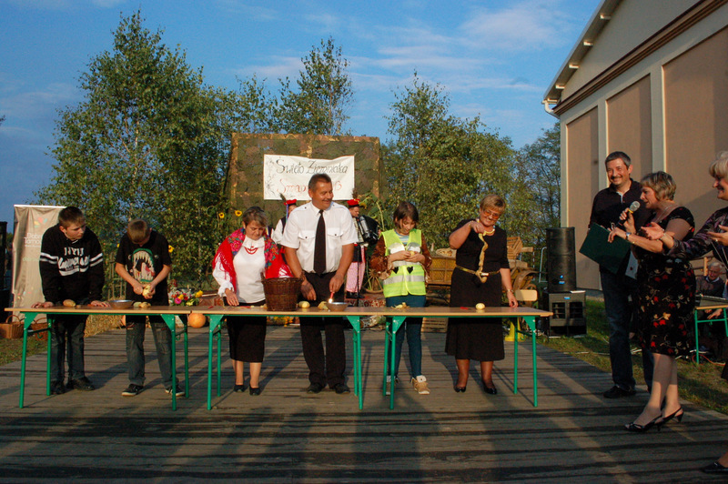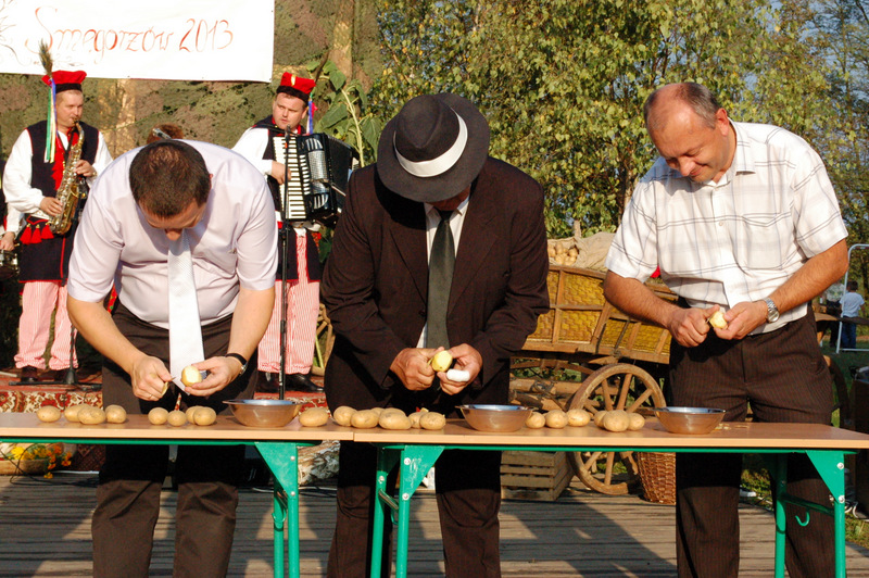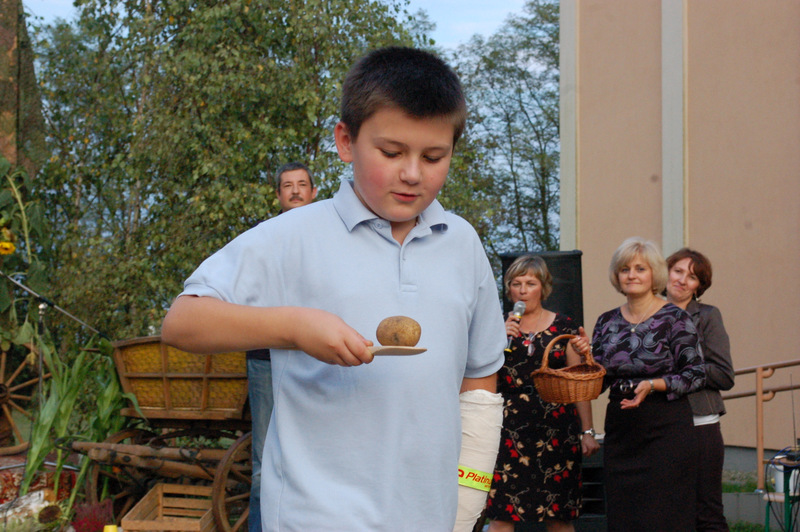 Największą ciekawość wzbudził konkurs obierania ziemniaków na czas, w którym udział wzięli: Burmistrz – p. Stanisław Początek, Starosta – p. Robert Pantera, Ks.Proboszcz – Bogdan Lebryk, Dyrektor Szkoły – p. Bogusław Marek, Sołtys- p.Ryszard Ciombor i Prezes Stowarzyszenia Kobiet Smęgorzowa – p. Bogusława Bator, która  jako jedyna kobieta odniosła zwycięstwo – przy dopingu całej zebranej publiczności. Pozostałe konkursy, a było ich wiele, również cieszyły się dużym zainteresowaniem. W ich organizowaniu pomagały nauczycielki: Alicja Bańbor, Barbara Kuta, Irena Golonka i Bogusława Serwicka.