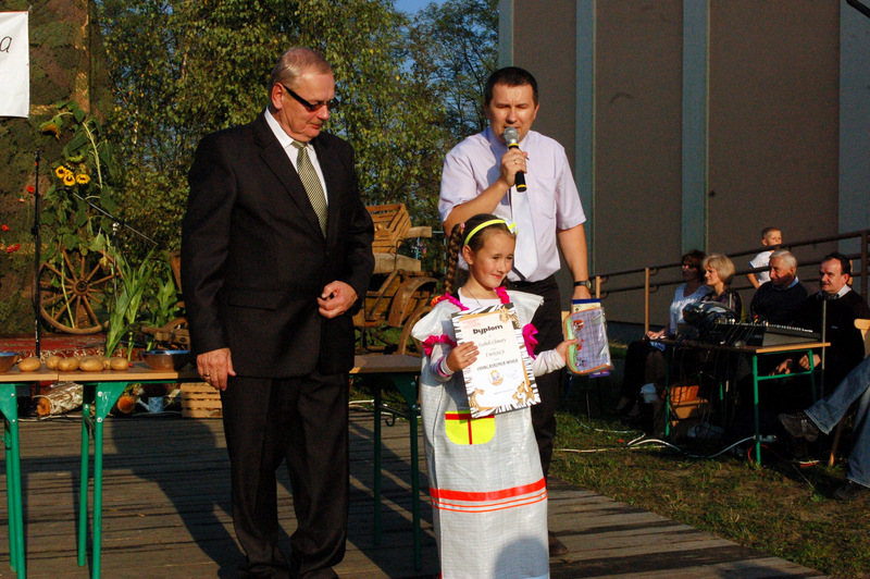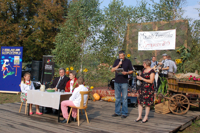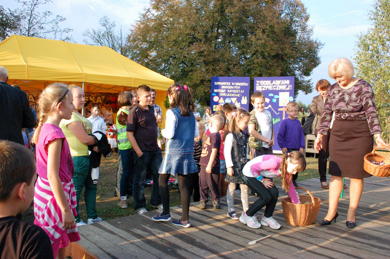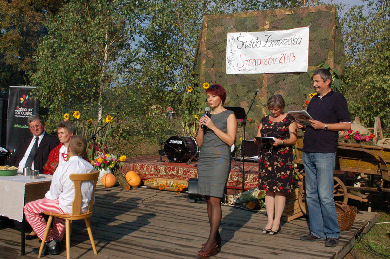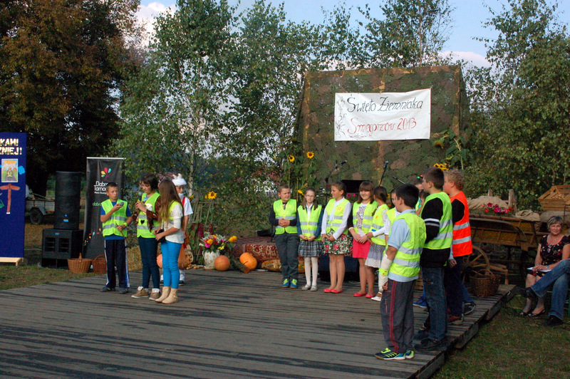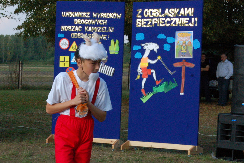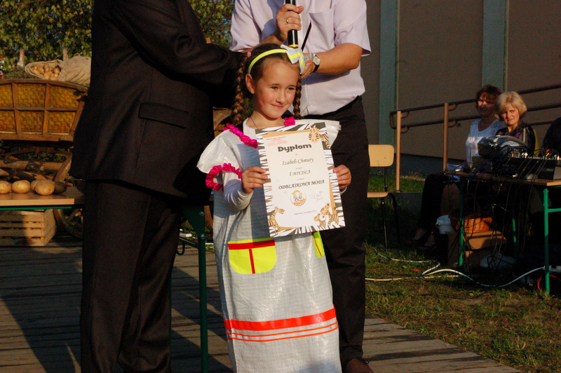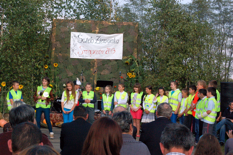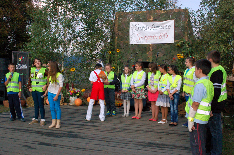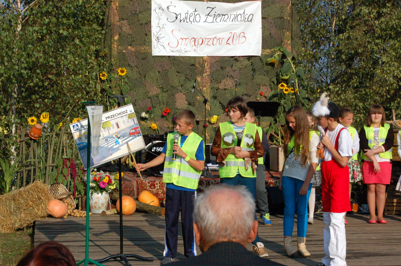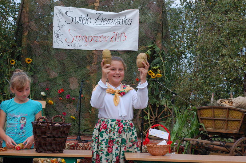 W ramach „Święta Ziemniaka” odbyły się występy kapel ludowych, degustacja potraw, przyrządzonych przez mieszkanki Smęgorzowa, wystawy rękodzieła artystycznego (wystawa haftu krzyżykowego i decoupage), prezentacja dorobku gminy Dąbrowa Tarnowska, wystawa prac plastycznych uczniów oraz zabawy, konkursy i pieczenie ziemniaków w ognisku. Występy uczniów zapowiedział Dyrektor Szkoły – p. Bogusław Marek. Szkoła czynnie przyłączyła się do imprezy, poprzez akcję uświadamiającą o konieczności używania kamizelek oraz elementów odblaskowych. Uczestnictwo uczniów w  w/w  święcie związane jest z udziałem  szkoły w  małopolskim konkursie „ODBLASKOWA SZKOŁA”. Uczniowie przedstawili inscenizację pt. ”Koziołek Matołek w Smęgorzowie”, w której znany bohater bajek, podczas podróży do Pacanowa, wstępuje do Smęgorzowa. Pomaga napotkanym dzieciom przy wykopkach ziemniaków, a te w zamian pouczają go, jak ma bezpiecznie poruszać się po drodze jako pieszy, czy rowerzysta. Aby zwiększyć swoje bezpieczeństwo na drodze podczas powrotu z pola jesienią, kiedy wcześnie zapoda zmierzch, uczniowie zachęcali nie tylko Koziołka, ale zebranych do tego, by byli widoczni na drodze, poprzez korzystanie z kamizelek lub innych elementów odblaskowych. Po przedstawieniu odbył się konkurs na najbardziej „odblaskowy rower”,  a następnie pokaz „mody odblaskowej”. Modelki prezentowały kostiumy przygotowane z worków do ziemniaków, ozdobione pomysłowo elementami odblaskowymi. Występy naszych dzieci  nagrodzone zostały gromkimi brawami licznie zebranej publiczności oraz dyplomami i odblaskowymi gadżetami. Występ przygotowała nauczycielka – p. Czesława Obara.