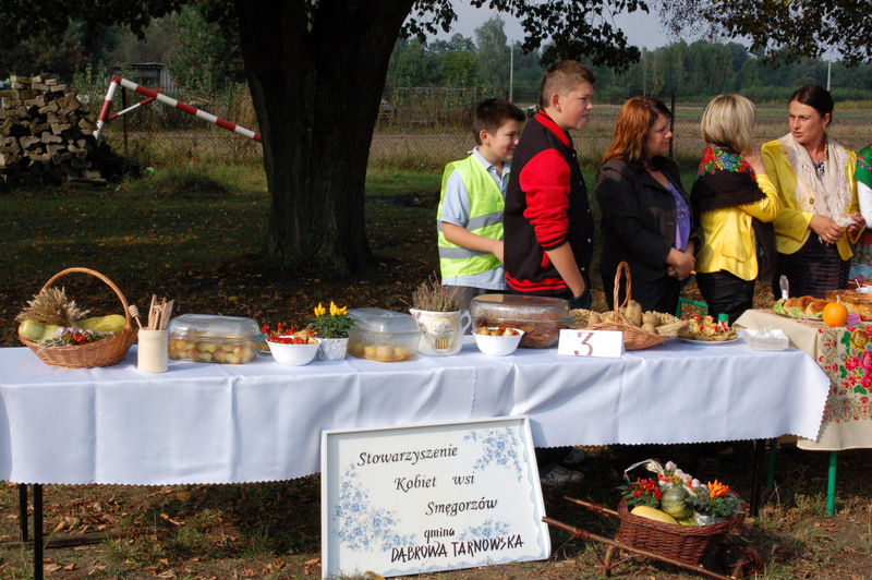 15 września br. na placu szkolnym odbyła się impreza środowiskowa  pod nazwą „Święto Ziemniaka”, w której uczestniczyli przedstawiciele władz powiatowych i gminnych oraz mieszkańcy Smęgorzowa i okolicznych miejscowości. Wśród honorowych gości byli: Burmistrz Dąbrowy Tarnowskiej – p. Stanisław Początek, Przewodniczący Rady Miejskiej – p. Władysław Knutelski, wraz z Radnymi Rady Miejskiej – p. Józefą Borowską-Marciniak, Józefą Taraską i  Jackiem Ryczkiem,  Wicestarosta Powiatu Dąbrowskiego – p. Robert Pantera, Proboszcz Parafii – Ks. Bogdan Lebryk,  Skarbnik Gminy – p. Małgorzata Bąba, Zastępca Dyrektora MOPS – p. Halina Sarat , Dyrektor Miejskiej Biblioteki w Dąbrowie Tarnowskiej – p. Jadwiga  Kusior, Kierownik Powiatowego Zespołu Doradztwa Rolniczego p. Anna Morawiec. Organizatorami święta byli: Stowarzyszenie Kobiet Smęgorzowa, Sołectwo, Ochotnicza Straż Pożarna oraz Publiczna  Szkoła Podstawowa w Smęgorzowie. Do organizacji spotkania włączył się aktywnie Dąbrowski Dom Kultury z Dyrektorem – p. Pawłem Chojnowskim na czele, który udostępnił nagłośnienie oraz występ kapeli podwórkowej.Celem imprezy było przypomnienie starych zwyczajów związanych z wykopkami oraz przypomnienie ciekawych przepisów na potrawy przygotowywane na bazie ziemniaków. Z tego zadania bardzo dobrze wywiązało się sołectwo Smęgorzów. Zarząd Lokalnej Grupy Działania PROWENT Mielcu na organizacje tej imprezy przyznał 2.500 zł.