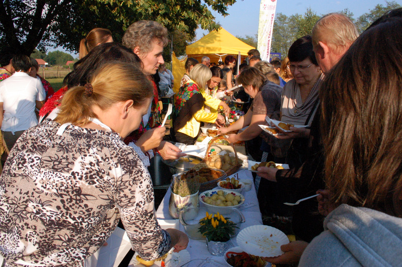 Impreza zgromadziła ponad 300 osób, które degustowały niezwykle urozmaicone i smaczne potrawy z ziemniaka, przygotowane przez  grupy: Łężce, Kmiecie, Koniec Wsi oraz  Stowarzyszenie Kobiet Smęgorzowa. Podczas degustacji można było oddawać głosy na najlepsze stoisko. Widać było pomysłowość i ogromne zaangażowanie. Na pewno wybór był trudny. Jednak tytuł najlepszego stoiska zdobyła grupa KONIEC WSI, która otrzymała dyplom uznania. W skład zwycięskiej grupy weszły panie: Maria Kogut, Elżbieta, Maria, Karolina, Katarzyna i Joanna Rygielskie. Burmistrz Dąbrowy Tarnowskiej – p. Stanisław Początek oraz Przewodniczący Rady Miejskiej – p. Władysław Knutelski, wręczając dyplomy za uczestnictwo w przygotowaniu stoisk, pogratulowali Paniom oraz wszystkim mieszkańcom Smęgorzowa, którzy wzięli udział w organizacji imprezy -  pomysłowości i  inwencji. Wszyscy jednogłośnie orzekli, że niedzielne  „Święto ziemniaka” było bardzo udane i wyrazili nadzieję, że na stałe wpisze się do kalendarza imprez kulturalnych gminy,  organizowanych  w Smęgorzowie.