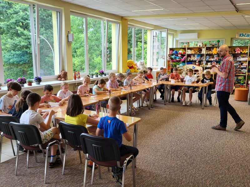 W czwartek 6 lipca br. odbyły się pierwsze zajęcia w ramach realizacji przez Miejską Bibliotekę Publiczną im. Marii Kozaczkowej w Dąbrowie Tarnowskiej zadania „Symbole na start – Niepodległość na mecie!”. Pierwszym punktem składowym tego zadania były bezpłatne warsztaty historyczne pod hasłem „Symbole w historii na start” przeprowadzone przez Kamila Sobika – pisarza, pasjonata historii Polski, autora kanału historycznego na YouTube i prowadzącego spotkania z historią dla młodych czytelników.