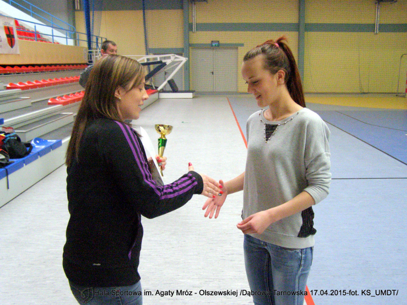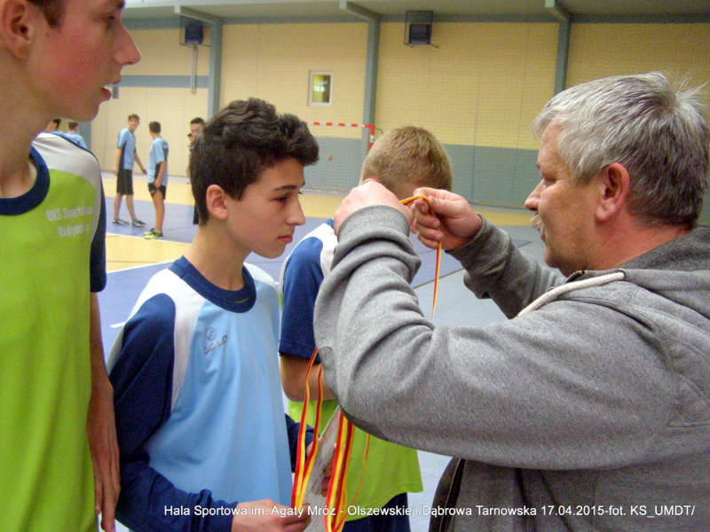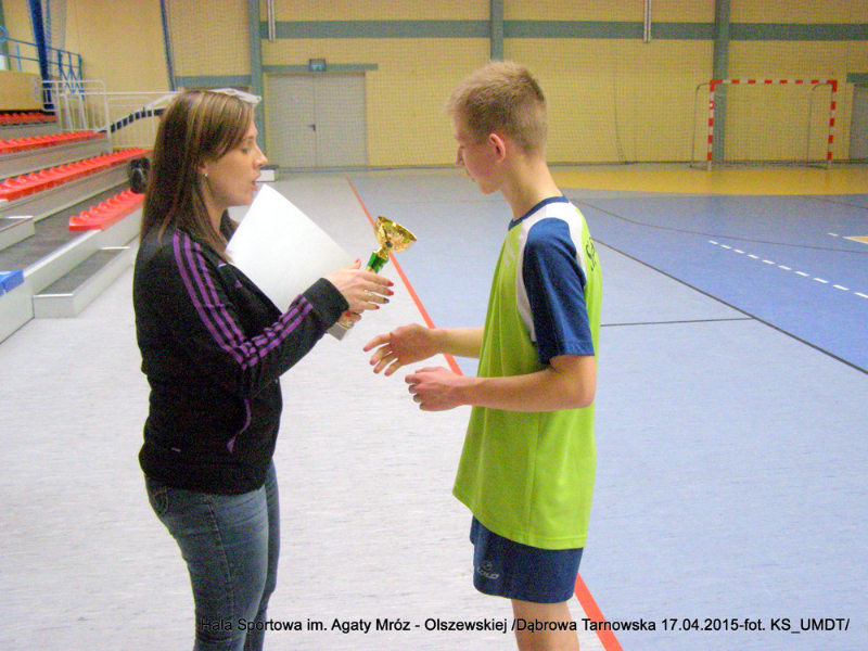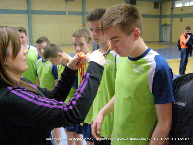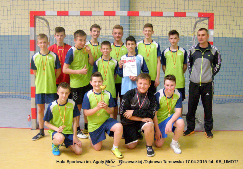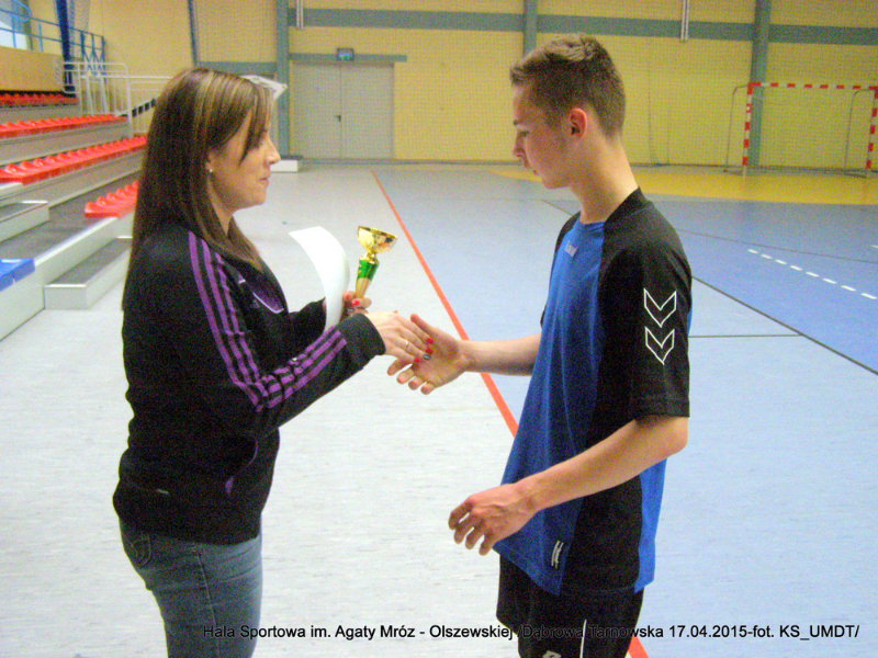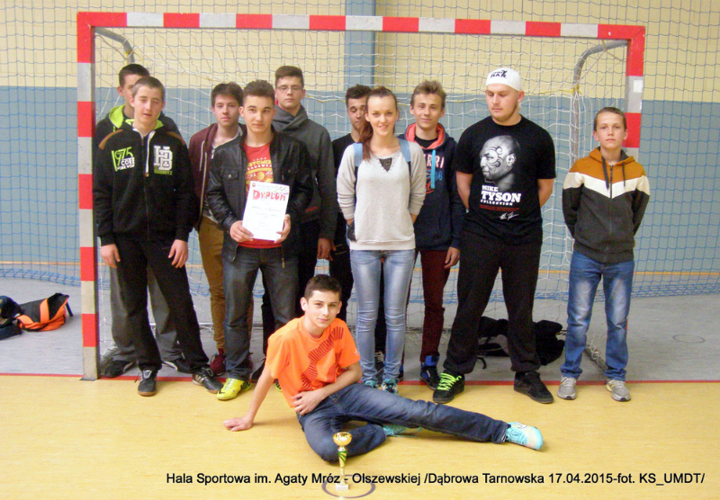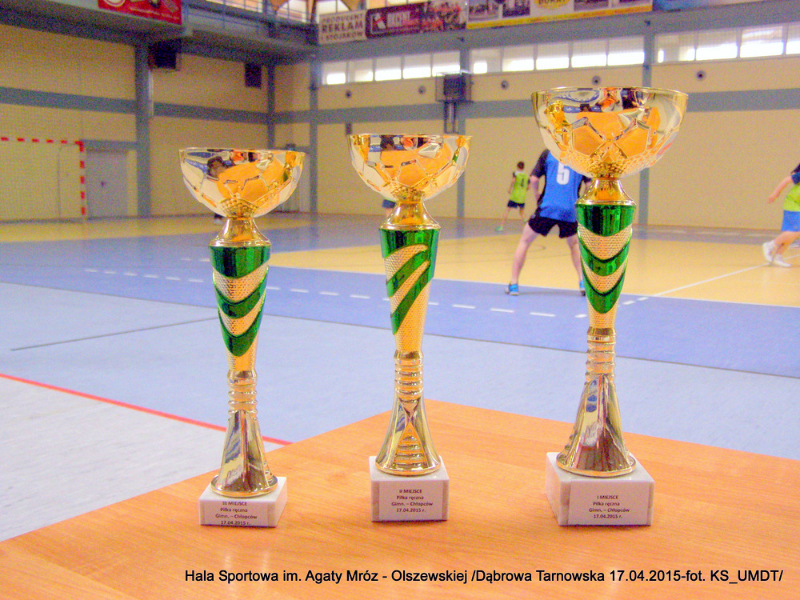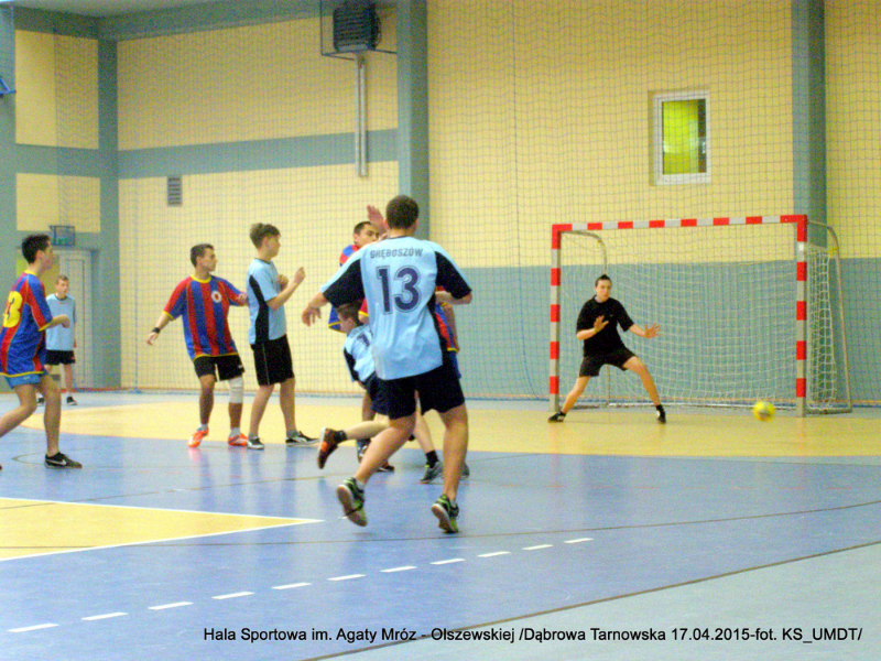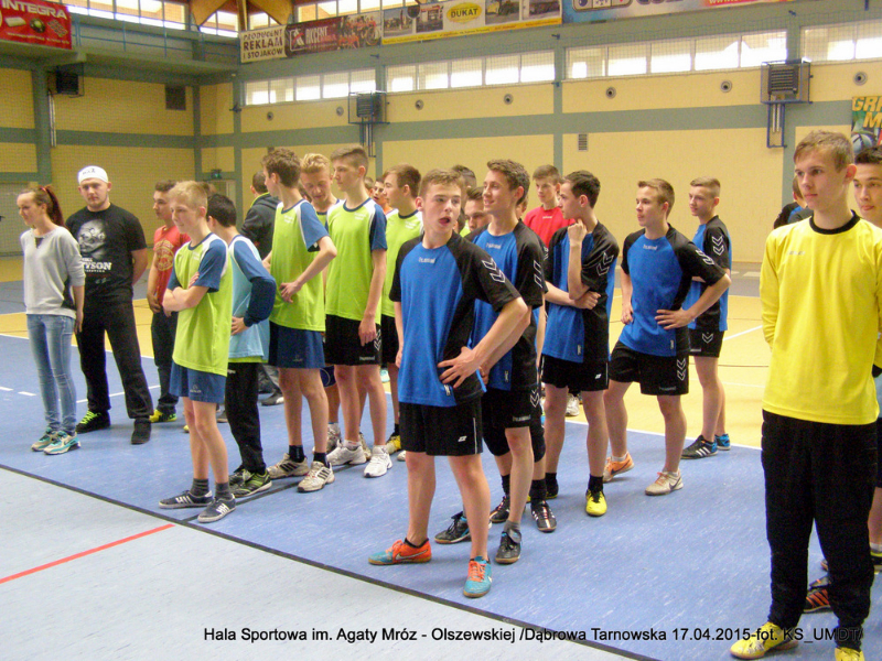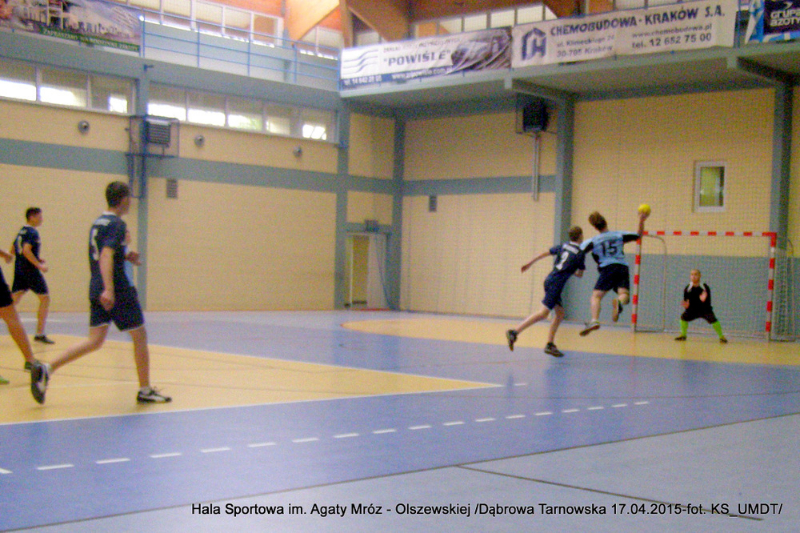 W piątek 17 kwietnia 2015 roku do rywalizacji o tytuł Mistrza Powiatu w piłce ręcznej przystąpili chłopcy z naszych gimnazjów. Turniej przeprowadzony został na terenie Hali Sportowej im Agaty Mróz Olszewskiej. Mecze w grupach toczyły się w systemie każdy z każdym. Nad prawidłowym przebiegiem gier czuwał sędzia Jacek Moskalczyk. Siedem zespołów z terenu Powiatu Dąbrowskiego podzielono na dwie grupy: