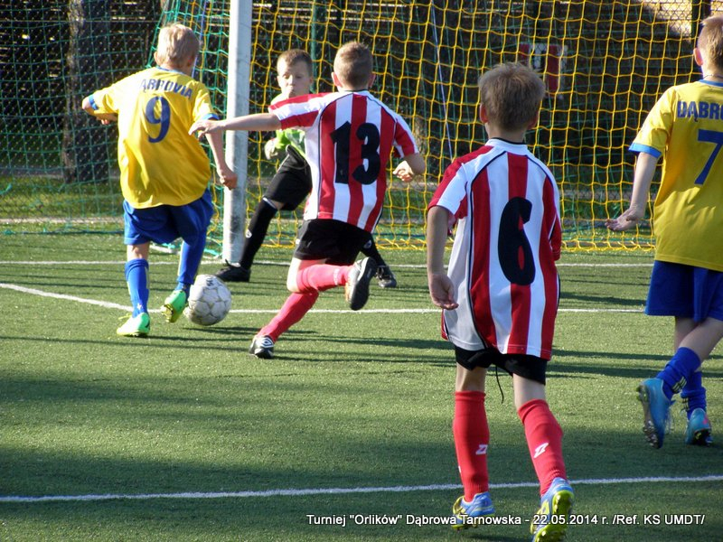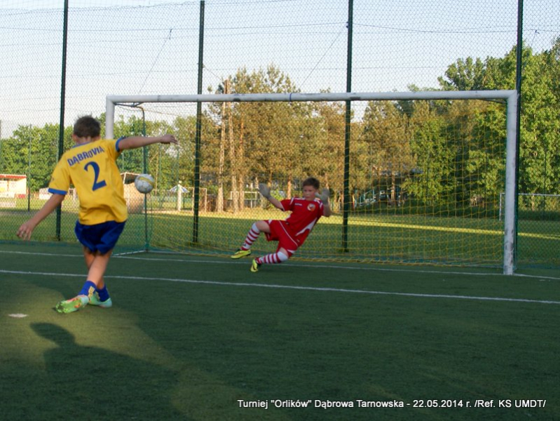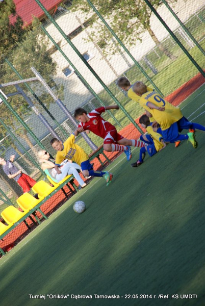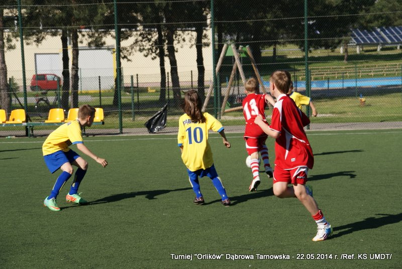 Teren Orlika 2012 Grupa A: Dąbrovia Dąbrowa Tarnowska Tarnovia I Tarnów Unia Niedomice Grupa B: Tarnovia II Tarnów Westovia Tarnów LKS WietrzychowiceWyniki: Dąbrovia Dąbrowa Tarnowska - Unia Niedomice 8-0 Tarnovia I Tarnów - Unia Niedomice 5-0 Dąbrovia Dąbrowa Tarnowska - Tarnovia I Tarnów 2-1 Tarnovia II Tarnów - LKS Wietrzychowice 1-2 Westovia Tarnów - LKS Wietrzychowice 0-3 Tarnovia II Tarnów - Westovia Tarnów 4-0