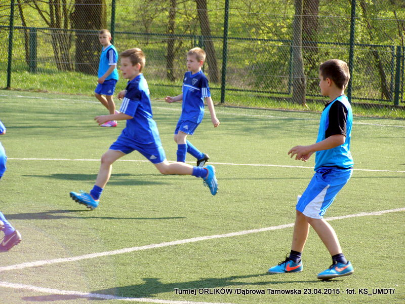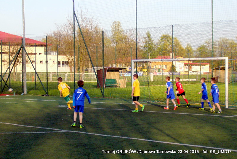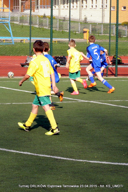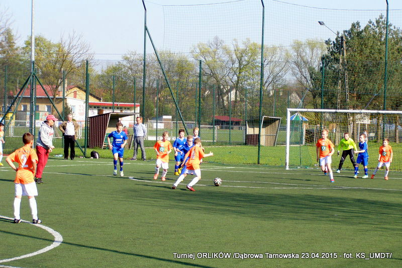 W czwartkowe popołudnie 23.04.2015 roku, przy pięknej, słonecznej pogodzie na dąbrowskich obiektach sportowych „Orlik 2012” przeprowadzony został Turniej Orlików w ramach dąbrowskich obchodów 3-cio majowego Święta Konstytucji.  W turnieju wzięły udział dwie lokalne drużyny Orlików: Football Academy Dąbrowa Tarnowska 2004 i Football Academy Dąbrowa Tarnowska 2005 oraz zaproszeni goście: Unia Tarnów, Radłovia Radłów i Wolania Wola Rzędzińska. Mecze rozegrano w systemie każdy z każdym, w czasie 1 x 15 min. Sędziowali opiekunowie przybyłych ekip oraz Animator sportowy na obiektach „Orlik 2012” Pan Jan Pisarski.