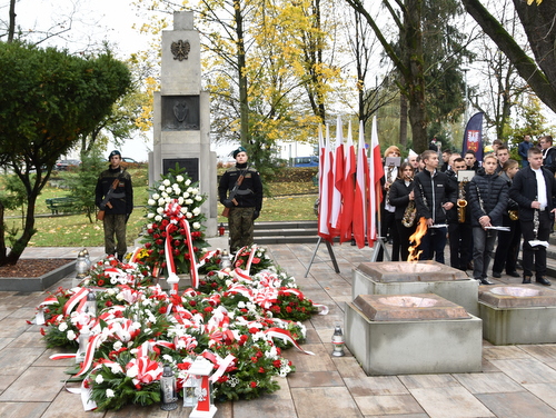 Pod pomnikiem w Parku Miejskim noszącym nazwę 100-lecia Odzyskania Niepodległości w hołdzie Polakom, którzy "przelewali krew za ojczyznę i wolność", przedstawiciele Samorządu Gminnego i Powiatowego w imieniu całej społeczności powiśla dąbrowskiego złożyli wieniec, a następnie reprezentanci poszczególnych delegacji złożyli wiązanki, kwiaty i zapalone znicze.