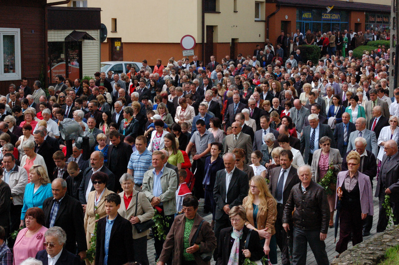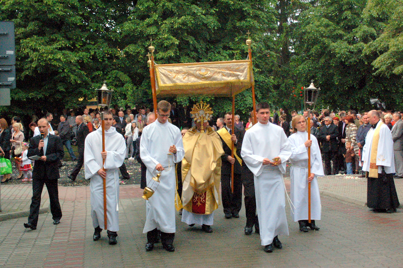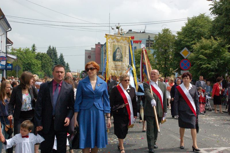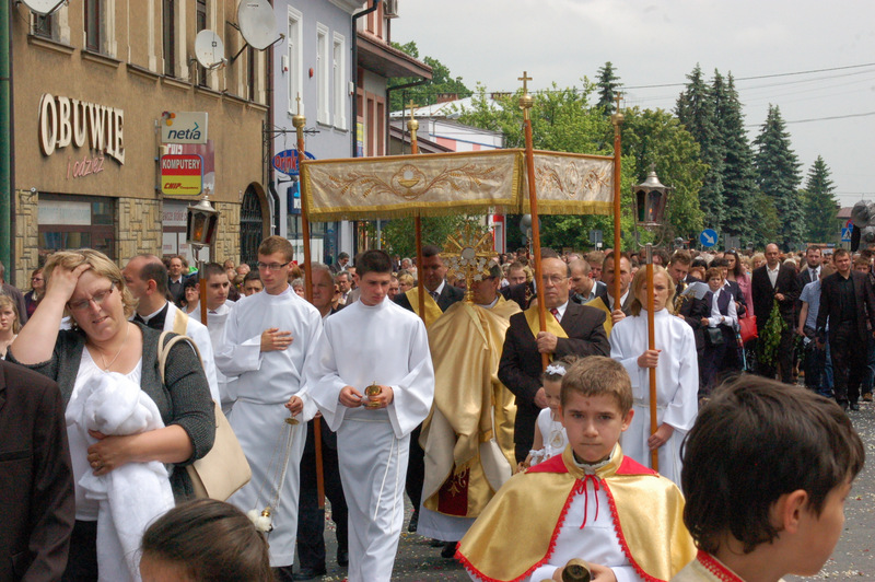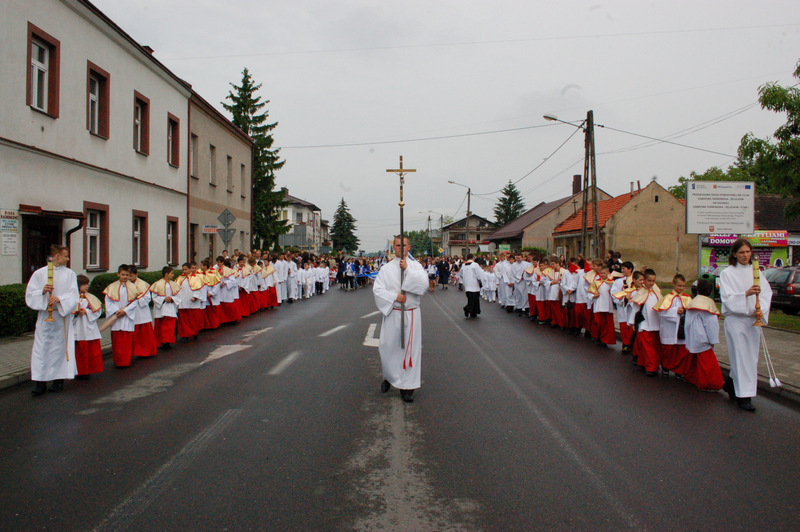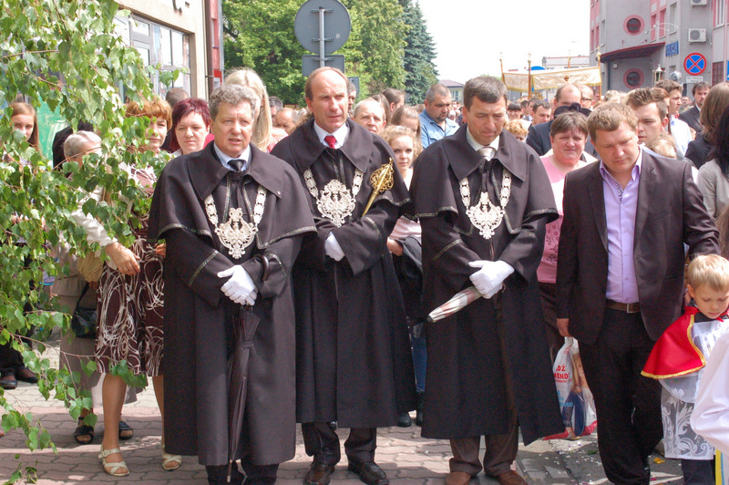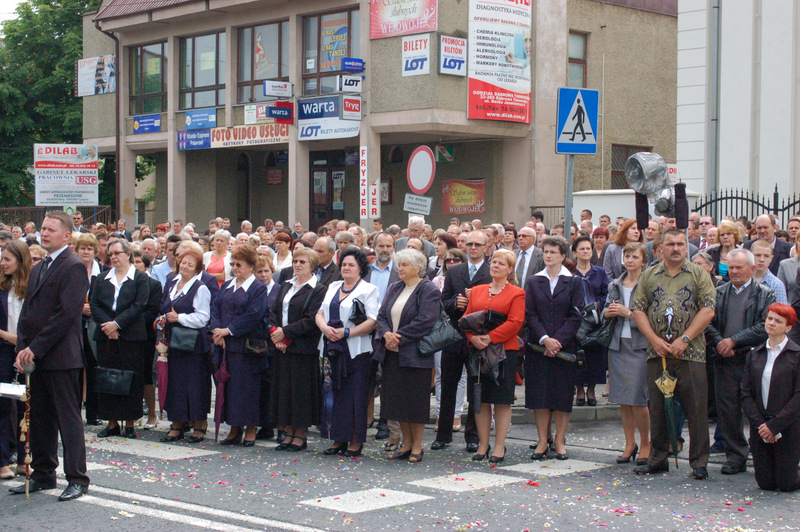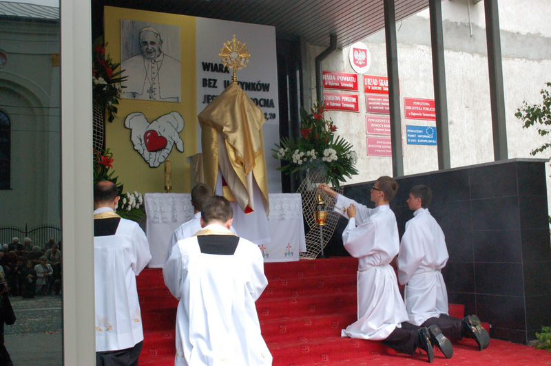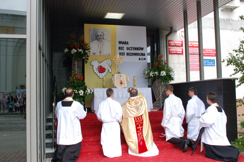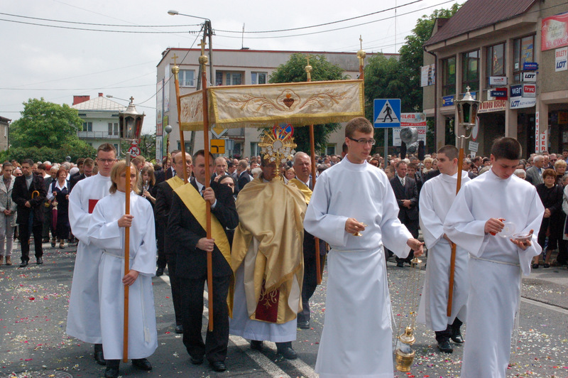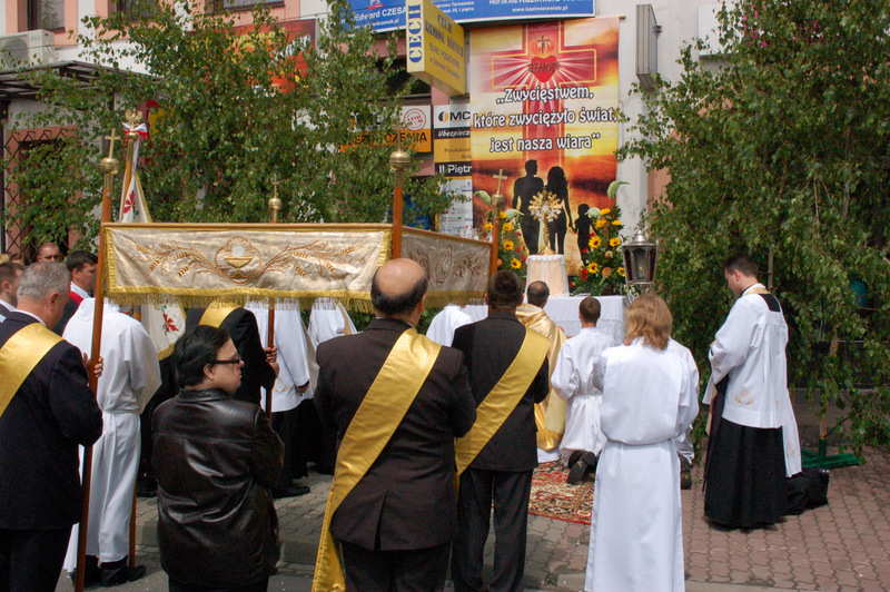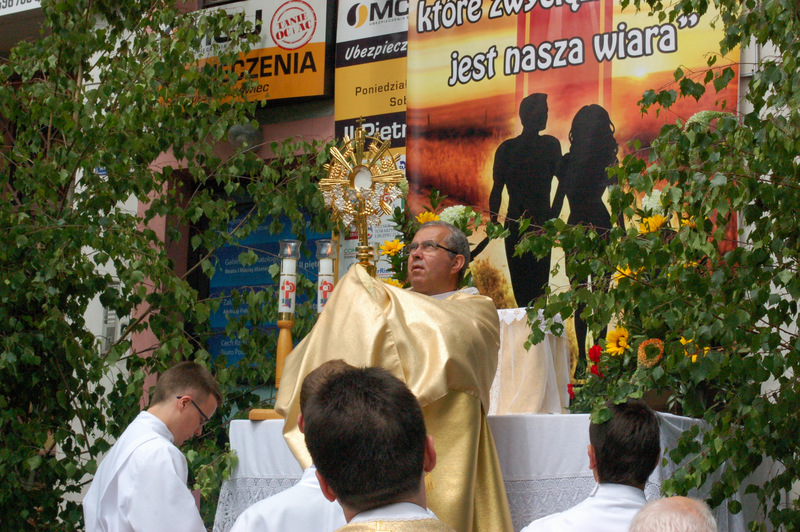 Pierwszy ołtarz został zbudowany przed głównym wejściem do budynku Urzędu Miejskiego. Wykonali go samorządowcy gminni. Drugi ołtarz przy ul. Jagiellońskiej wykonał Chór Parafialny, a trzeci Starostwo Powiatowe i Urząd Skarbowy przed swoją siedzibą. Czwarty ołtarz polowy zbudowali przedstawiciele Cechu Rzemiosł Różnych przed swoją siedzibą w Rynku. Przy każdym z ołtarzy, była czytana Ewangelia po czym następowało błogosławieństwo wiernych Najświętszym Sakramentem. Na zakończenie procesji Ks. Proboszcz Stanisław Cyran podziękował wykonawcom poszczególnych ołtarzy za wkład pracy i inwencję, a uczestnikom za pobożny udział.